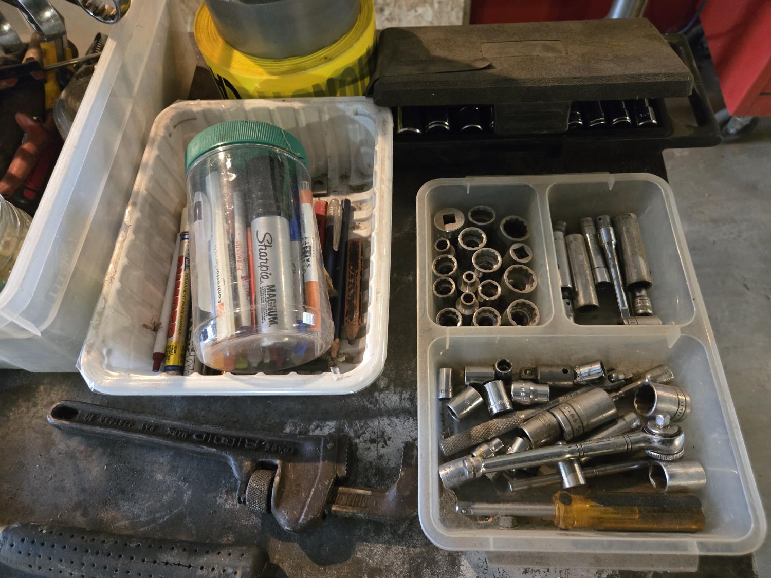 caulking guns, Timing light, wrenches, tape, miscellaneous items