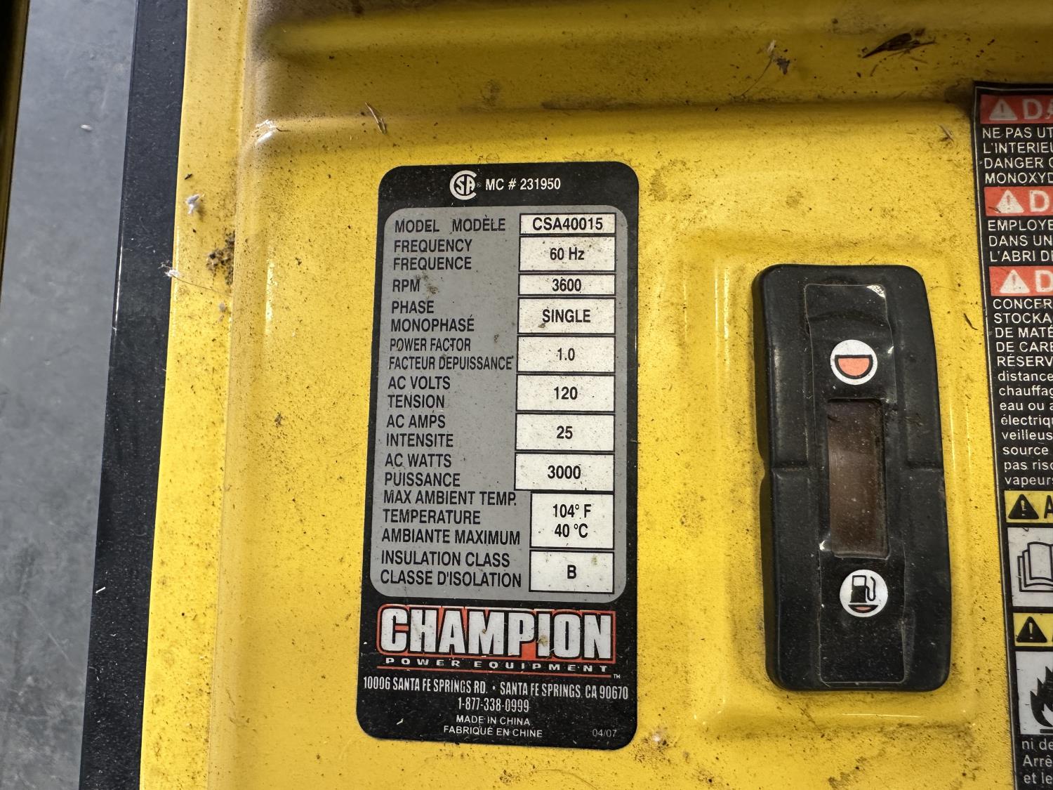 1249 Champion 3000W Generator