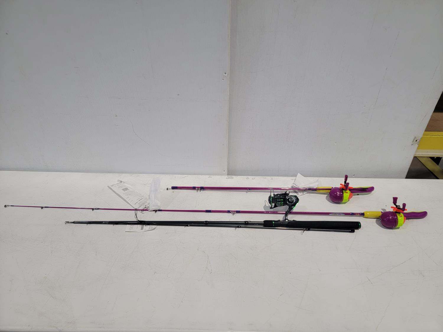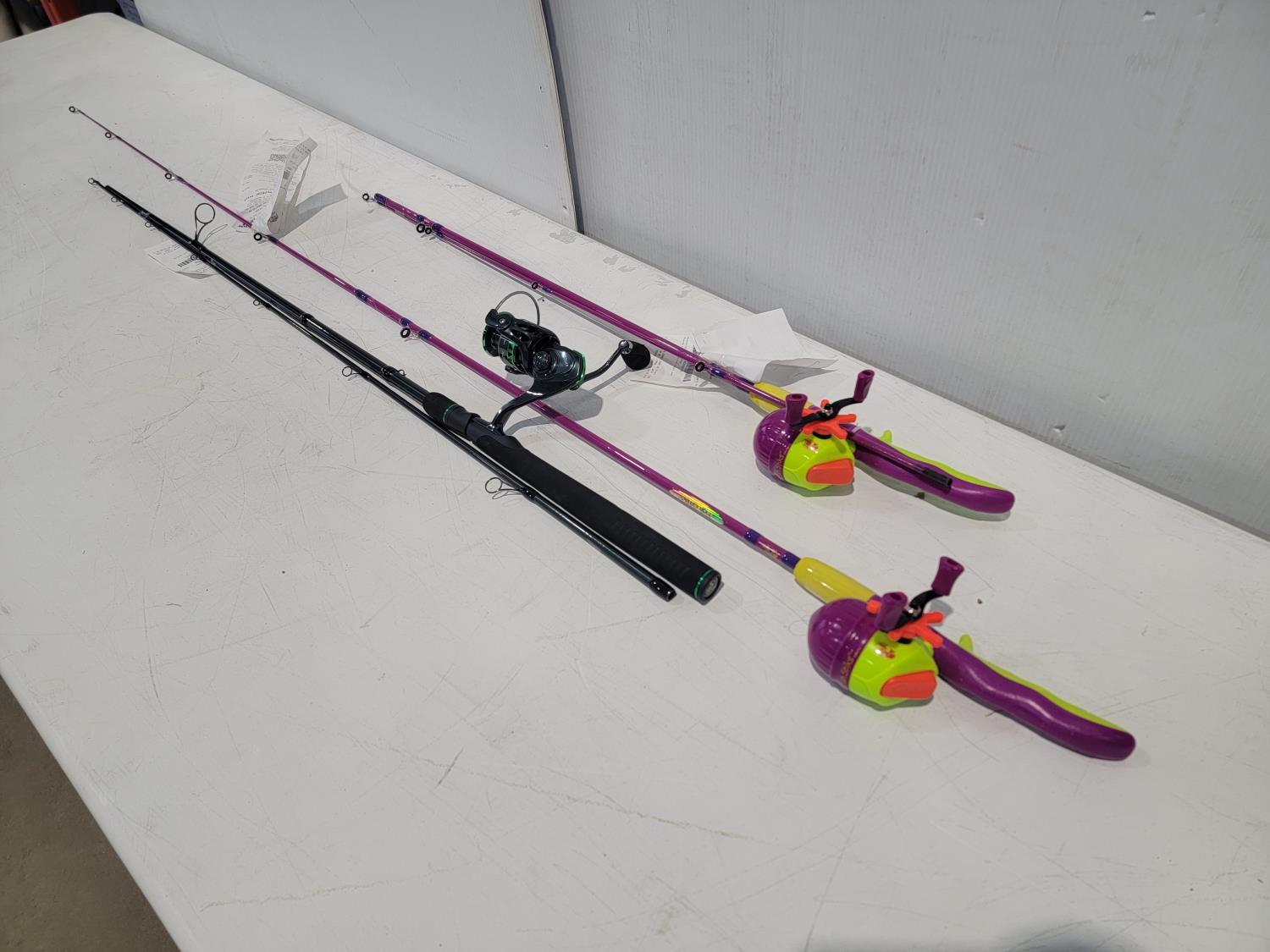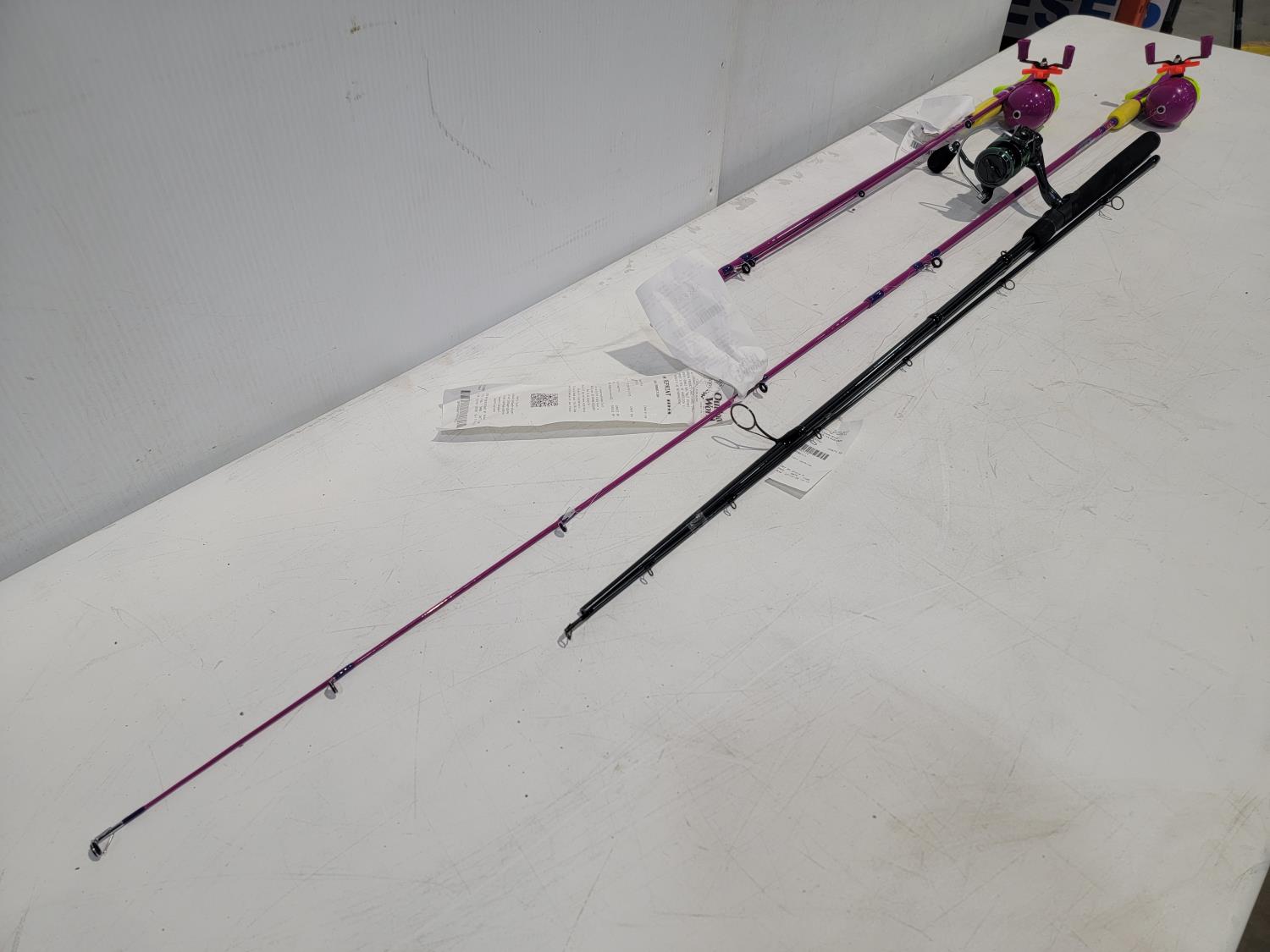 1348 Bass Pro Shops Fishing Rod and Reel Combo and (2) Fish Stiks Spincast Combos