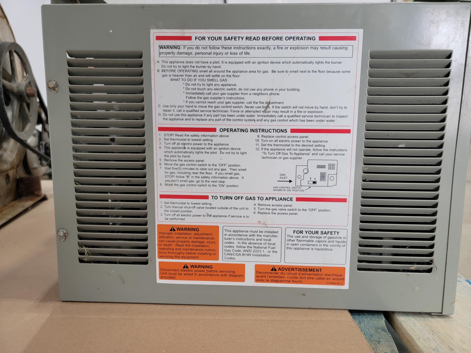 1187 Modine Hot Dawg Overhead Gas Heater and Electric Blower