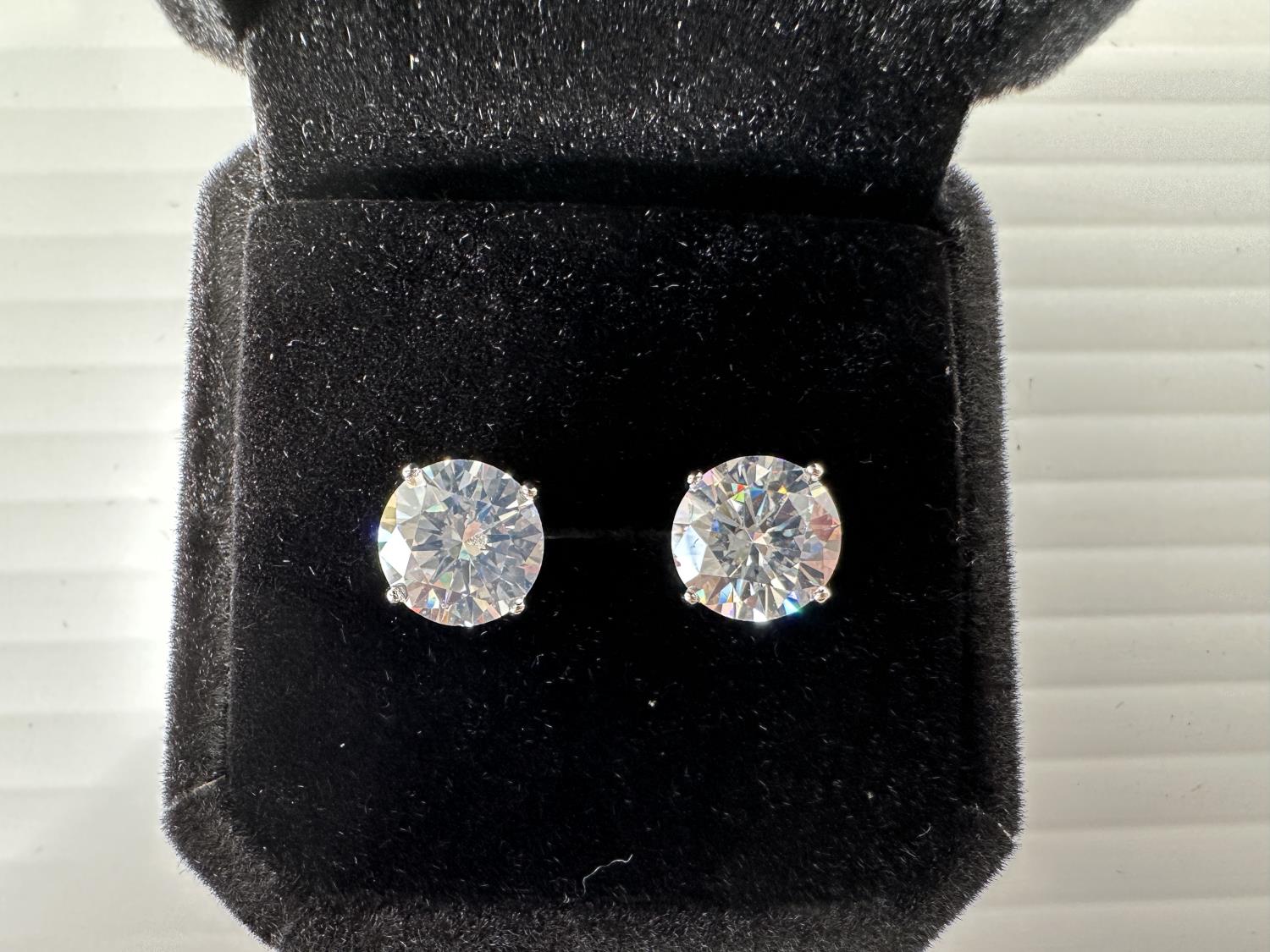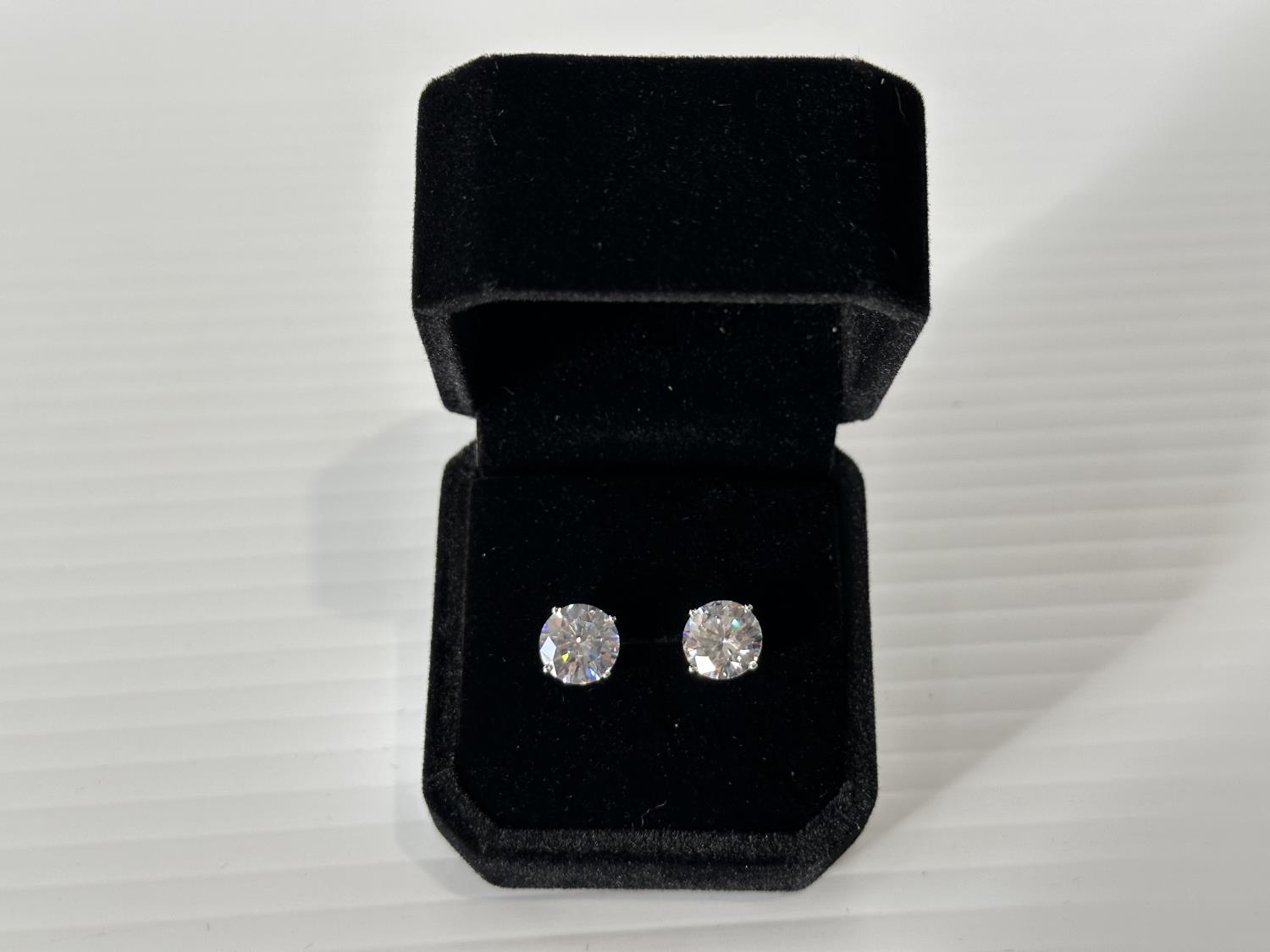 1601 Smartlife Platinum Plated 3.0 Ct Each Stud Earrings (Unused)