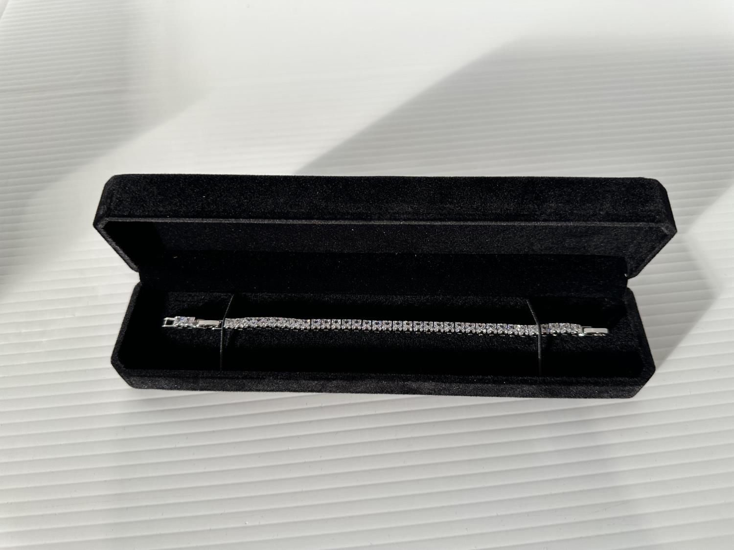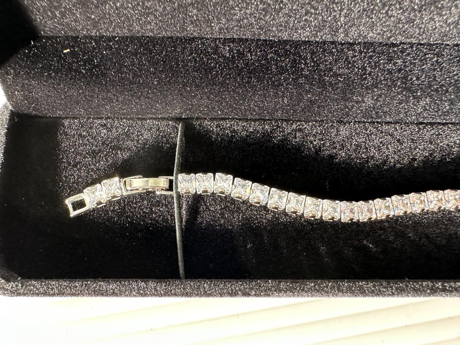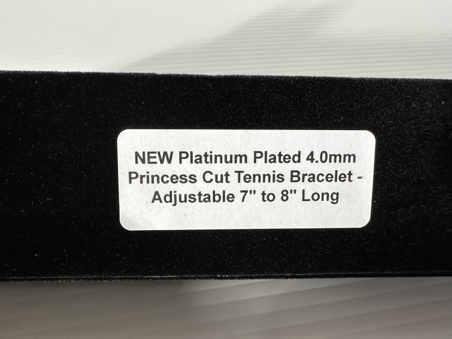 1611 Smartlife Platinum Plated 4.0 mm Princess Cut Tennis Bracelet (Unused)