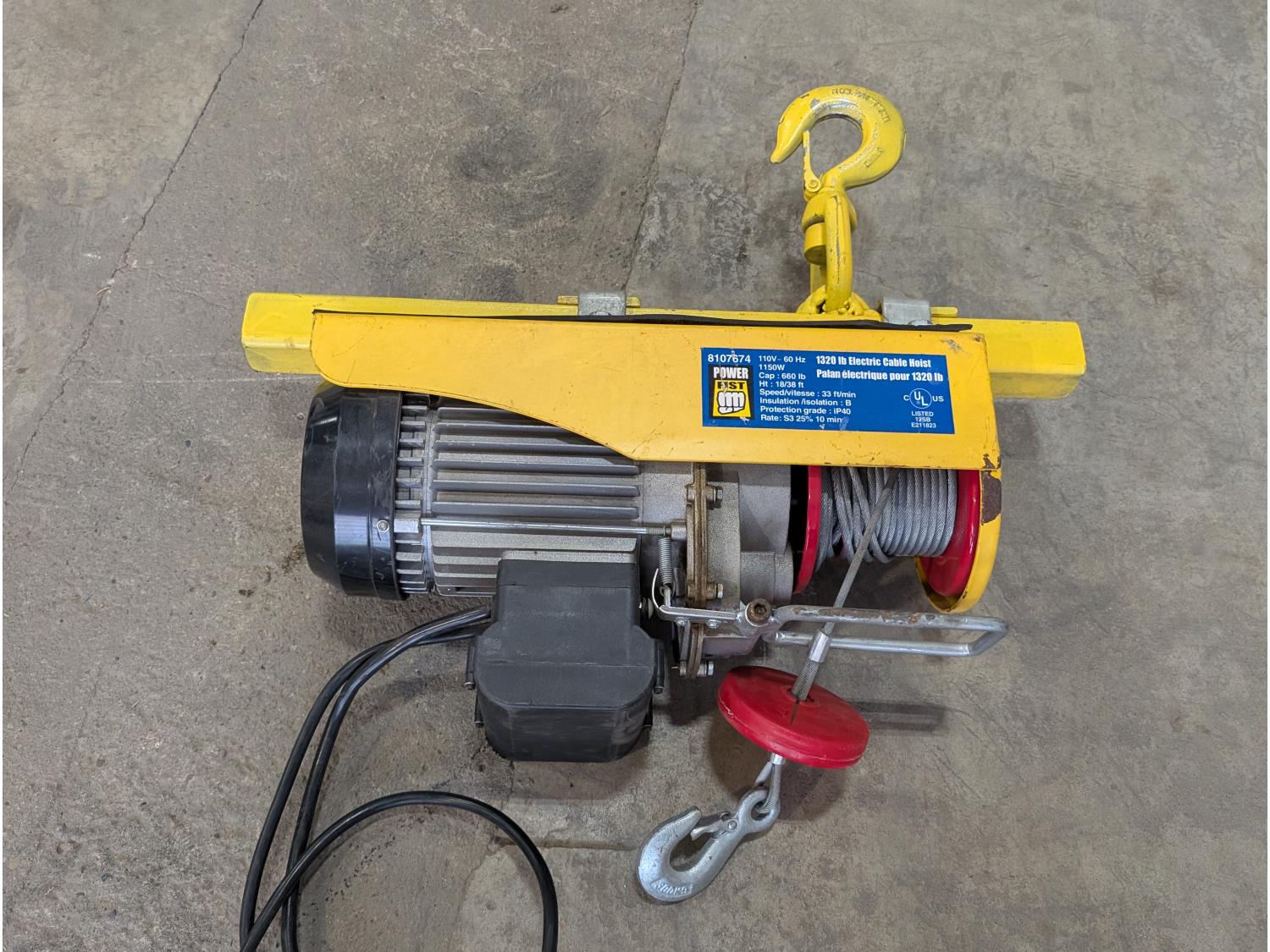 1054 Powerfist 1320 lb Electric Cable Hoist