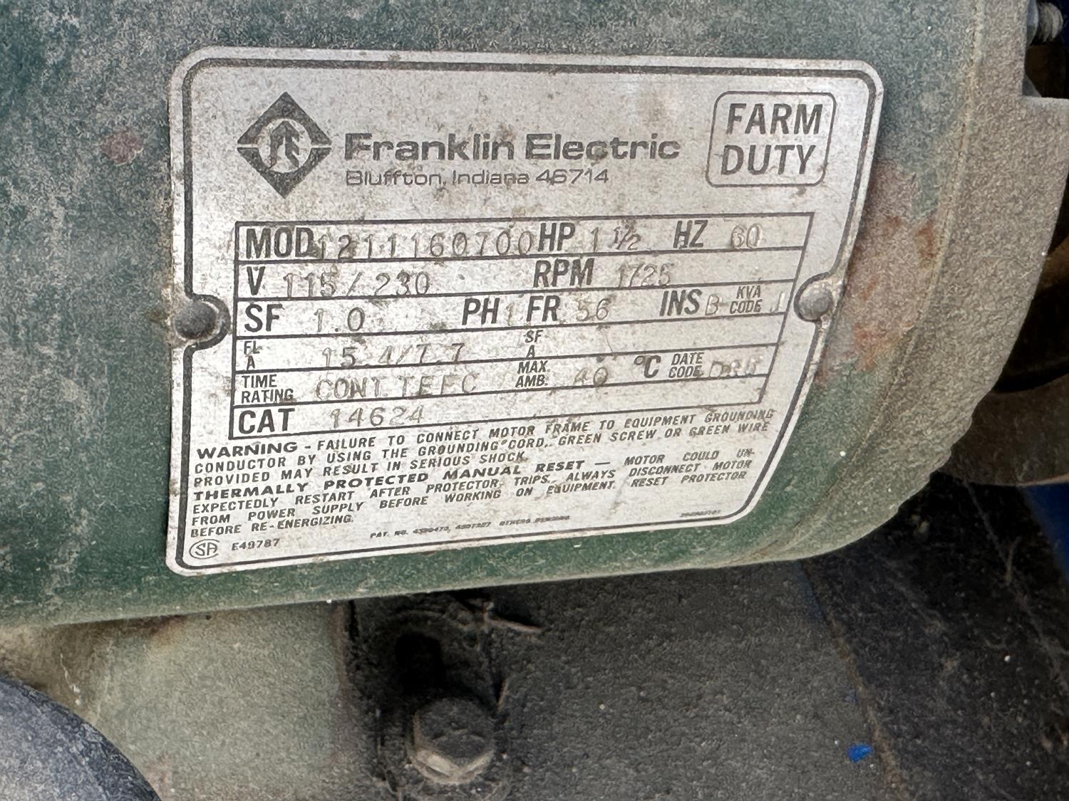 Franklin Electric 1.5 HP 115/230V single phase motor, Hawk 4 HP 3.4 GPM pump