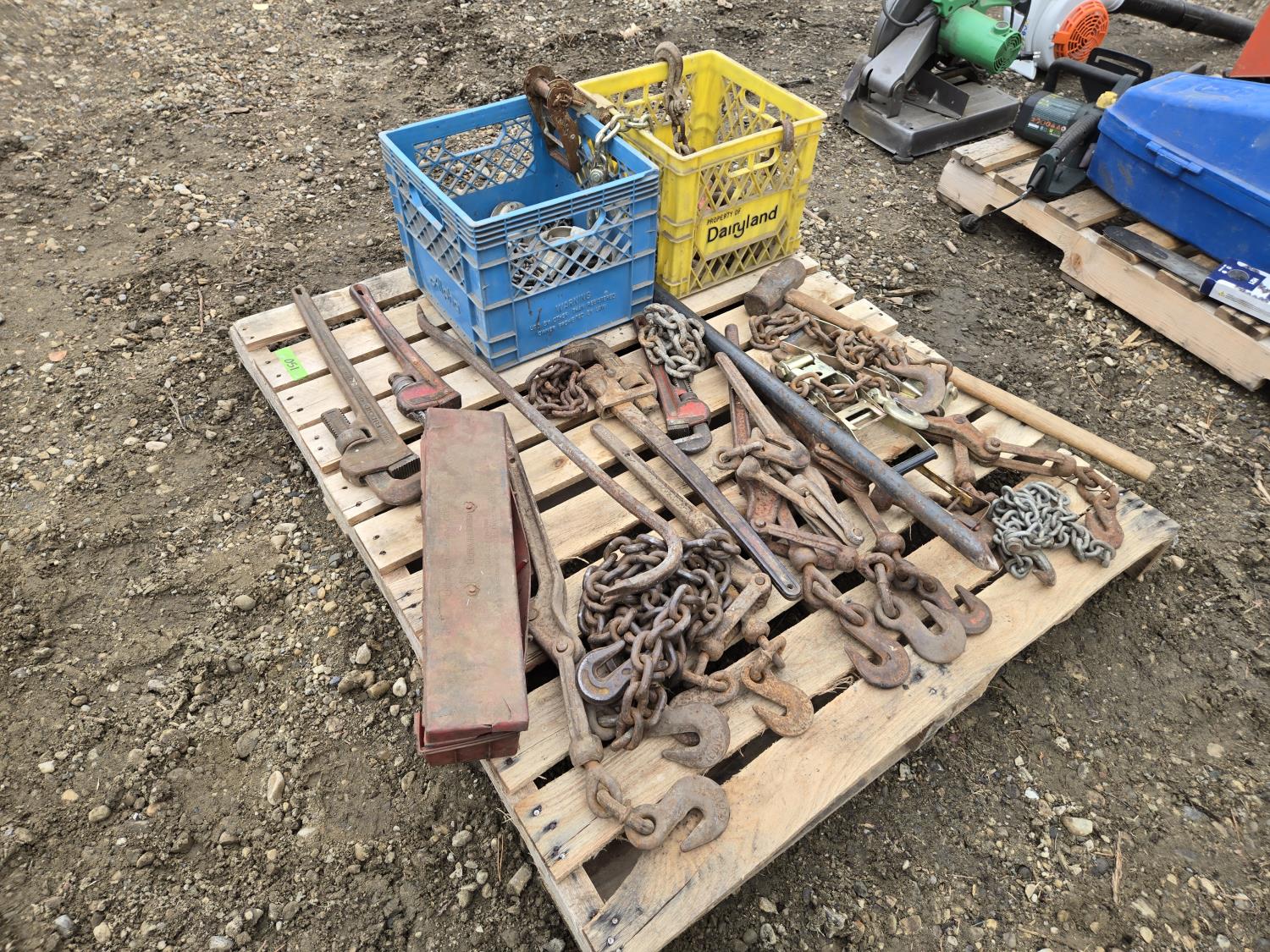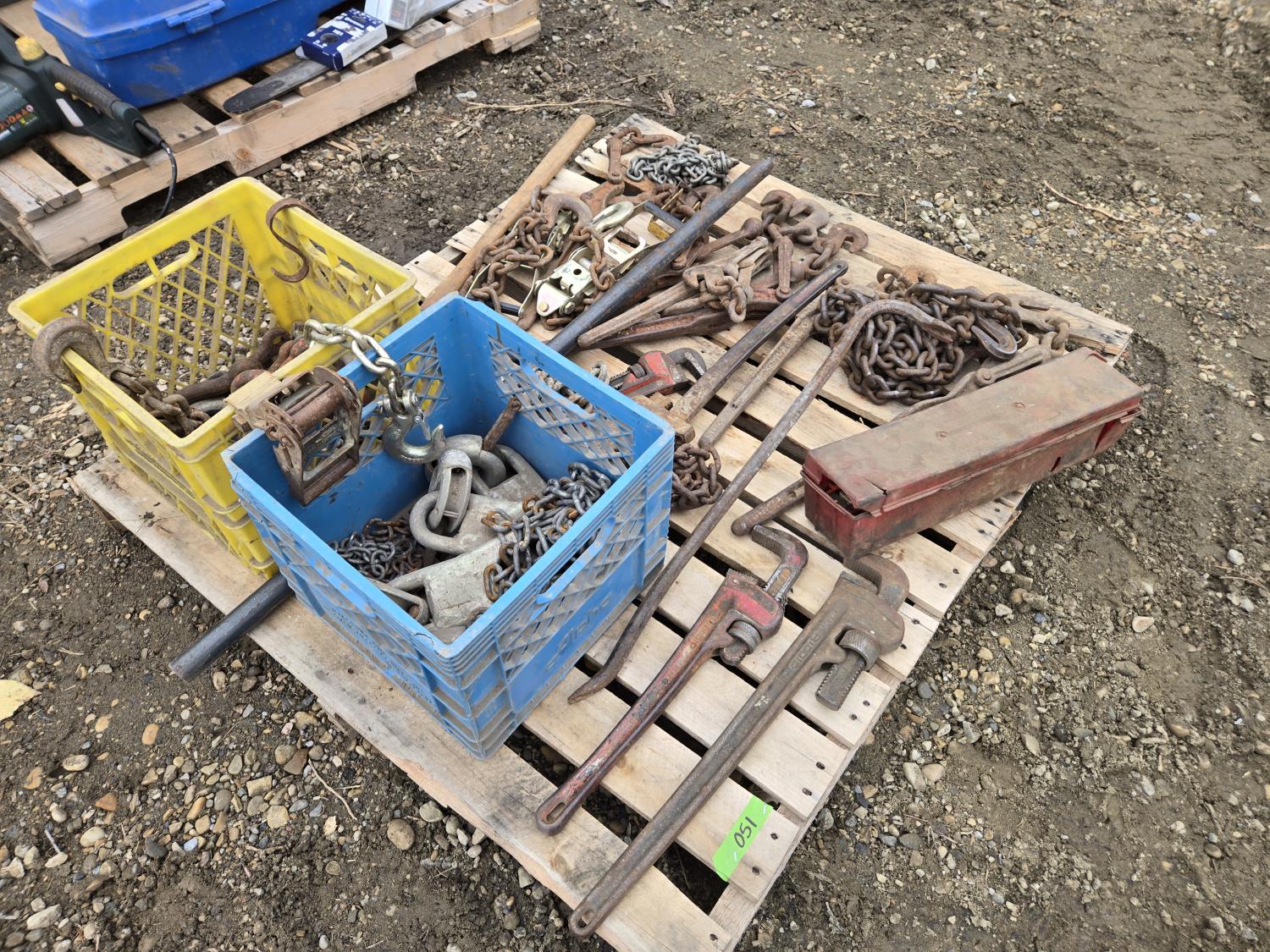 1891 Qty of Chains, Boomers, Pipe Wrenches & Clevises