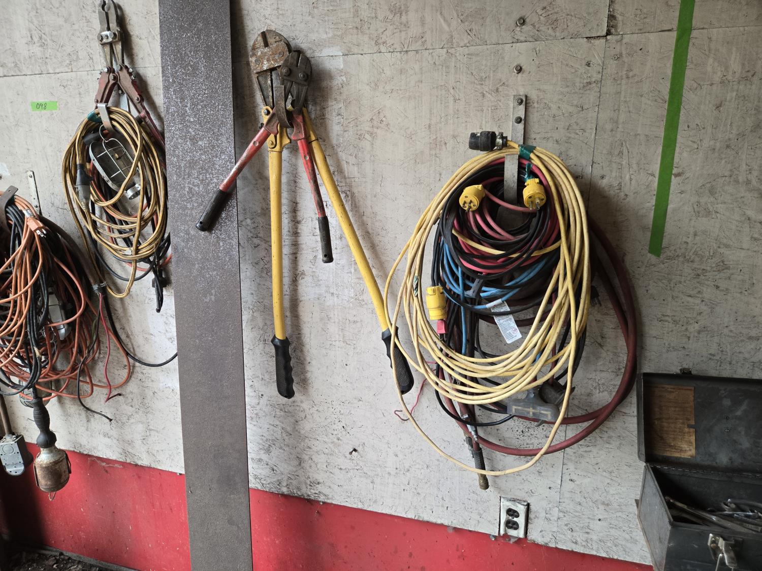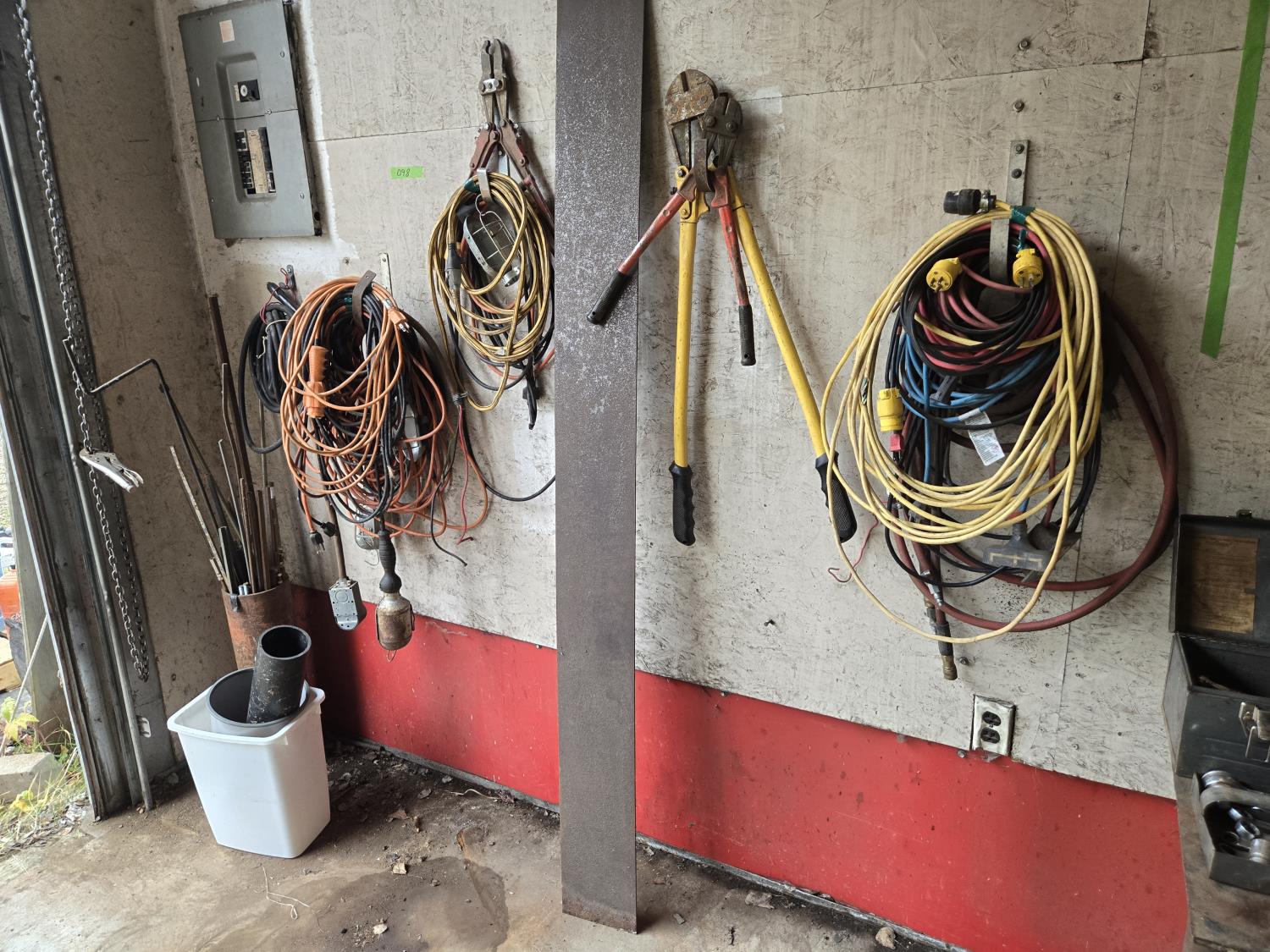 1938 Qty of Extension Cords, Lights, Bolt Cutters & Chain Pliers