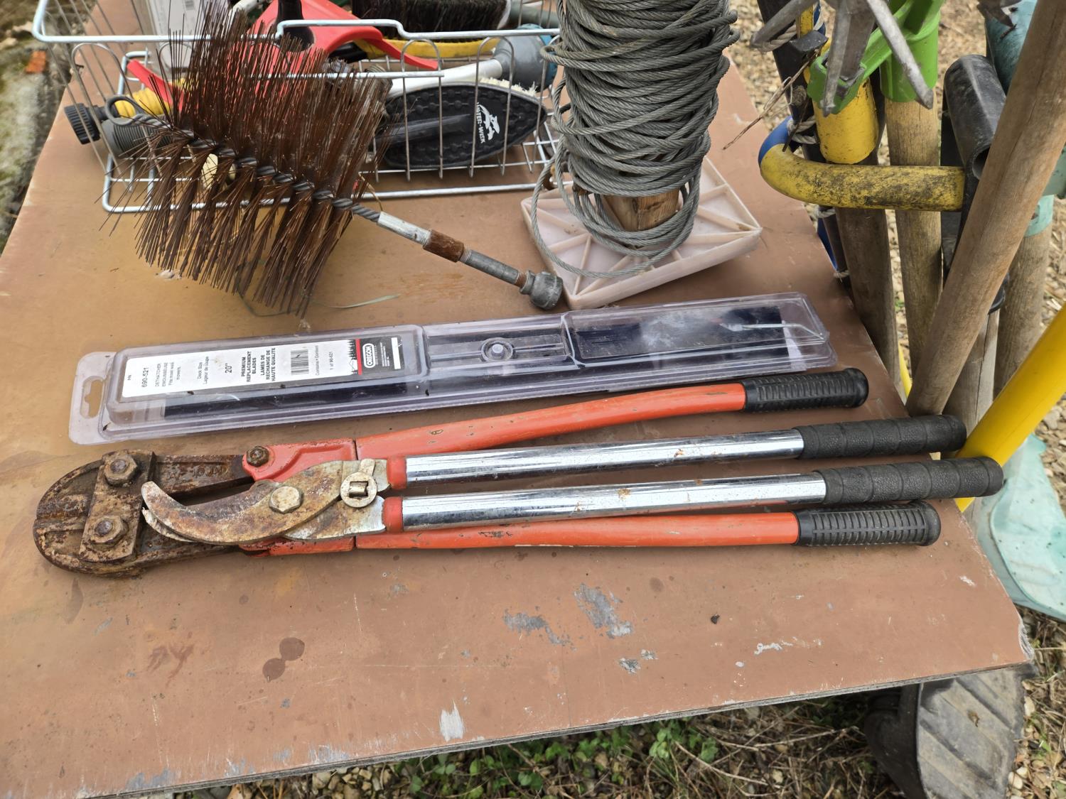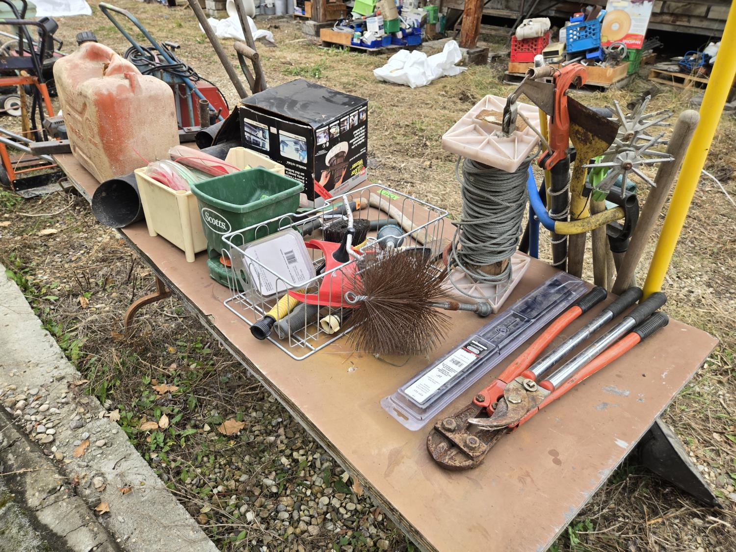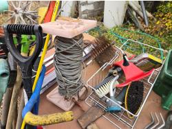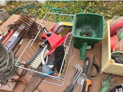 1854 Qty of Garden Tools, Winch Cable, Table Car Polisher & Misc Items