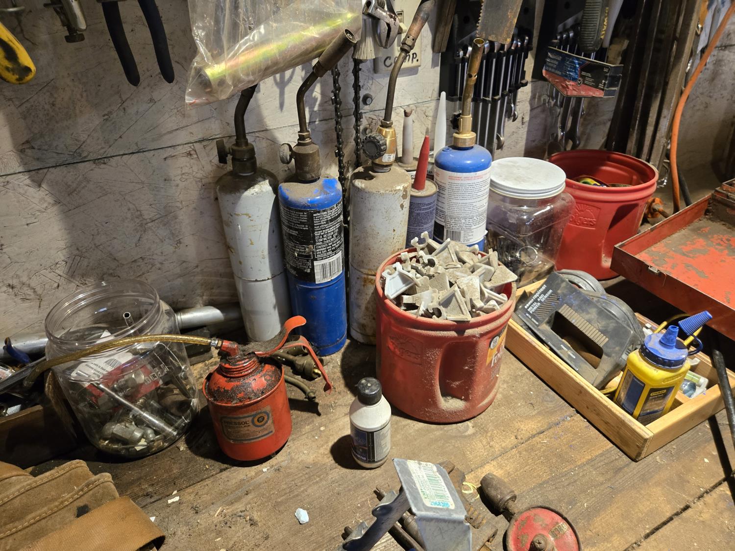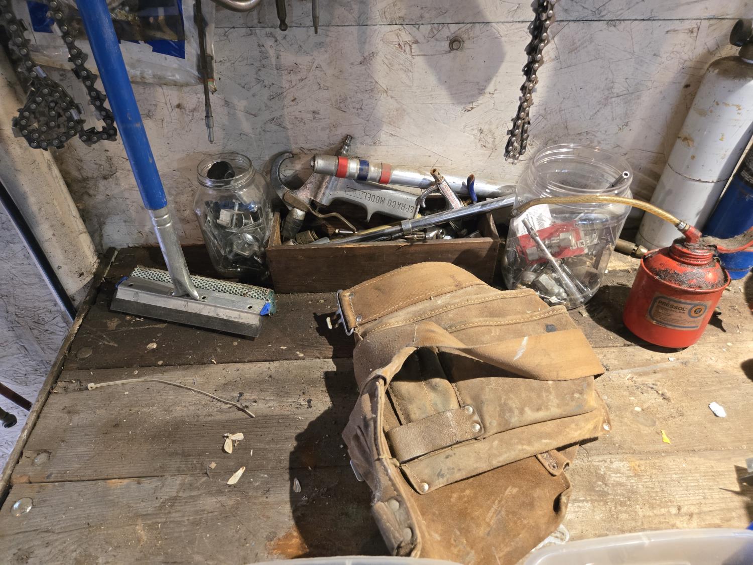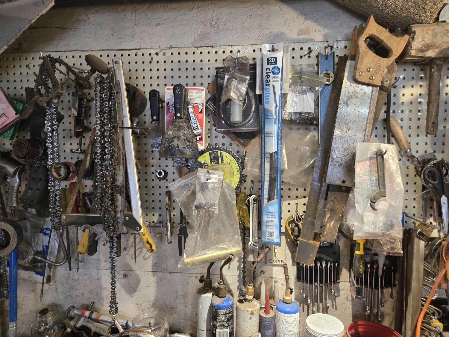 chain saw chain, torches, hardware, miscellaneous items