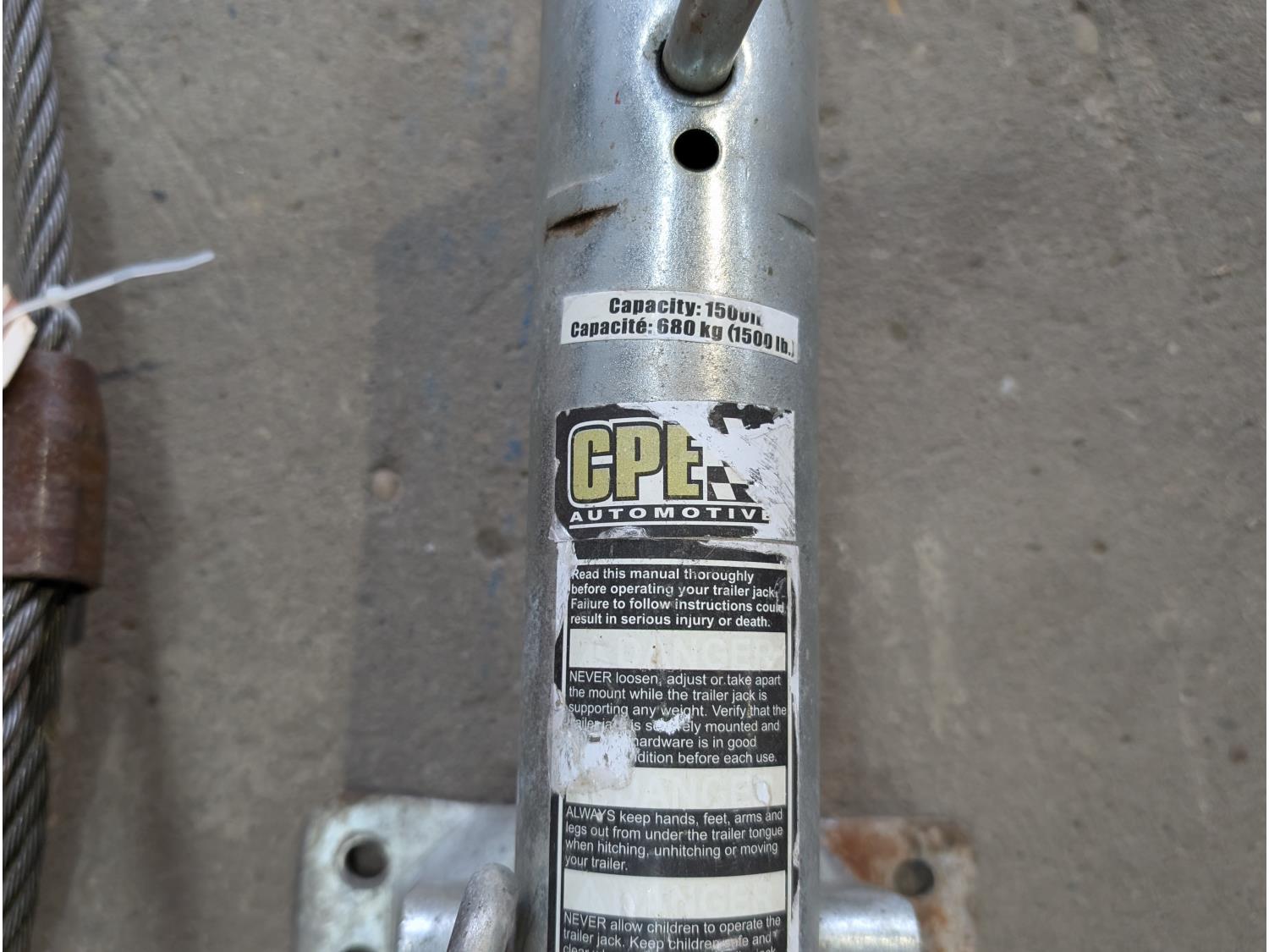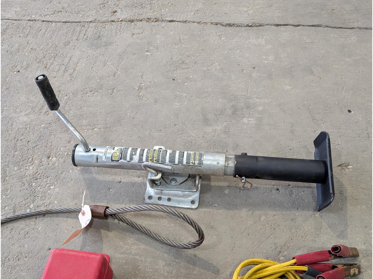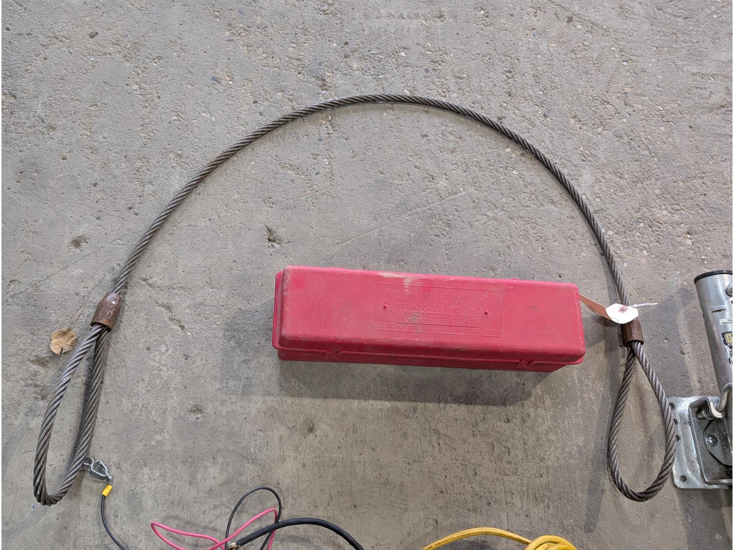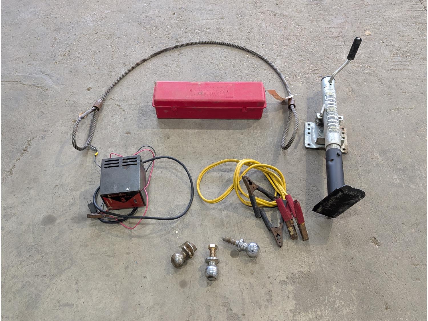 6 ft cable sling, triangle warning flares, 1500 lb trailer jack, (3) ball hitches