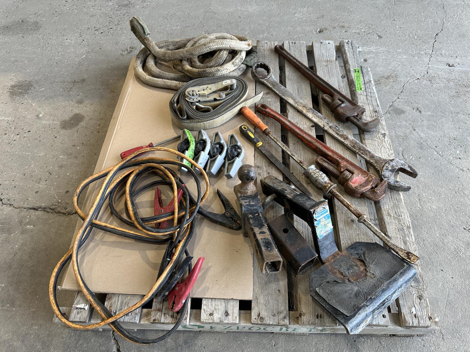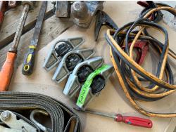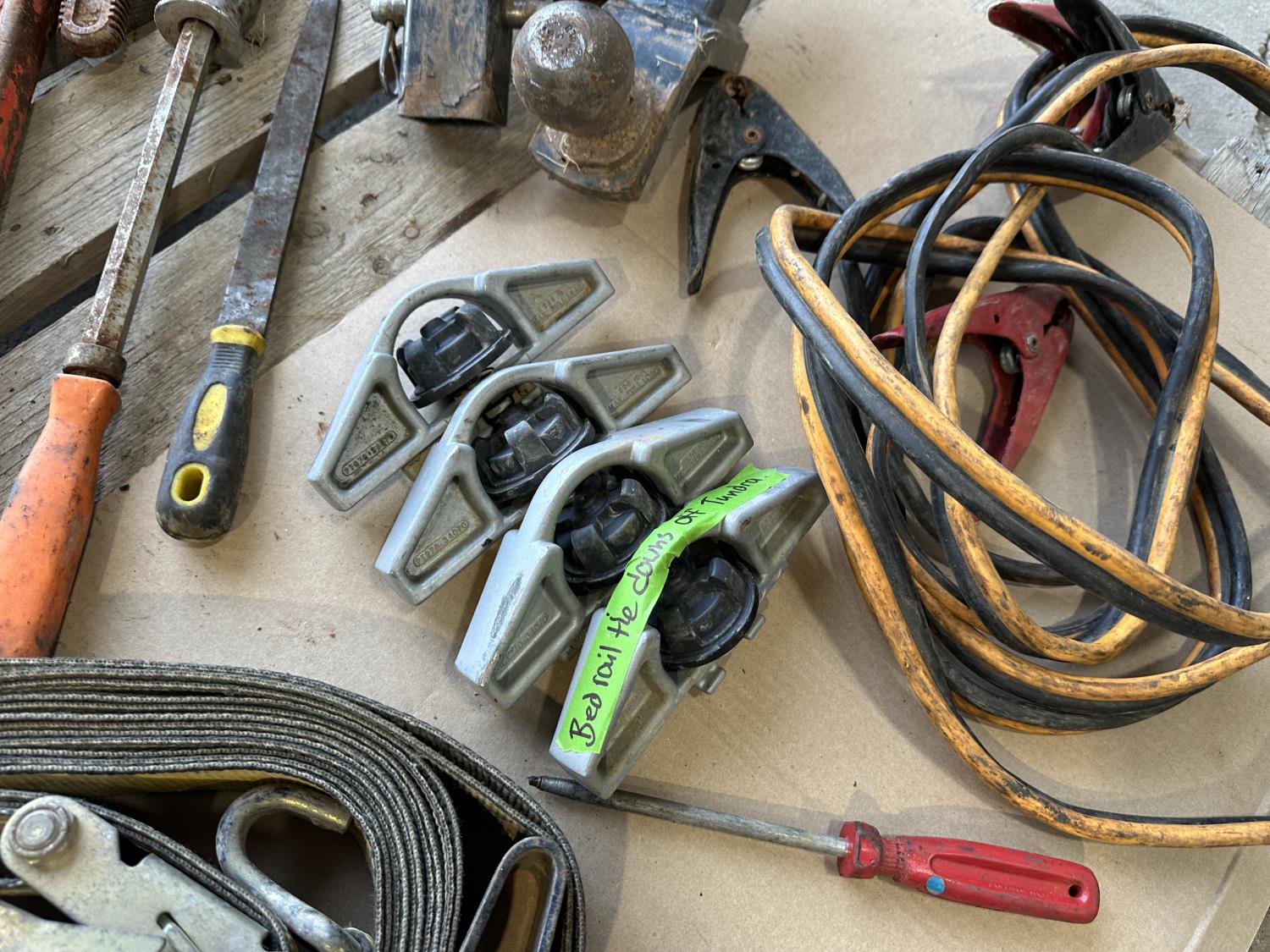 Ratchet strap, assorted hand tools, tow rope, hitches, booster cables, bed rail tie downs for Toyota Tundra