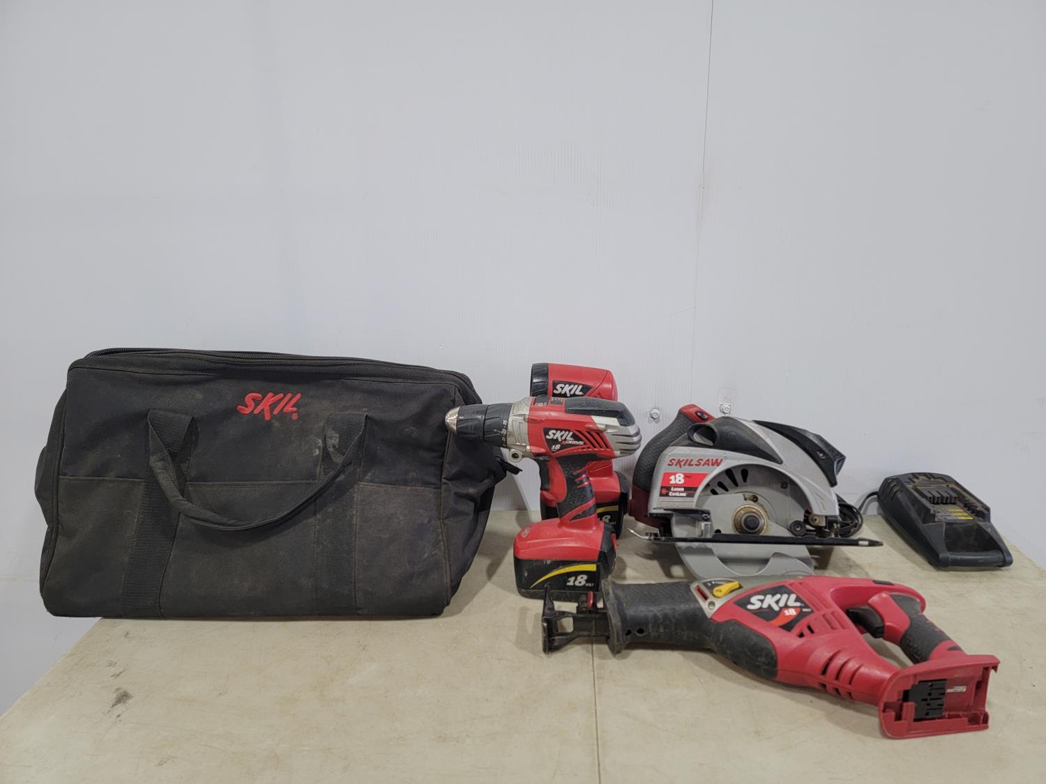 (2) meat grinders, Simpson strong ties, (2) 220V receptacles, Skil 18V flashlight, Skilsaw 18V 7-1/4 inch circular saw, Skil 18V reciprocating saw