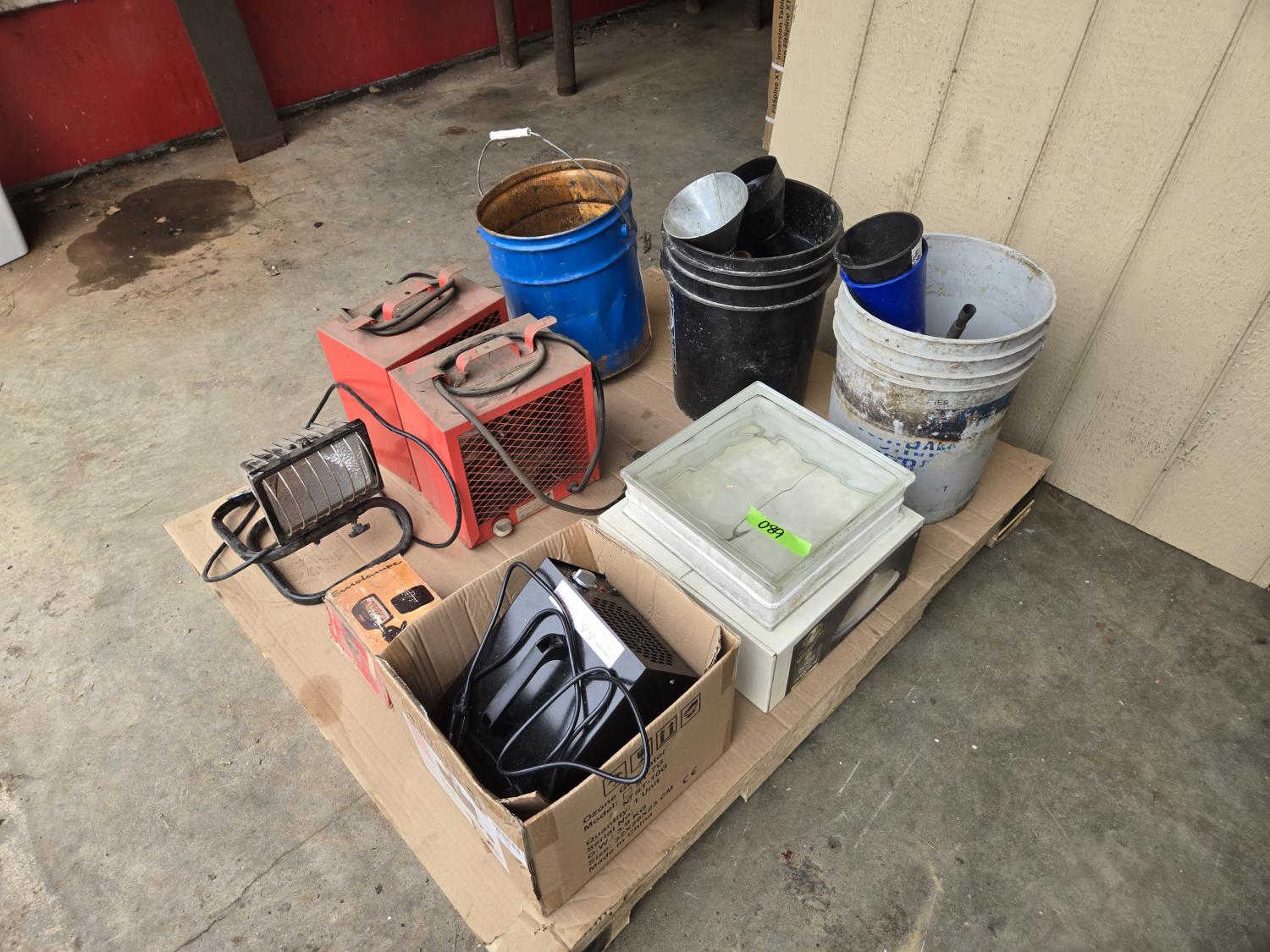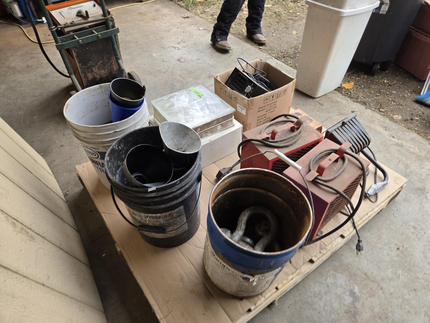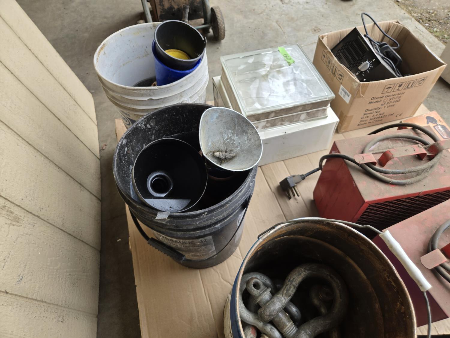 (2) 220 Volt heaters, ozone generator, lights, funnels, glass block