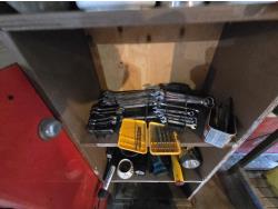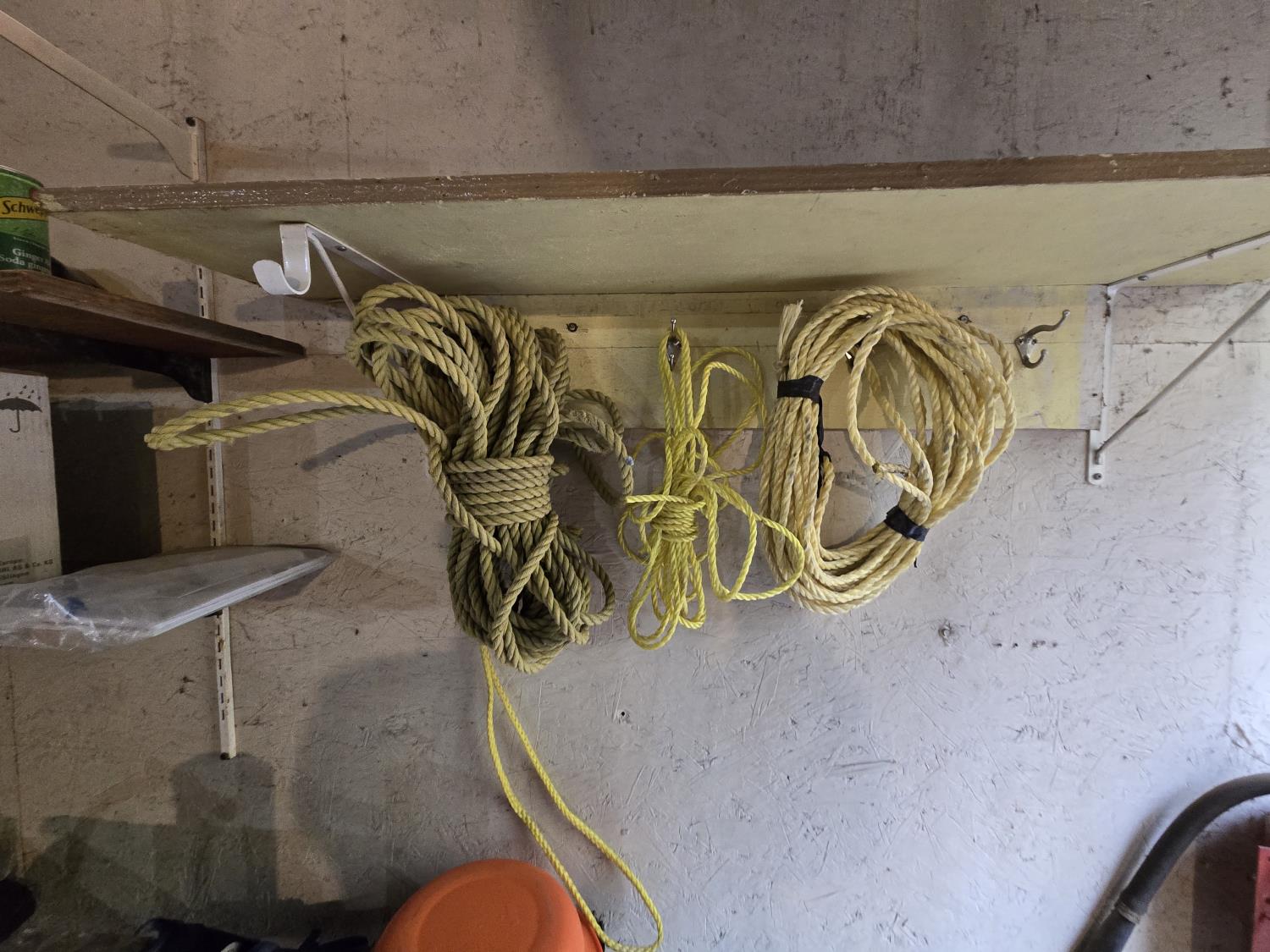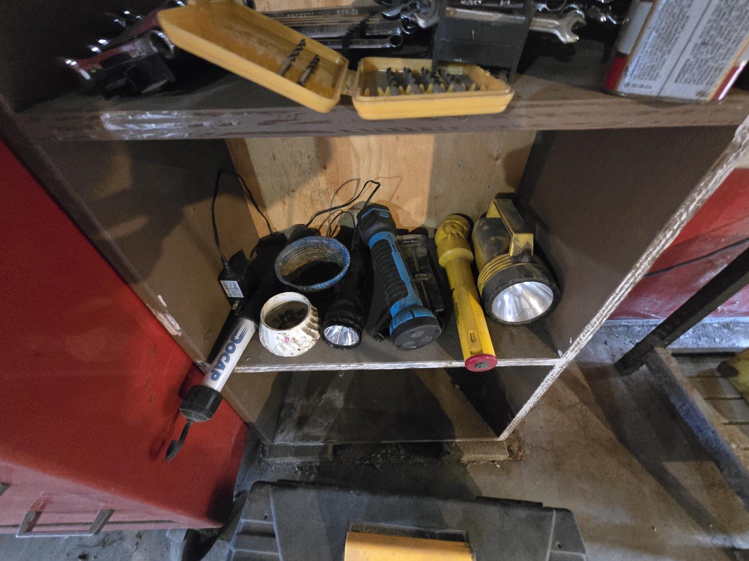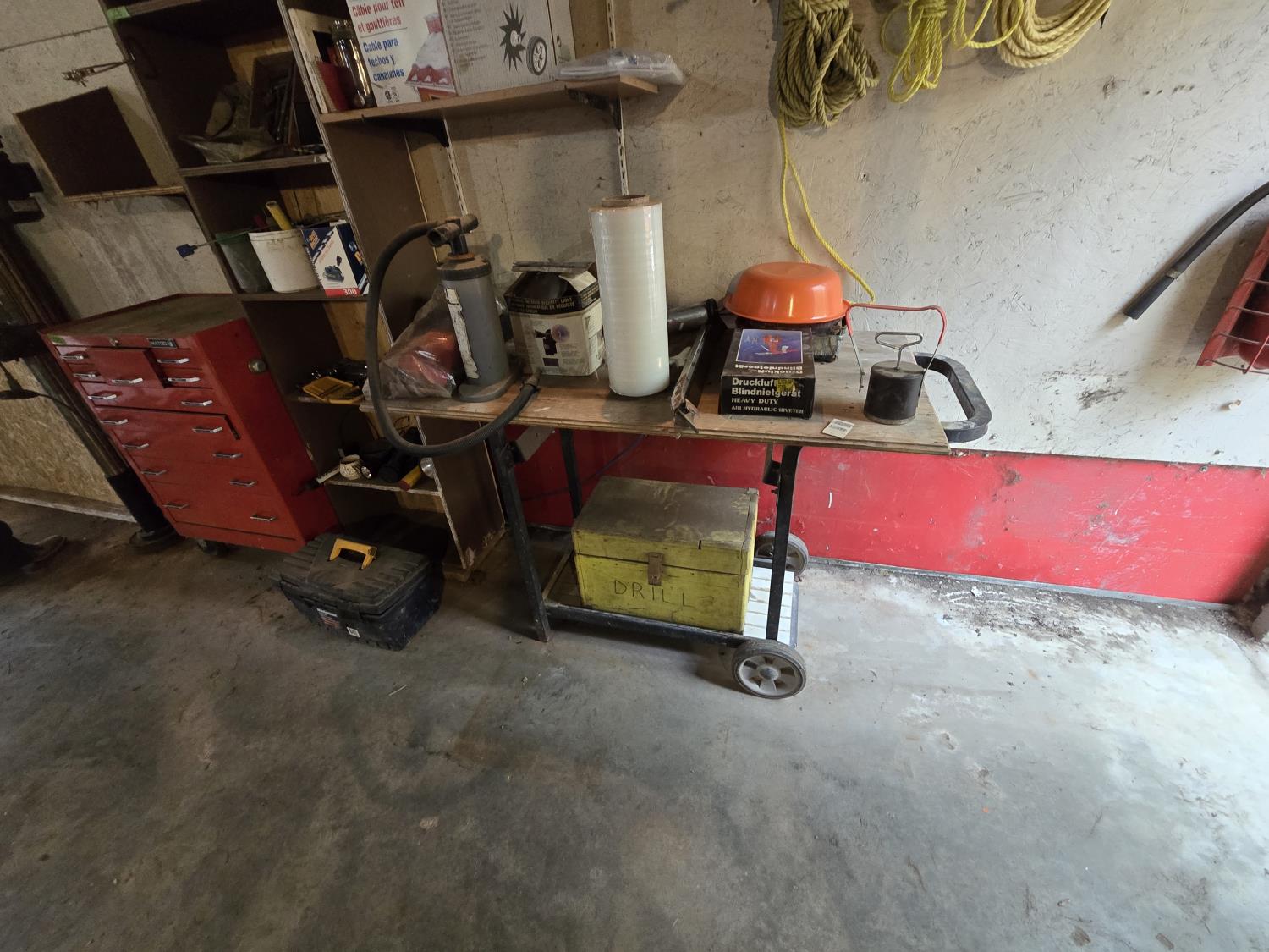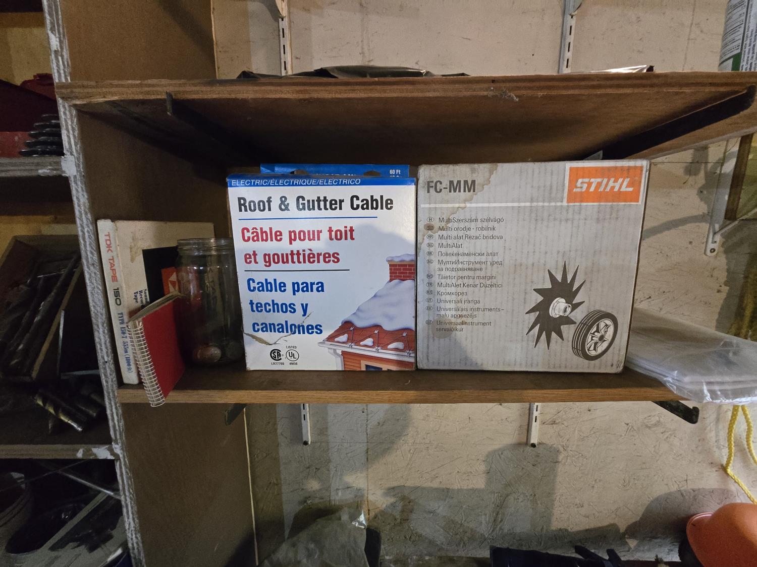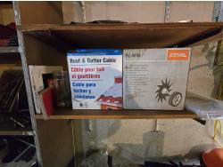 wrenches, drill bits, flashlights, hand pump, riveter gun, rope, Stihl FC-mm edger, miscellaneous items