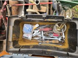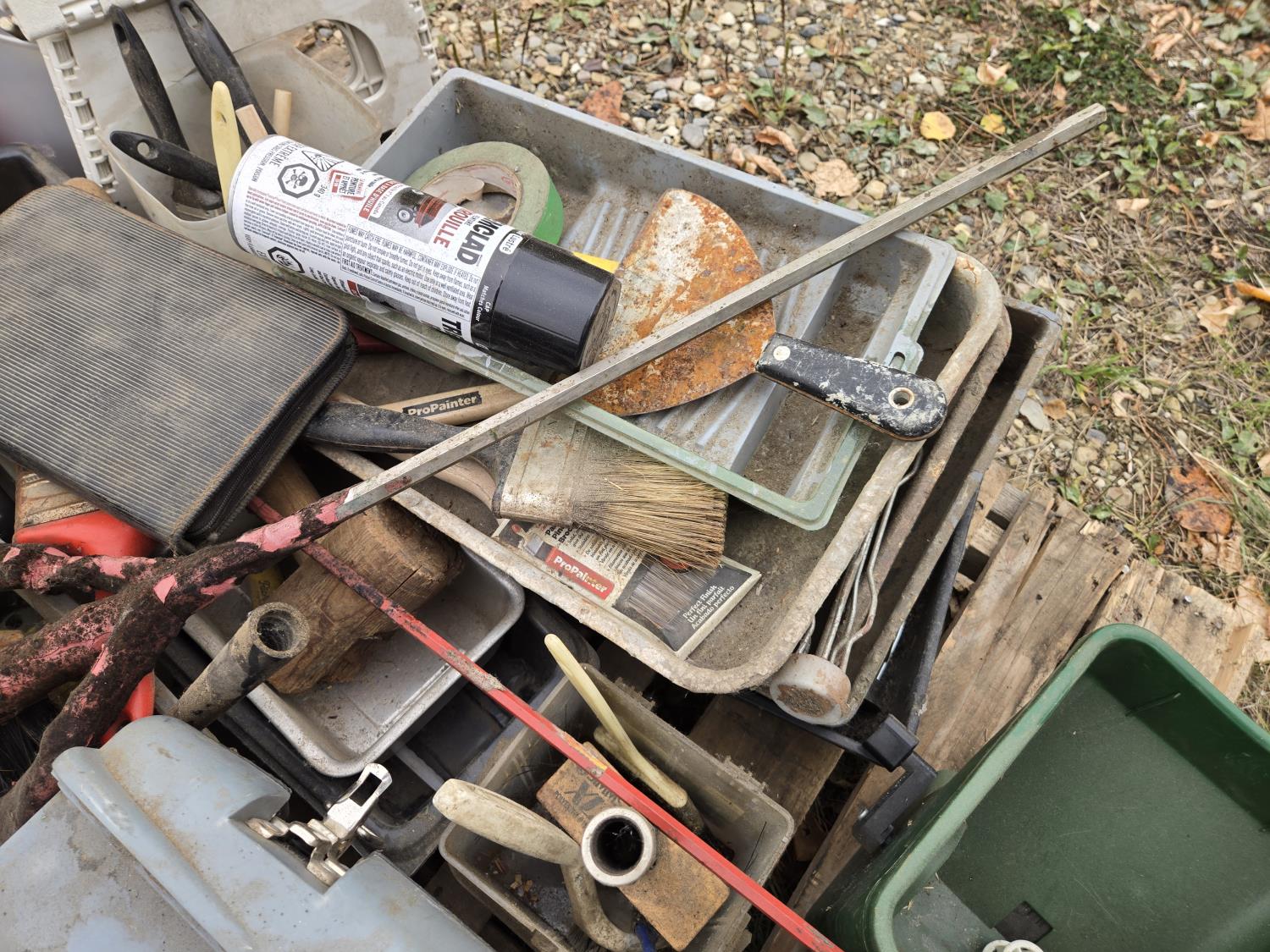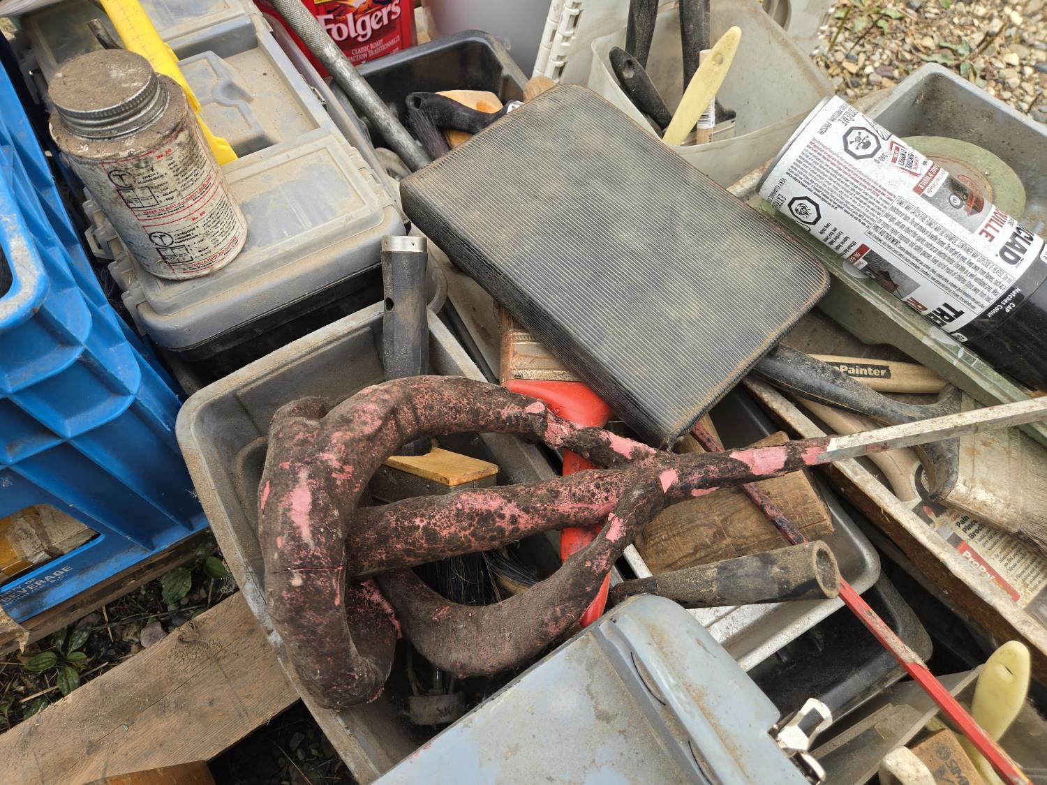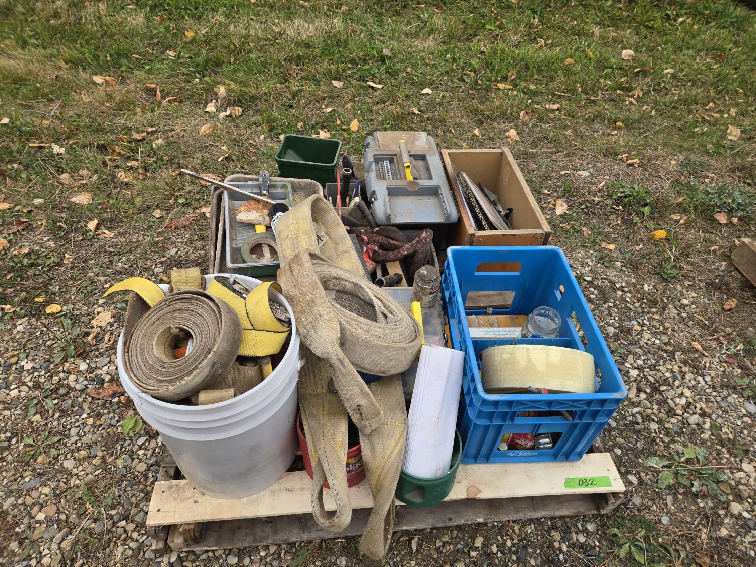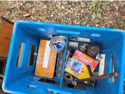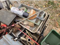 ratchet straps, Paint supplies, saw blades, miscellaneous items