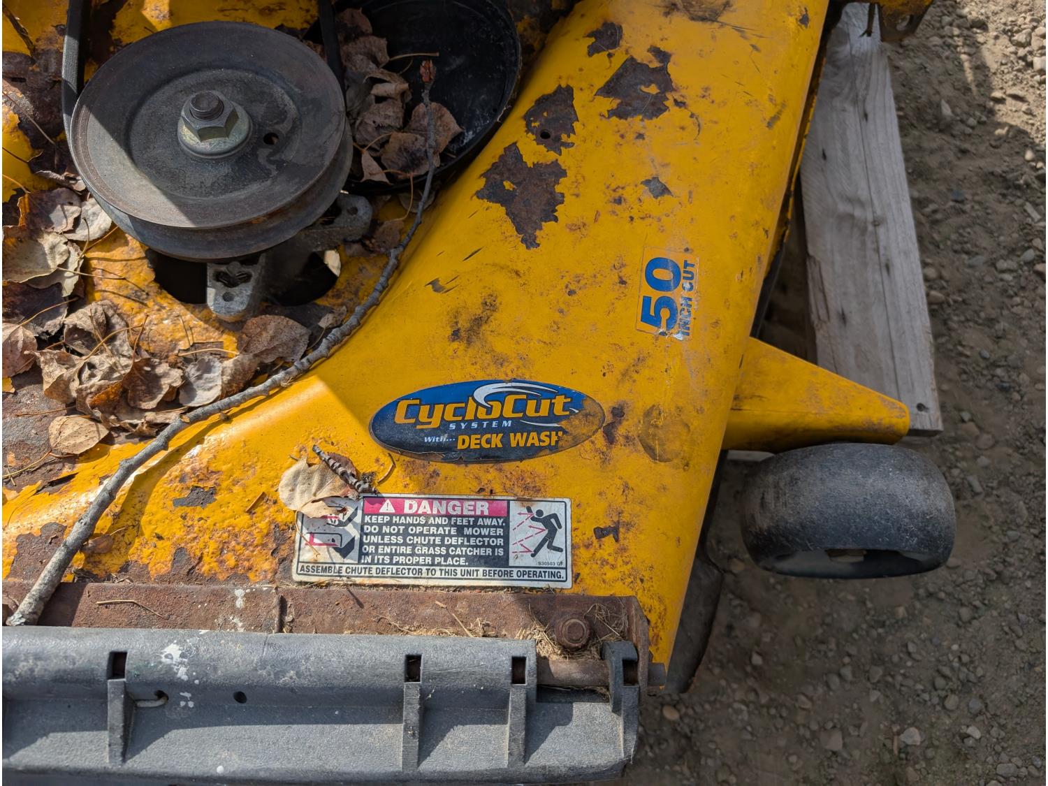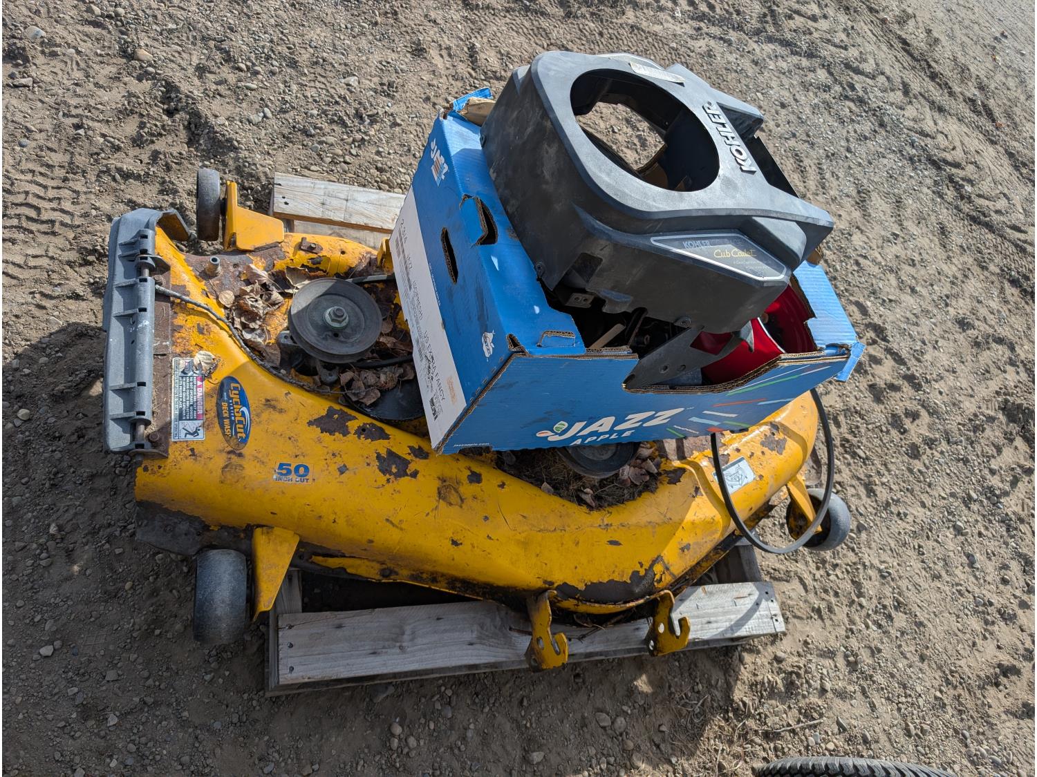 Includes 50 inch mower deck and qty of parts