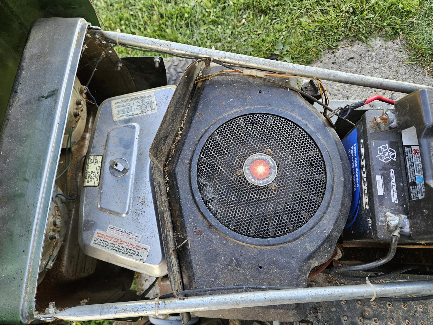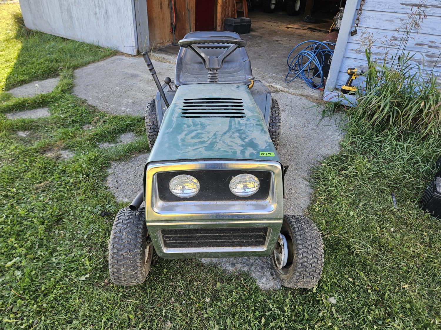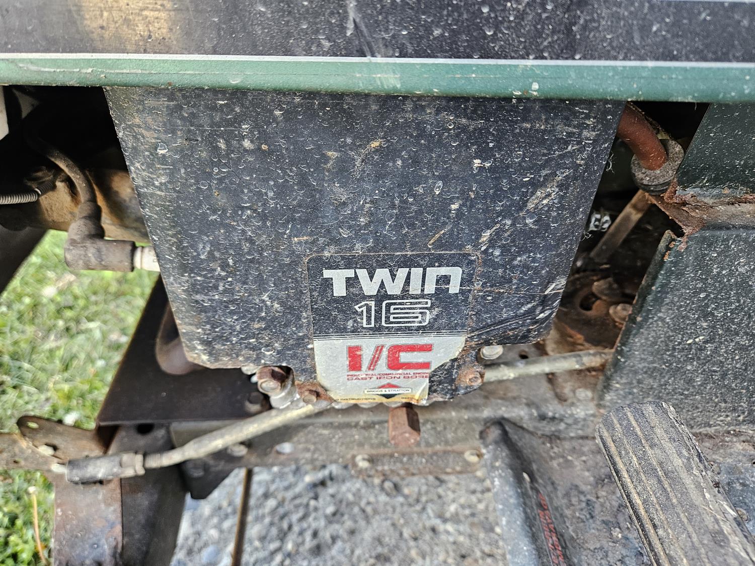 16 HP gas engine, 6 speed transmission, 18-8-6 front tires, 19x9.50-8 rear tires, ran when parked