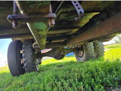 7 ft 7 inch box width, 81 inch side wall height, hydraulic power pack, spring suspension, 7.50-20 tires