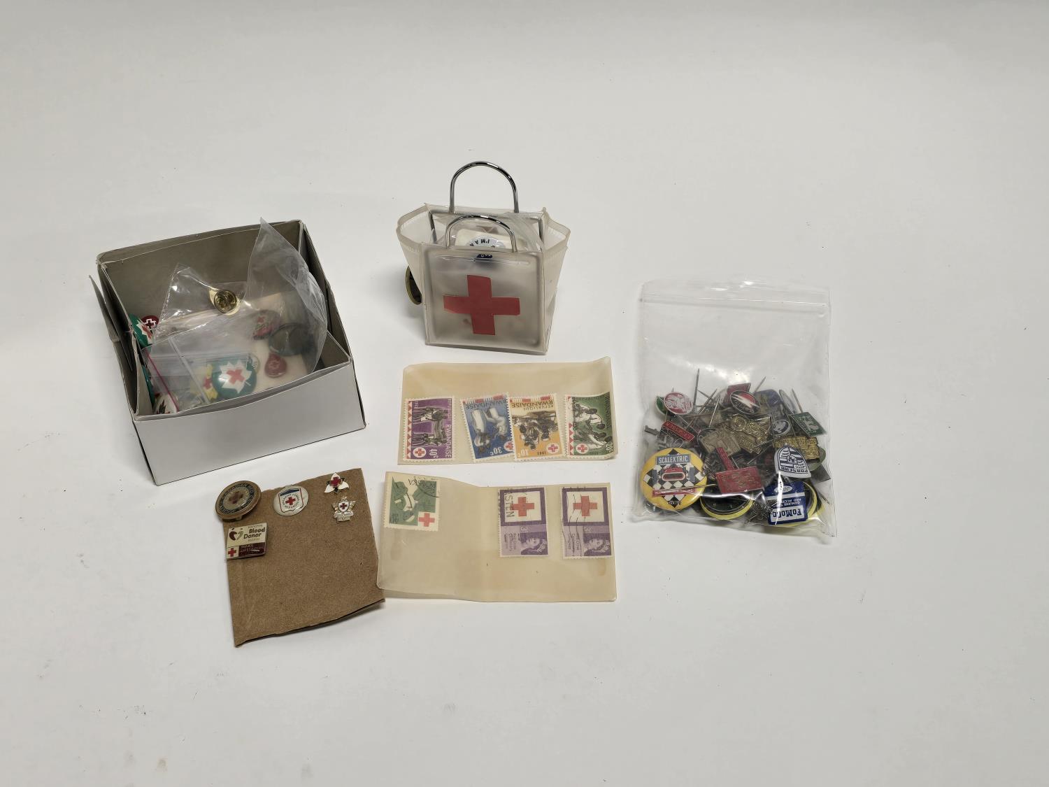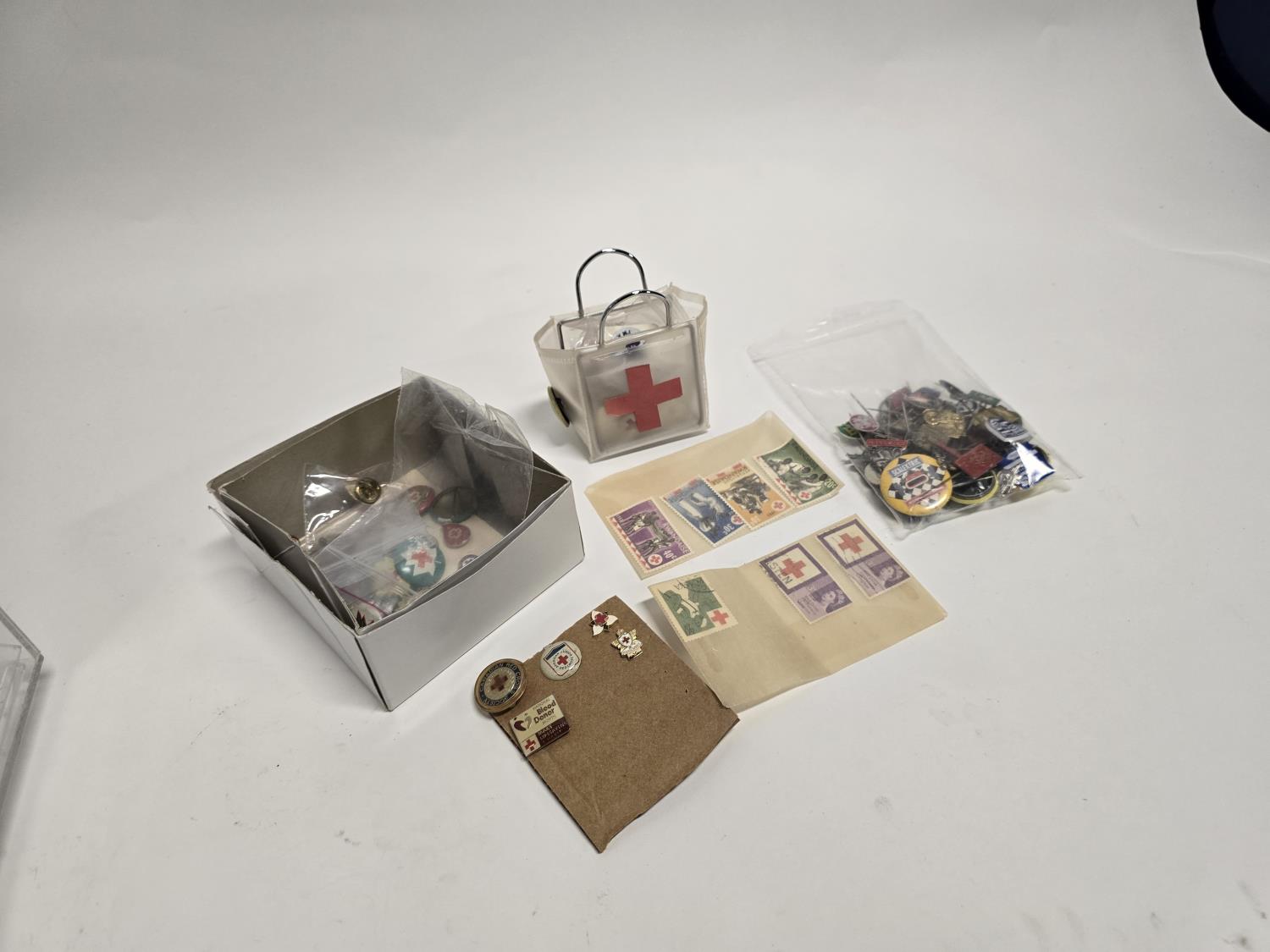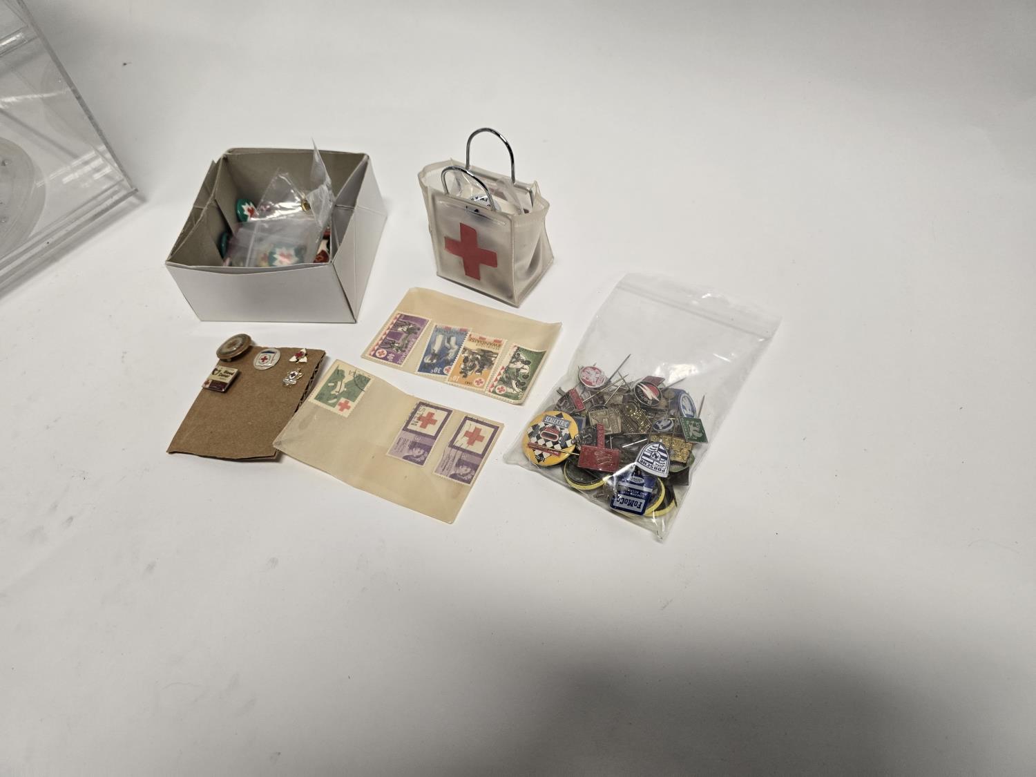 2423 19 Inch Rotating Display Case w/ Misc Red Cross Collectibles