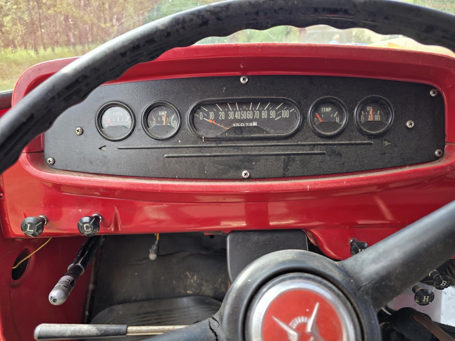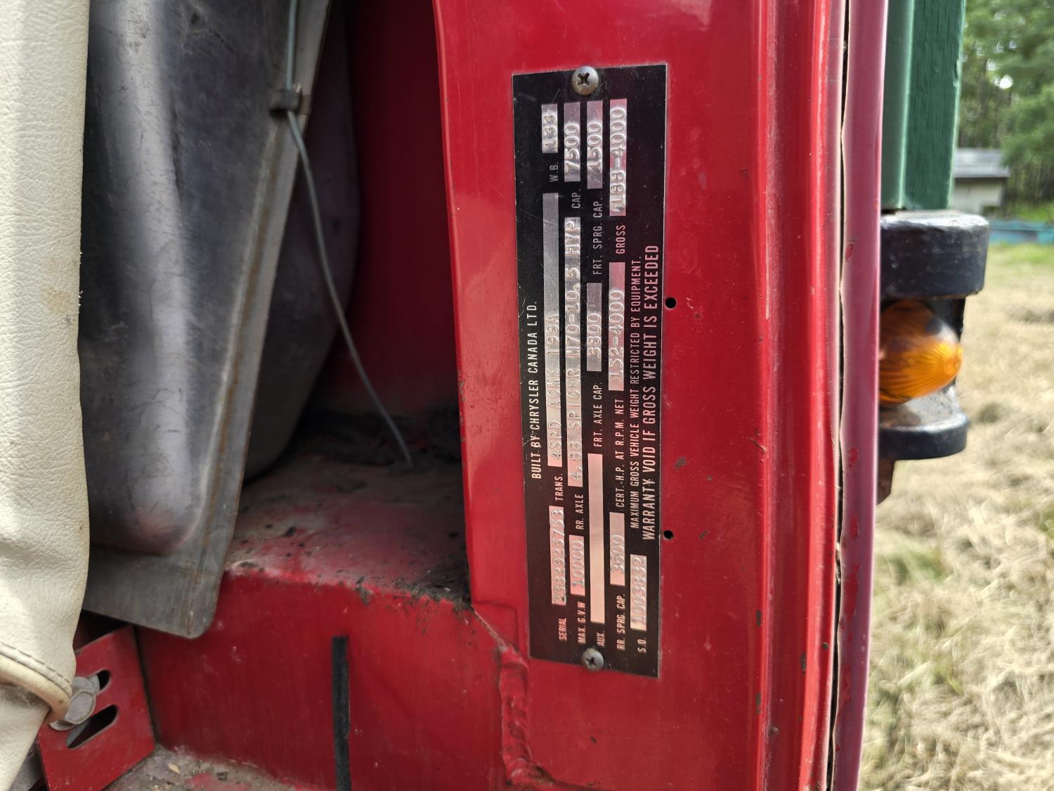 V8 gas engine, Acme 198A 4 speed manual transmission, 108 inch x 80 inch x 36 inch box, spring suspension, 4.88 ratio, 133 inch WB, 7.5-17 tires