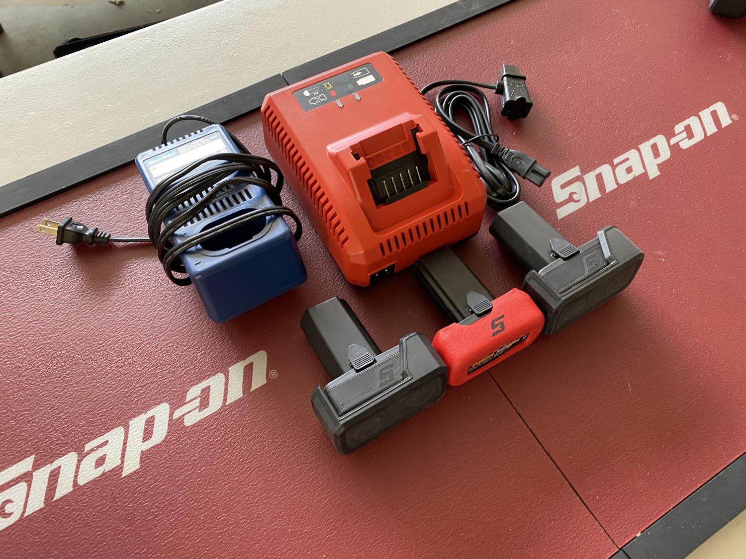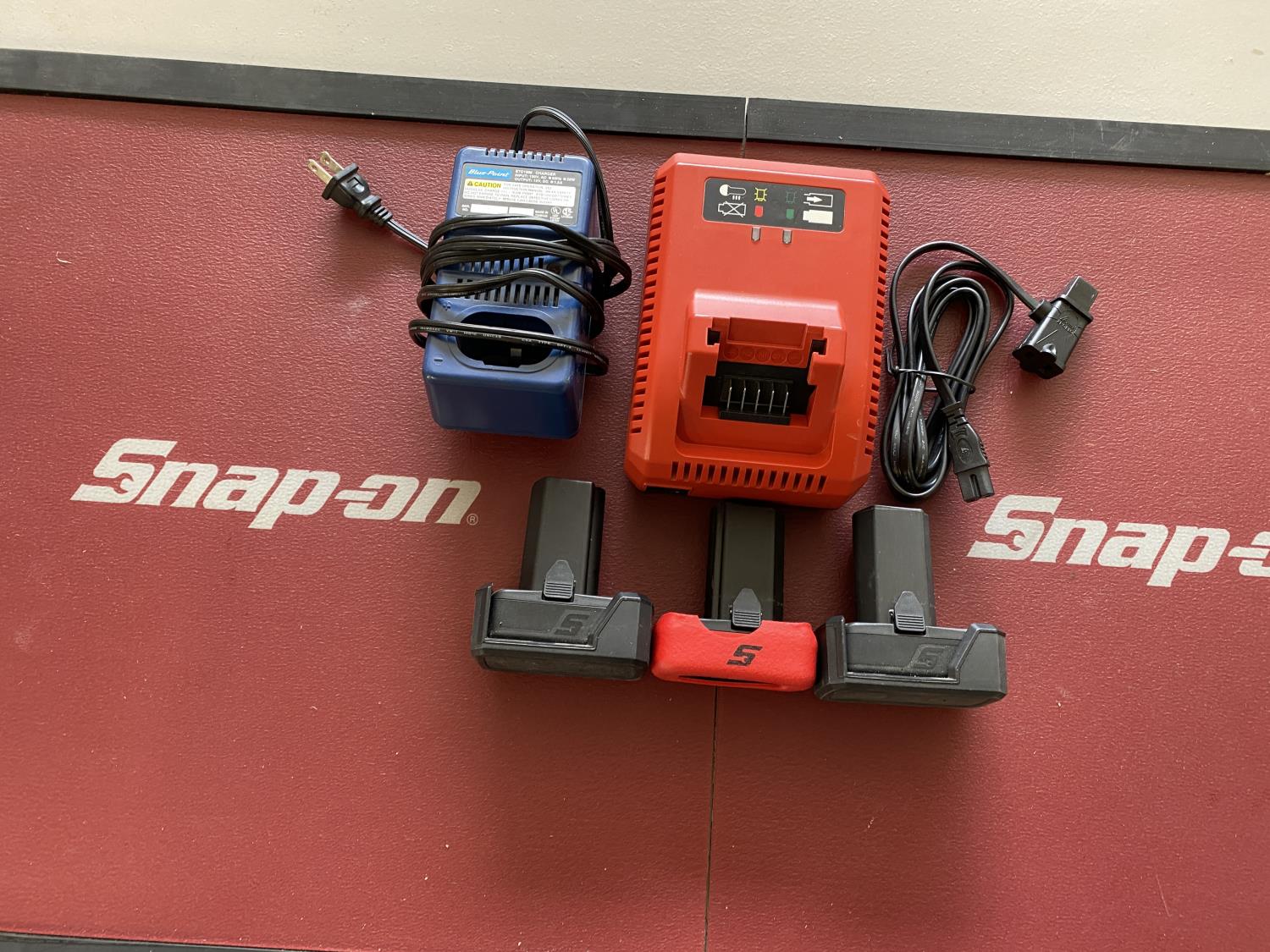 1526 Qty of (3) Snap-on Batteries w/ (2) Chargers
