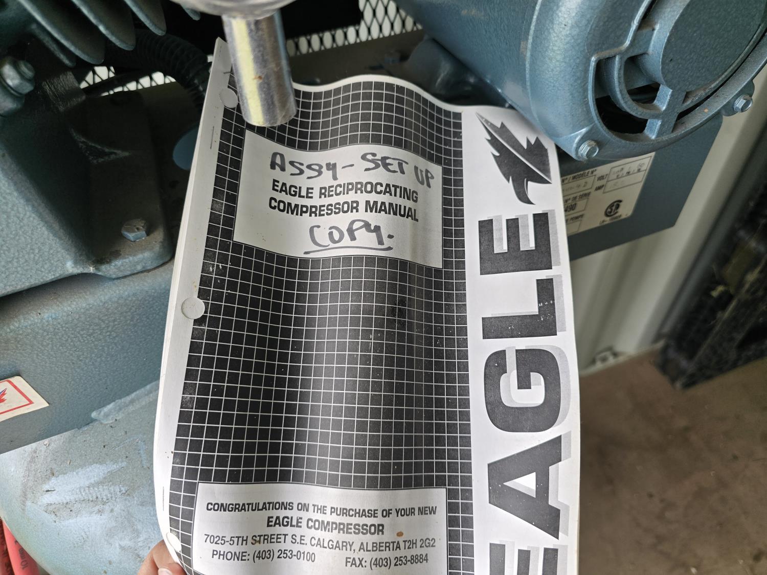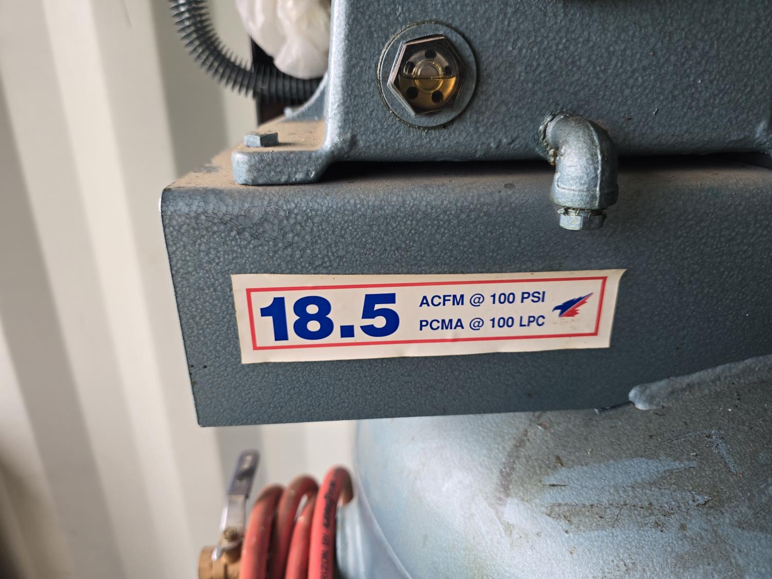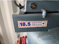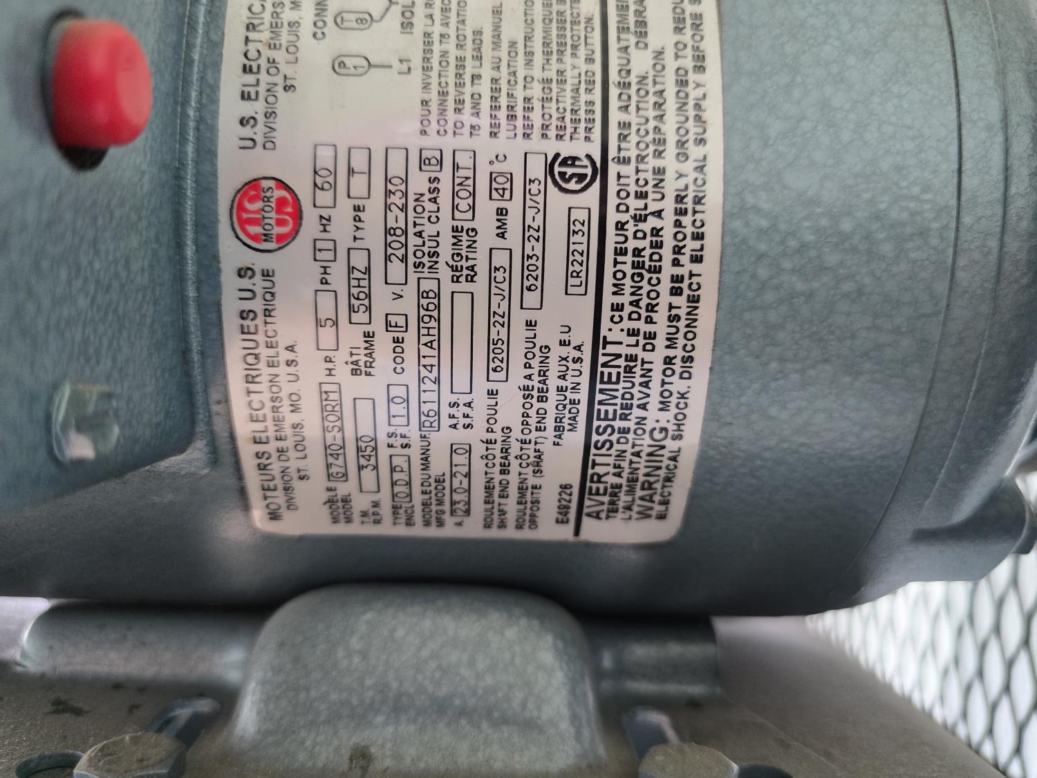 208v single phase input. 5 HP electric motor, 18.5 ACFM @ 100psi