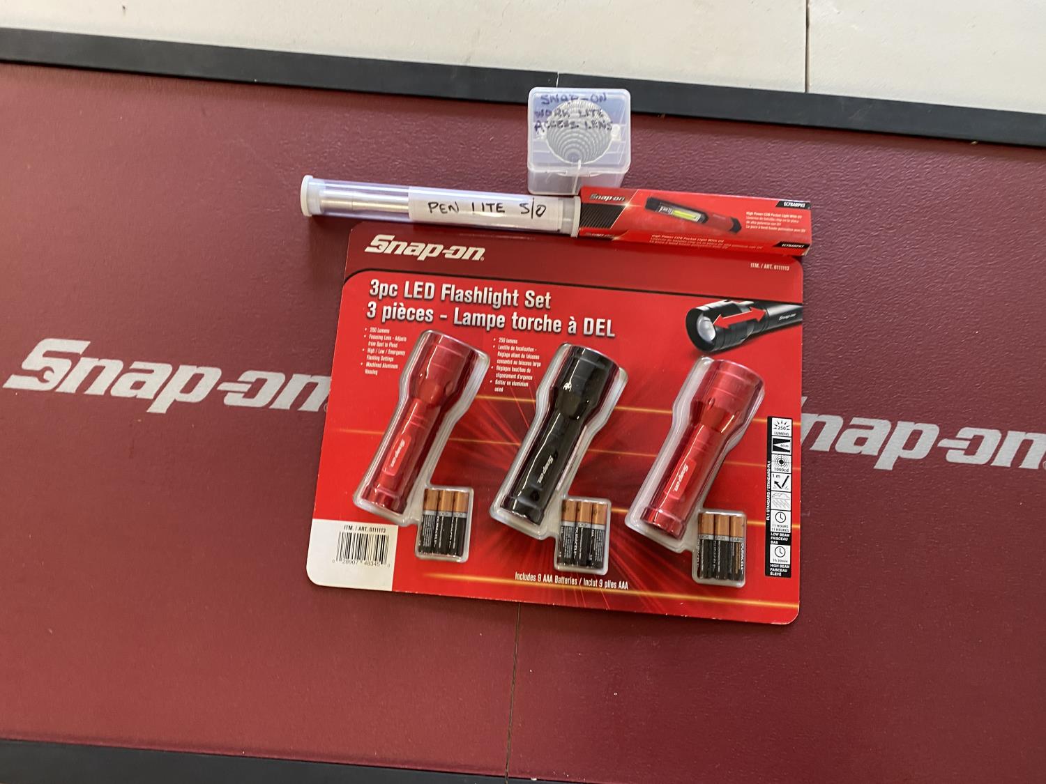 1572 Qty of (5) Snap-on Flashlights w/ Misc Lens (Unused)
