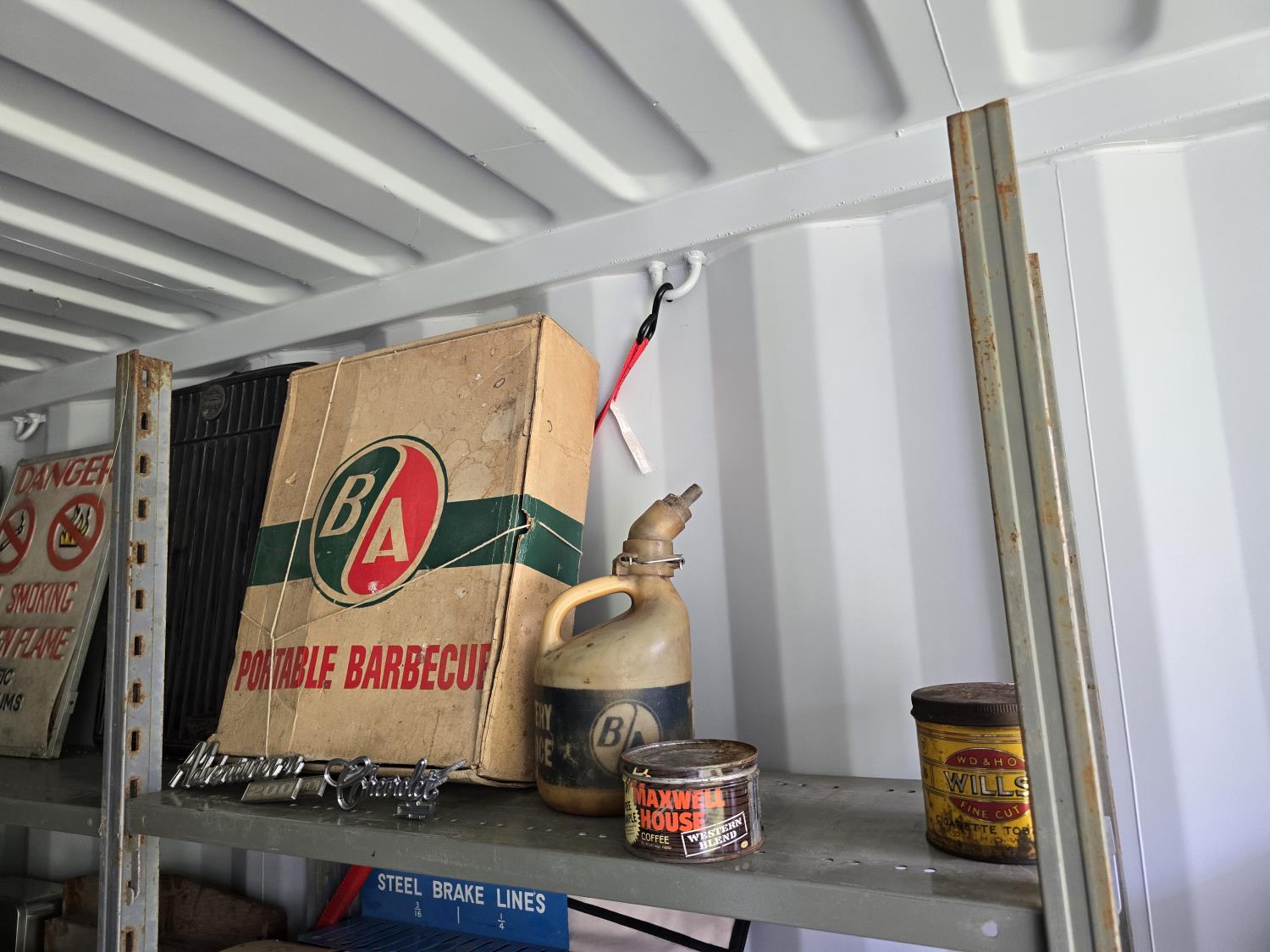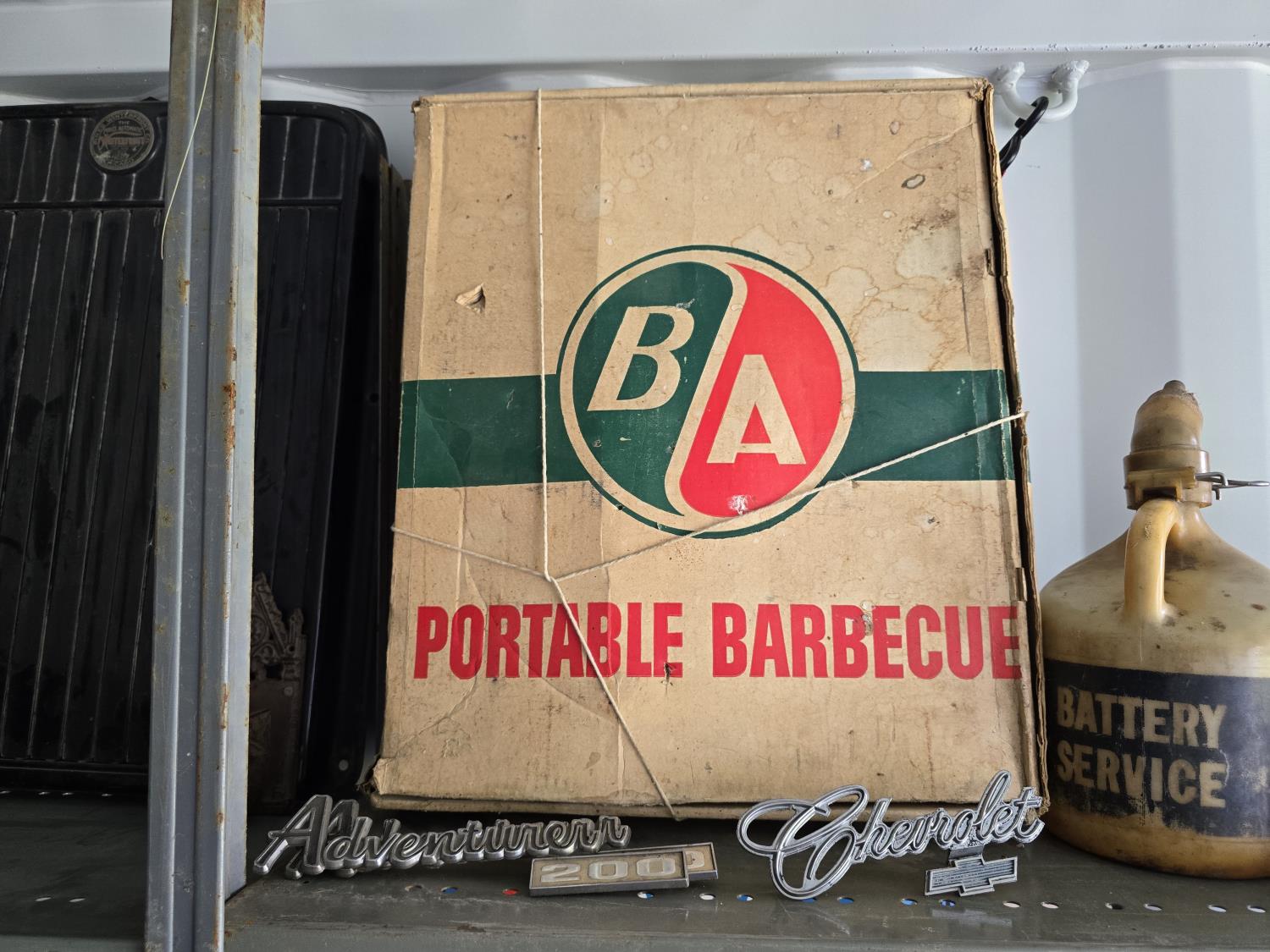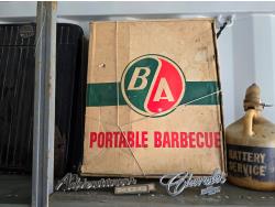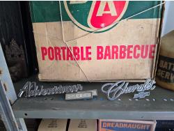 2268 Portable Barbeque w/ Misc Vintage Badges & Containers