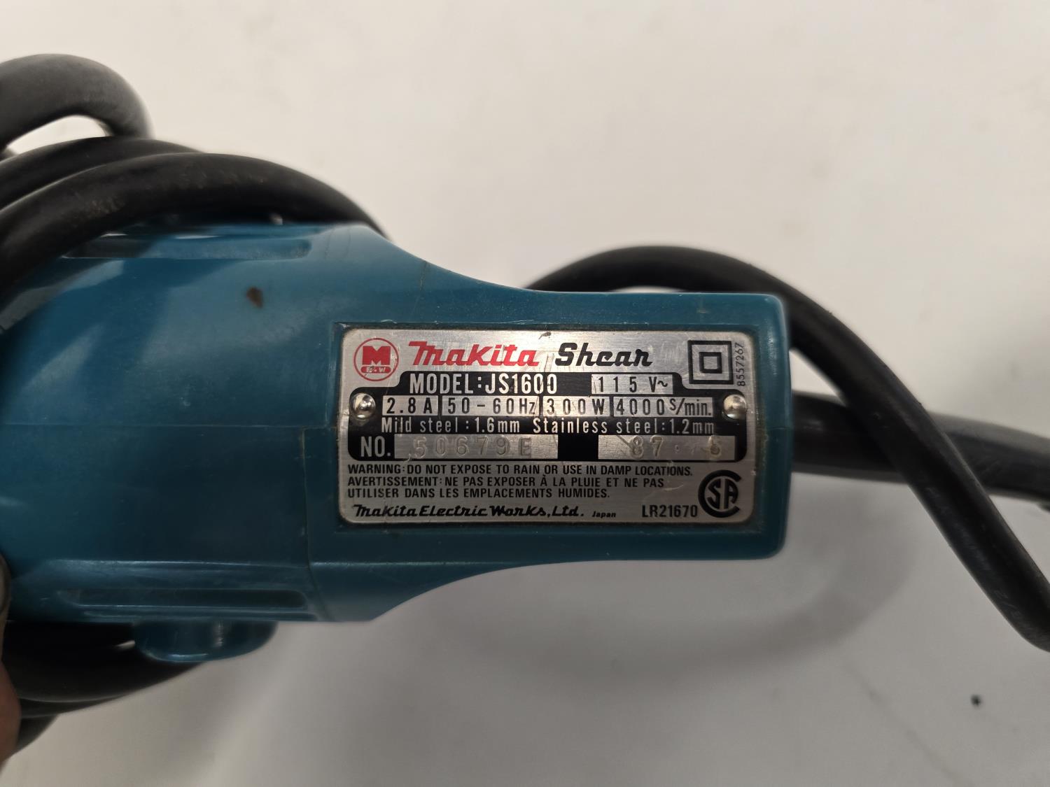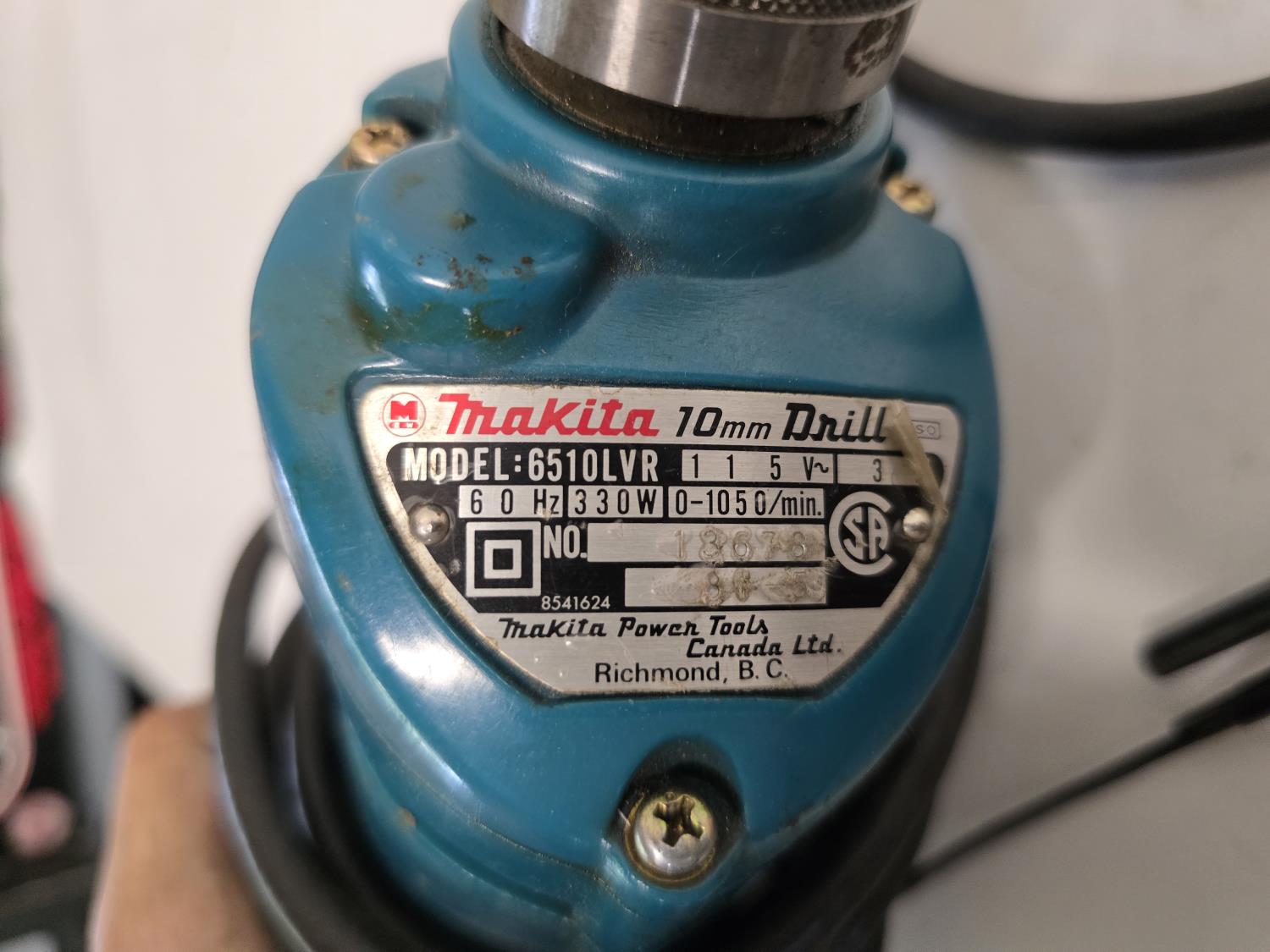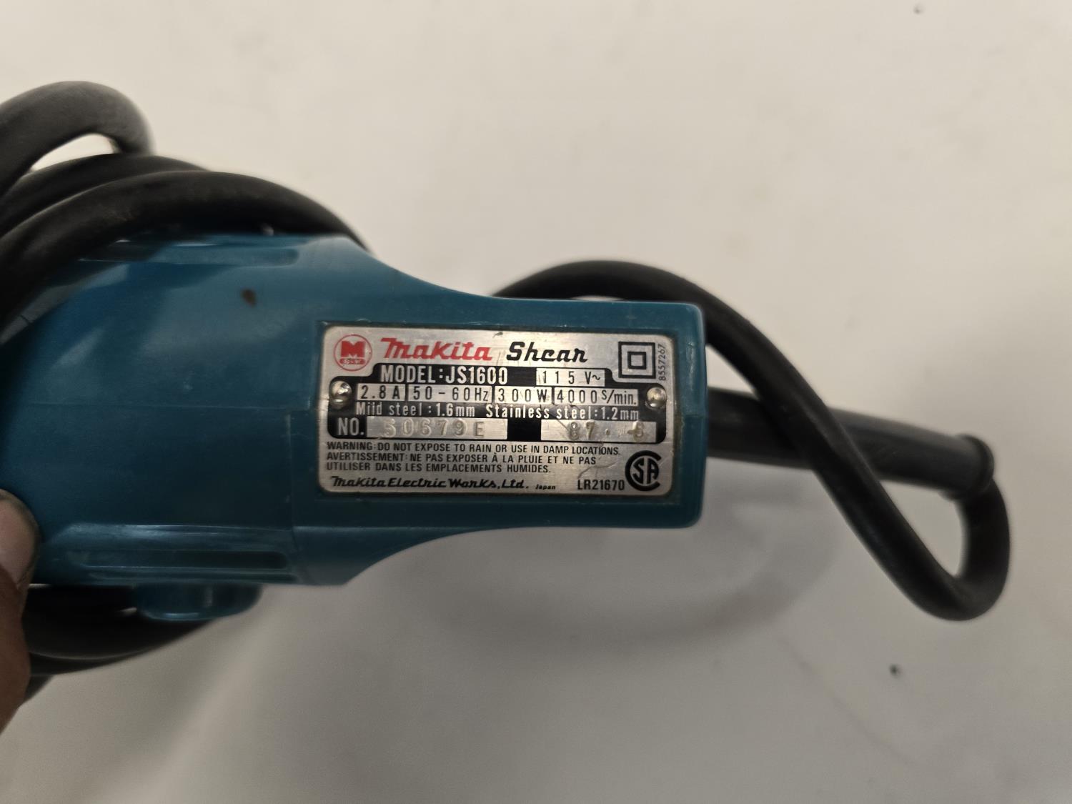 (1) 10 mm drill model: 6510LVR, (1) tin shear model: JS1600