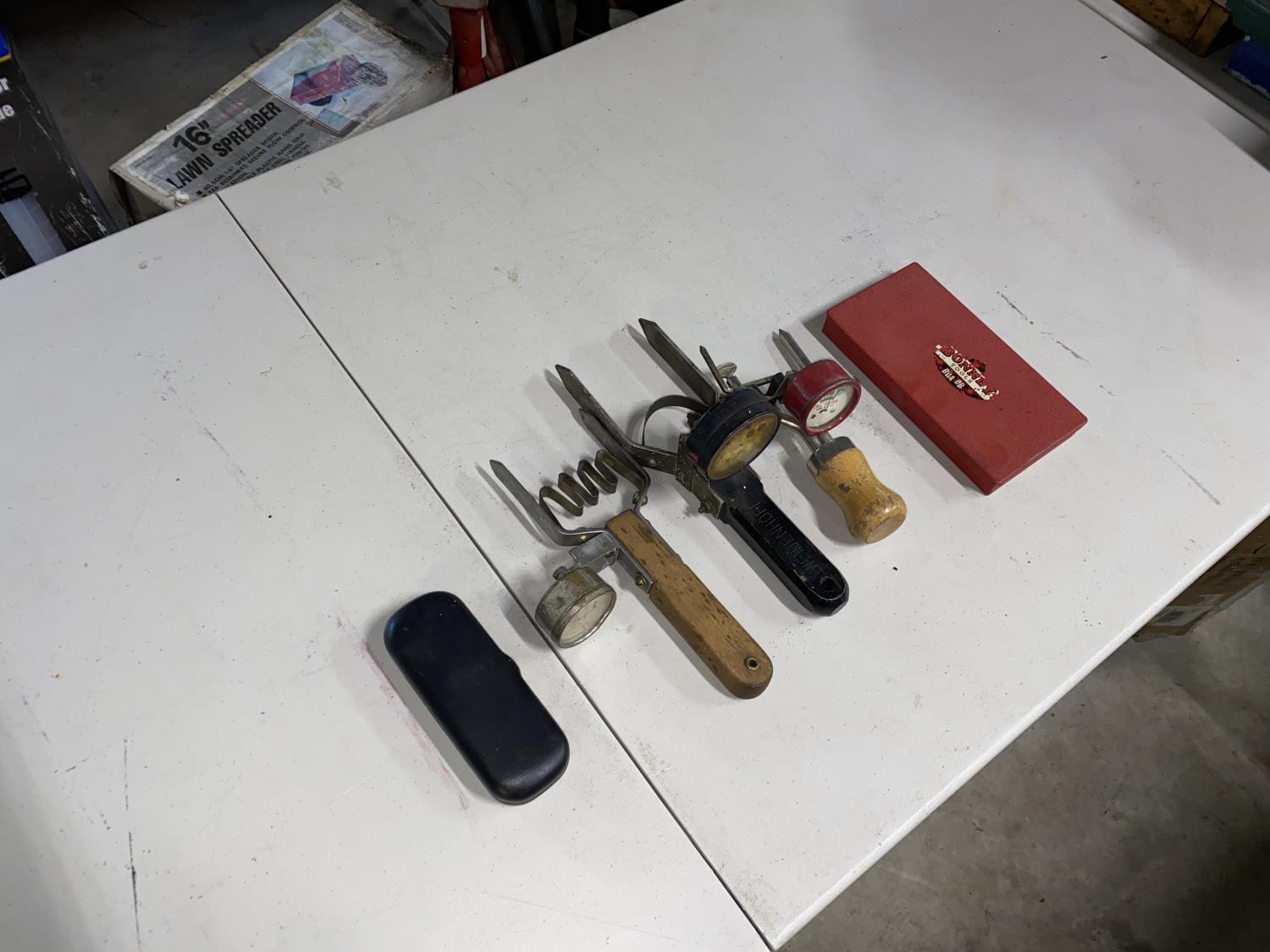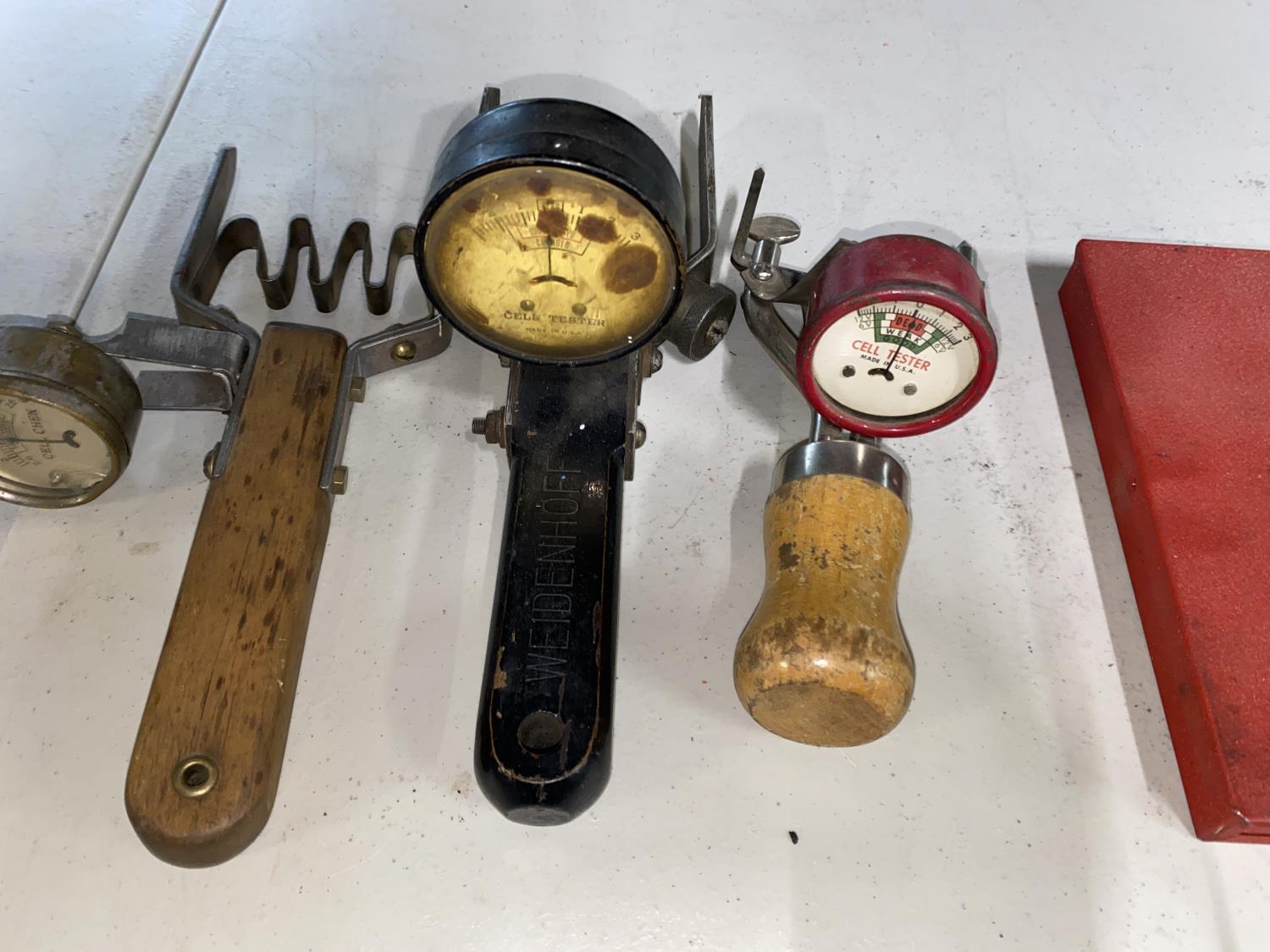 1719 Qty of (3) Cell Testers and Tire Pressure Gauge w/ Bushing Remover Kit