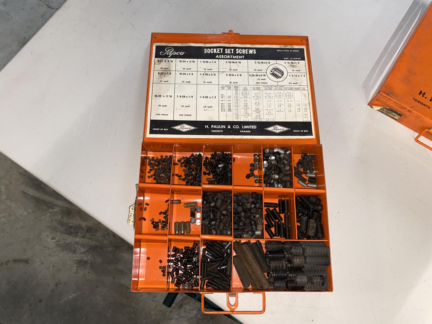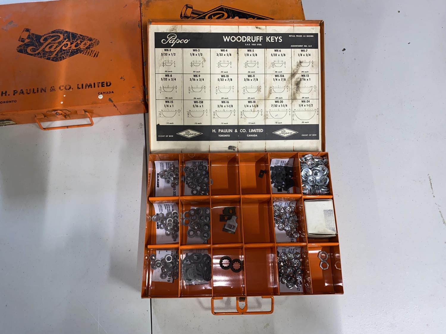 (1) Box of Socket Set Screws, (1) Box of Woodruff Keys, (1) Box of Frost Plugs, (1) Box of Snap Rings