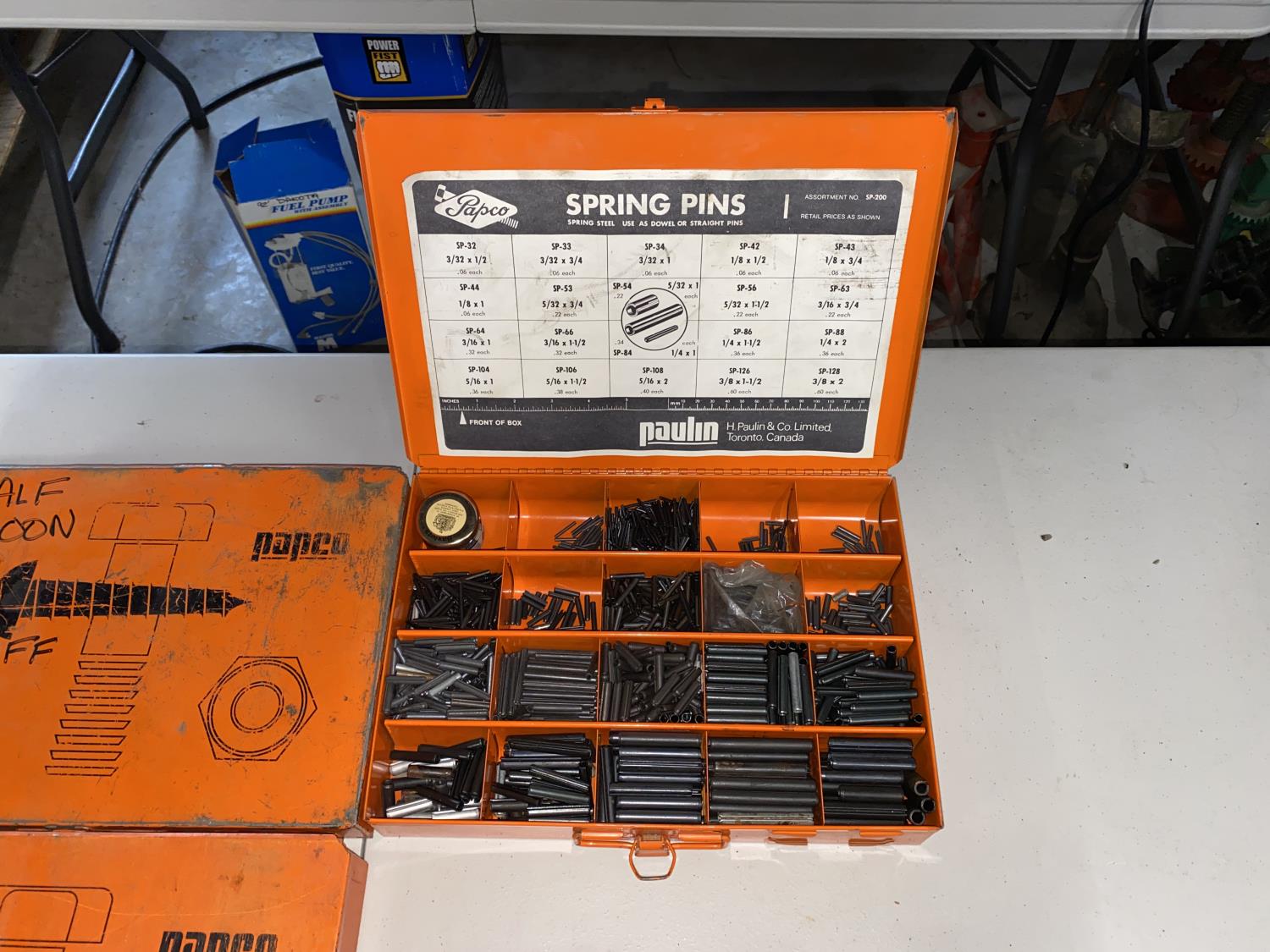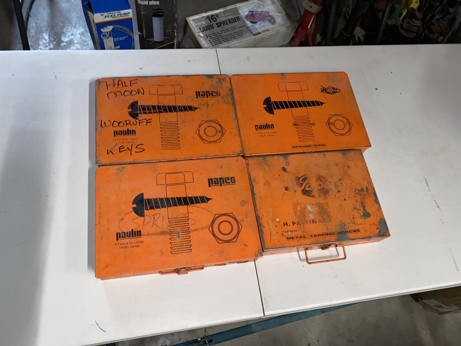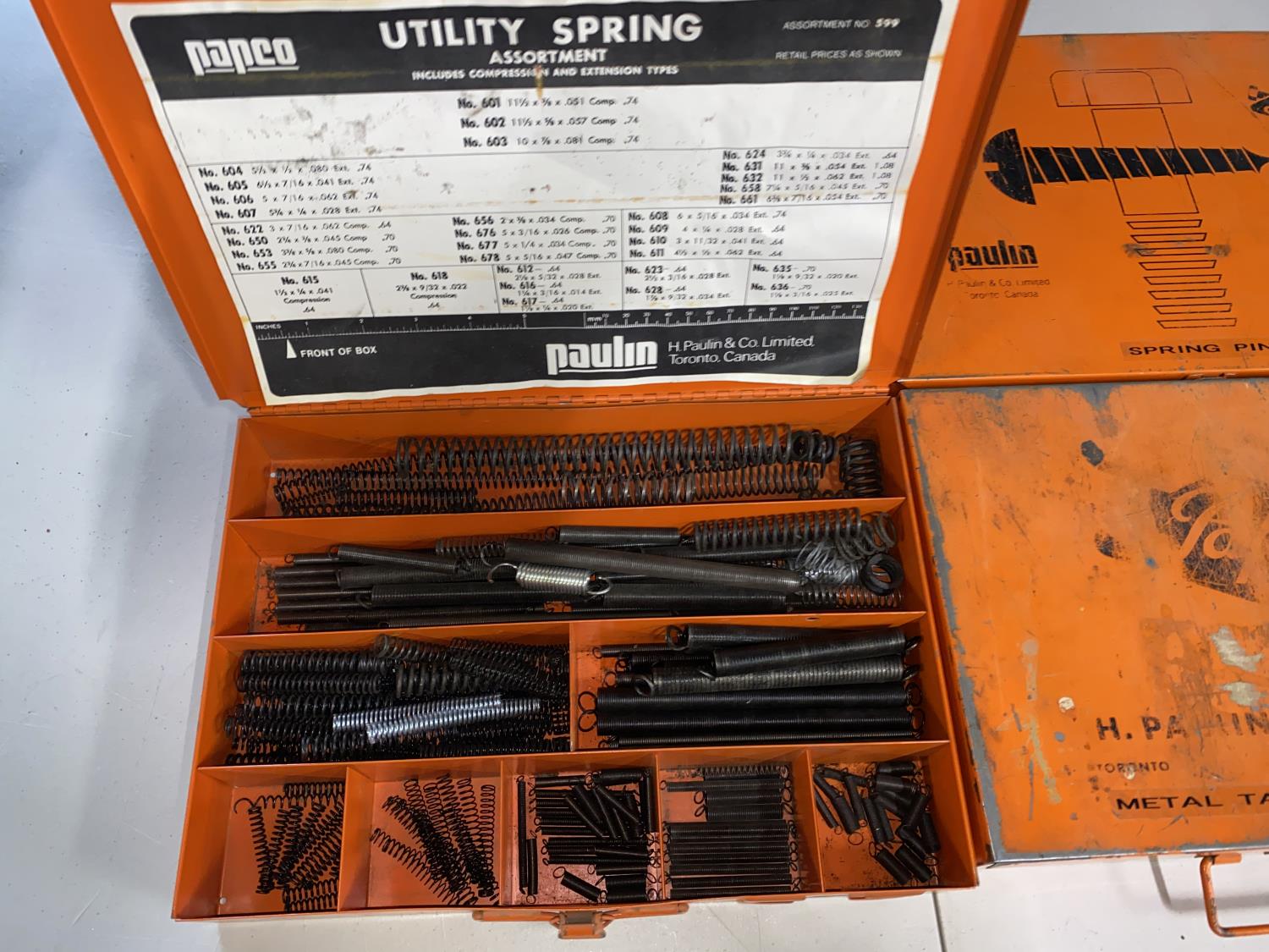 (1) Box of Utility Springs, (1) Box of Sheet Metal Screws, (1) Box of Spring Pins, (1) Box of Woodruff Keys