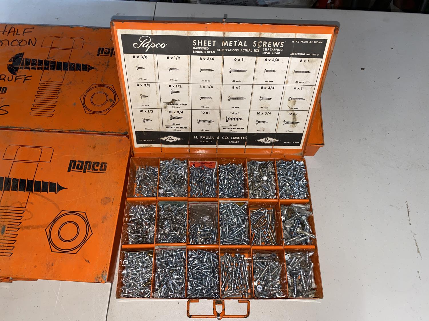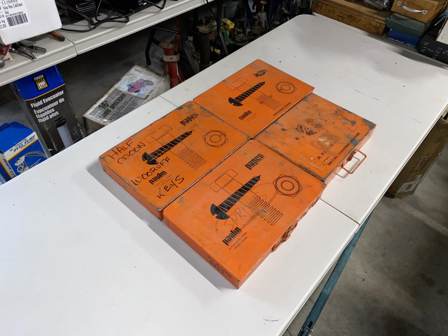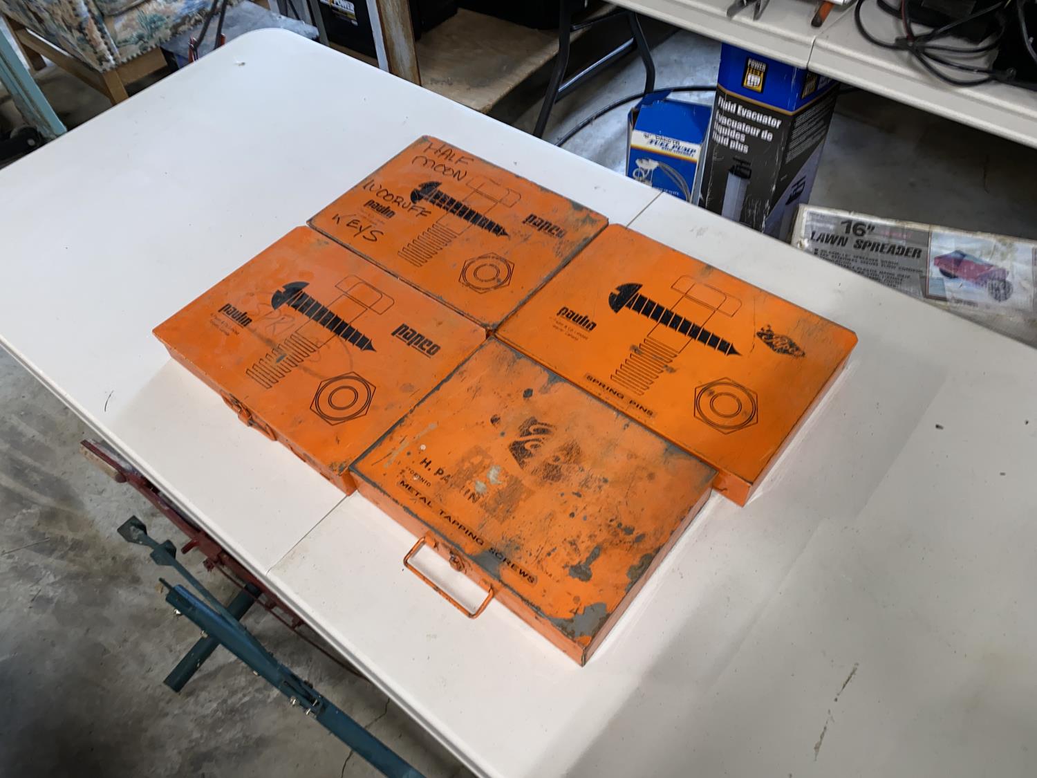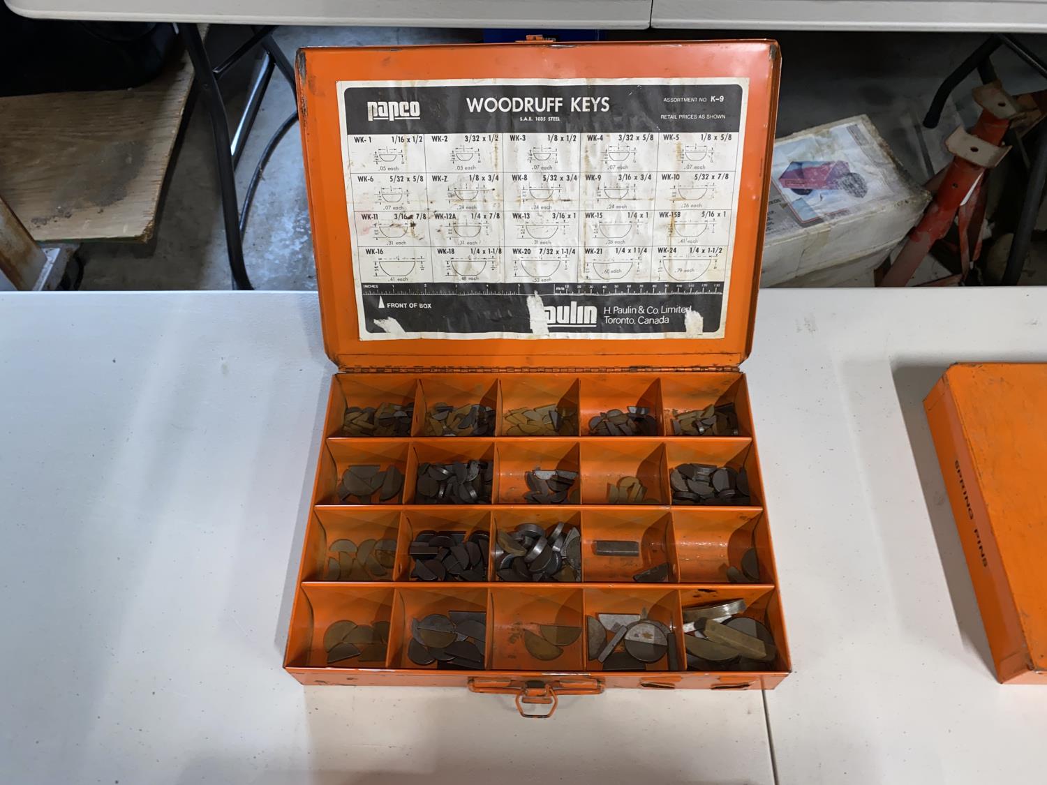 (1) Box of Utility Springs, (1) Box of Sheet Metal Screws, (1) Box of Spring Pins, (1) Box of Woodruff Keys