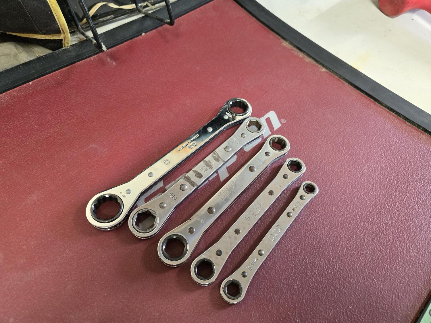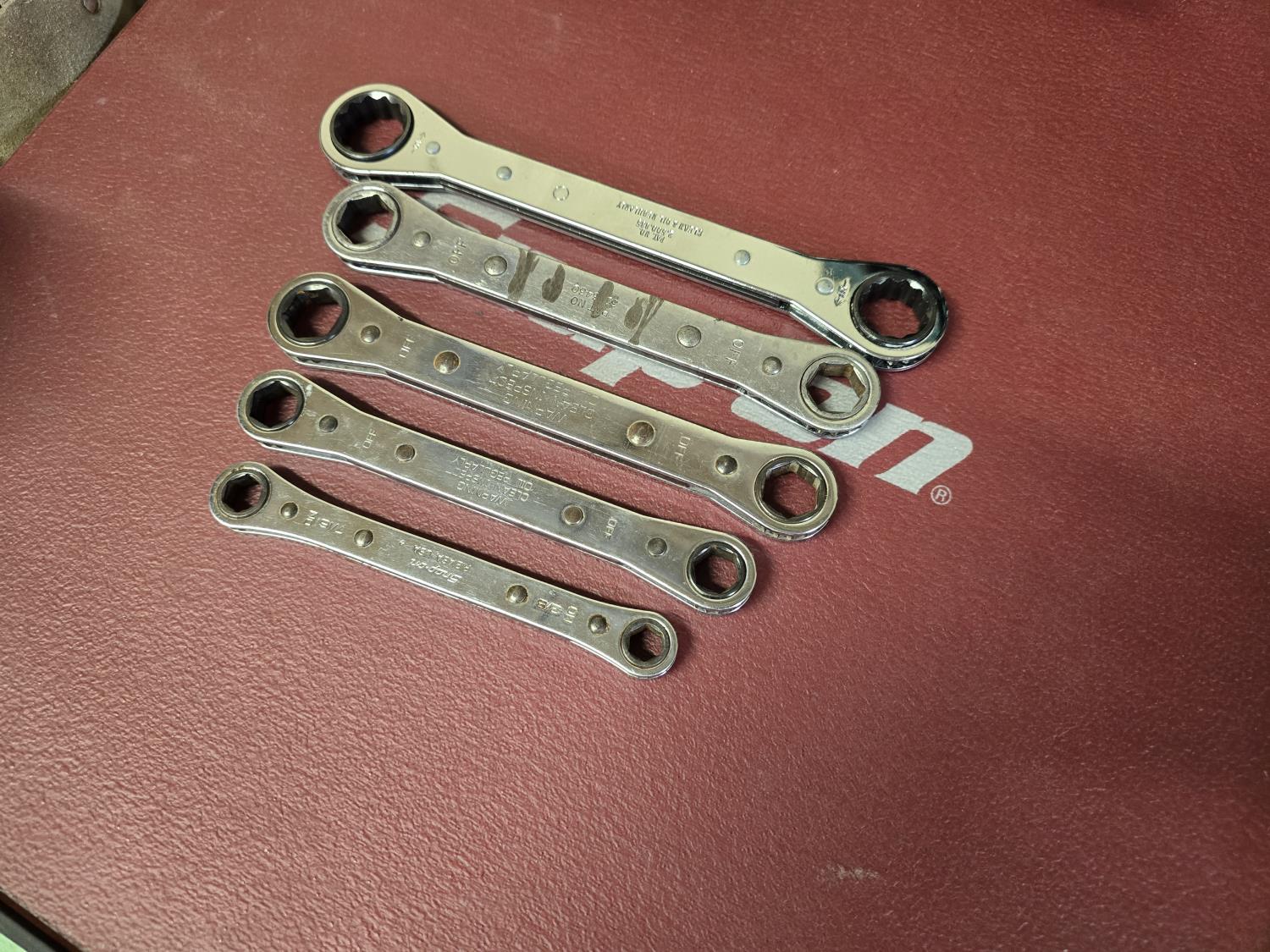 1404A Qty of (5) Snap-on Double Box End Ratcheting Wrenches