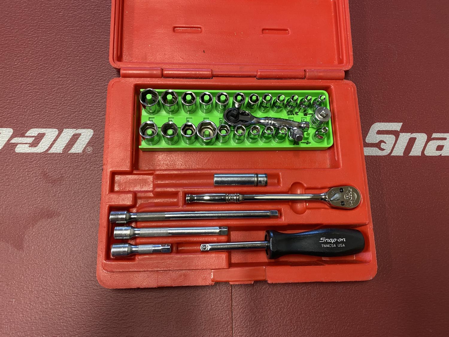 1015 Snap-on 3/8 Inch Drive Ratchet Wrench Kit w/ Sockets