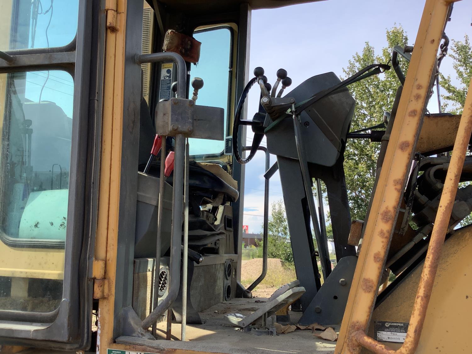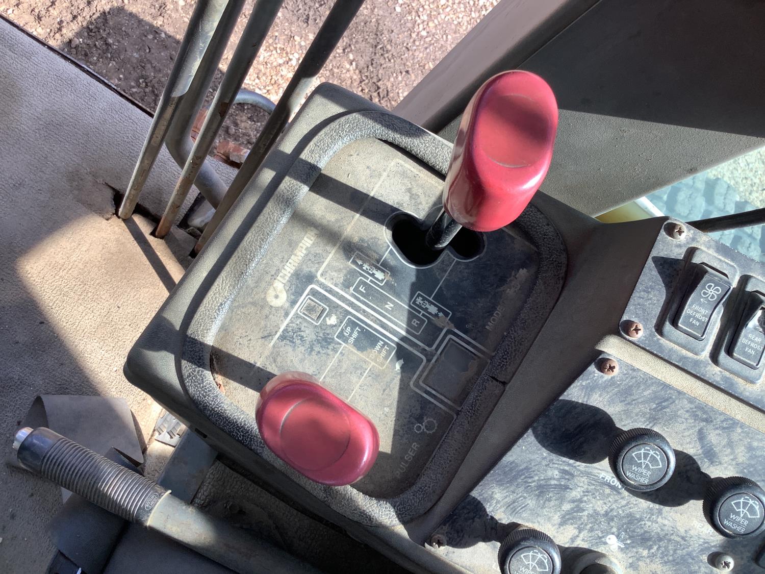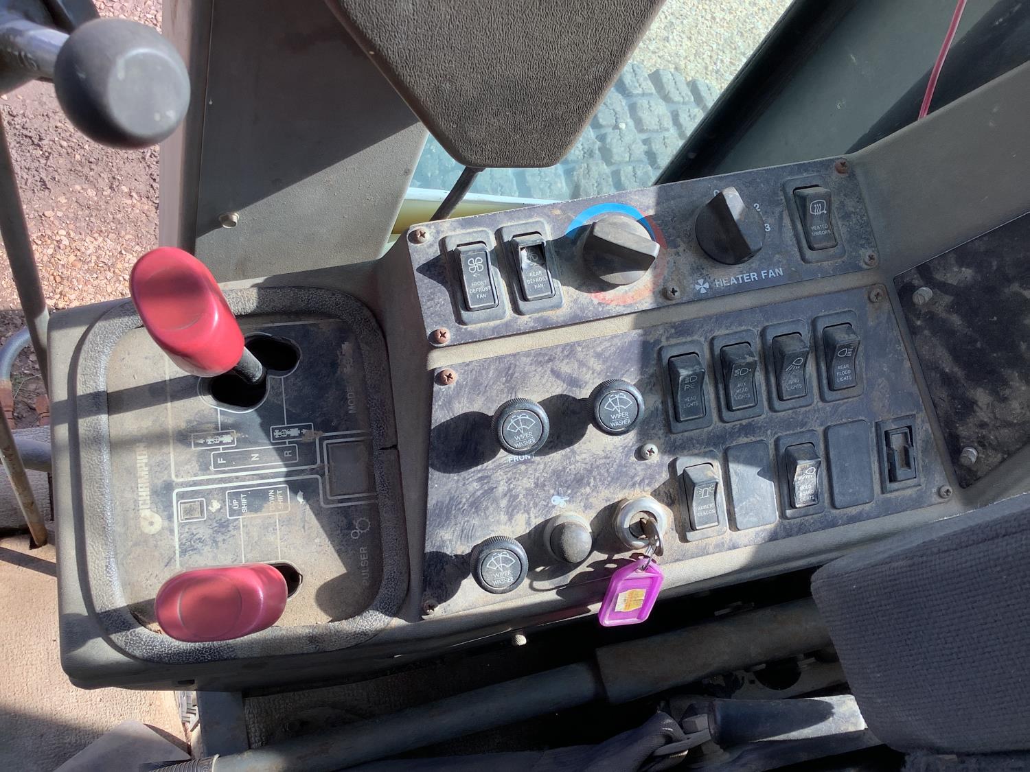 Enclosed cab, A/C, heater, positive air shutoff, Cummins 6 cylinder engine, power shift transmission, moldboard, front blade, 17.5R25 tires