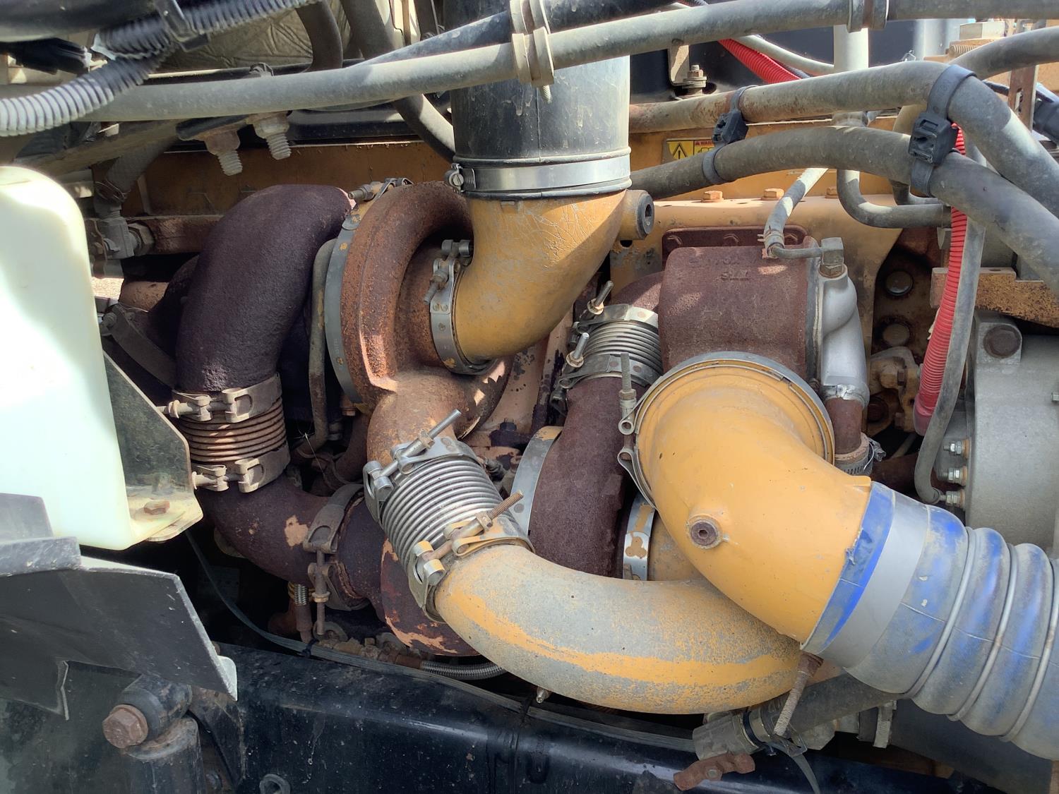 Cat C13 twin turbo 500 HP engine, engine brake, 18 speed manual transmission, AC, PW, PL, air ride cab, hydraulic system, rear hitch, rear hydraulic lines, head rack, 16,000 lb front axle, 46,000 rears, full lockers, air ride suspension, all aluminum rims, 5/65R22.5 front & 11R24.5 rear tires