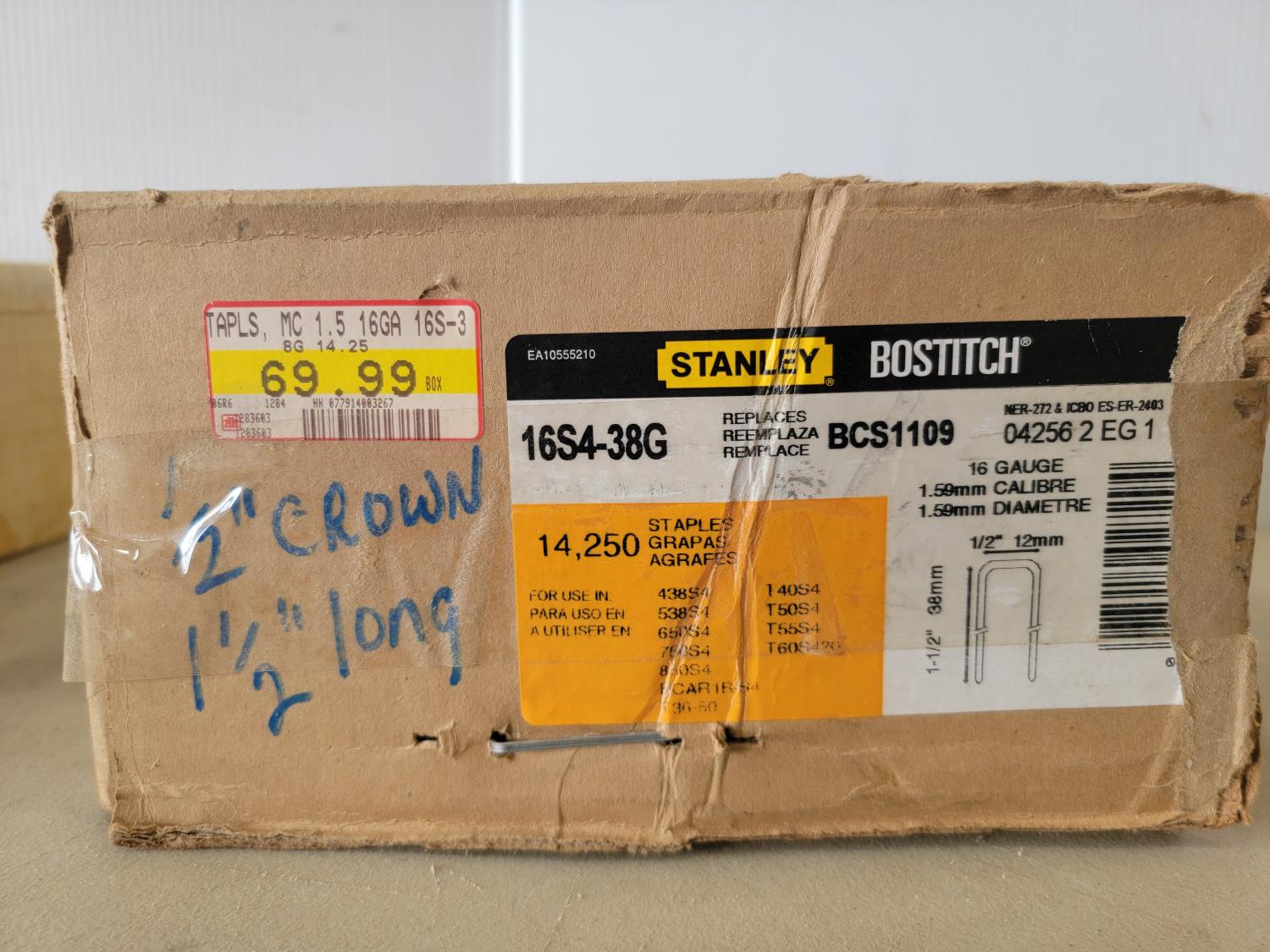1108 (1) Box of 1 Inch X 1-1/2 Inch and (1) Box of 1/2 Inch X 1-1/2 Inch 16 Ga Crown Staples