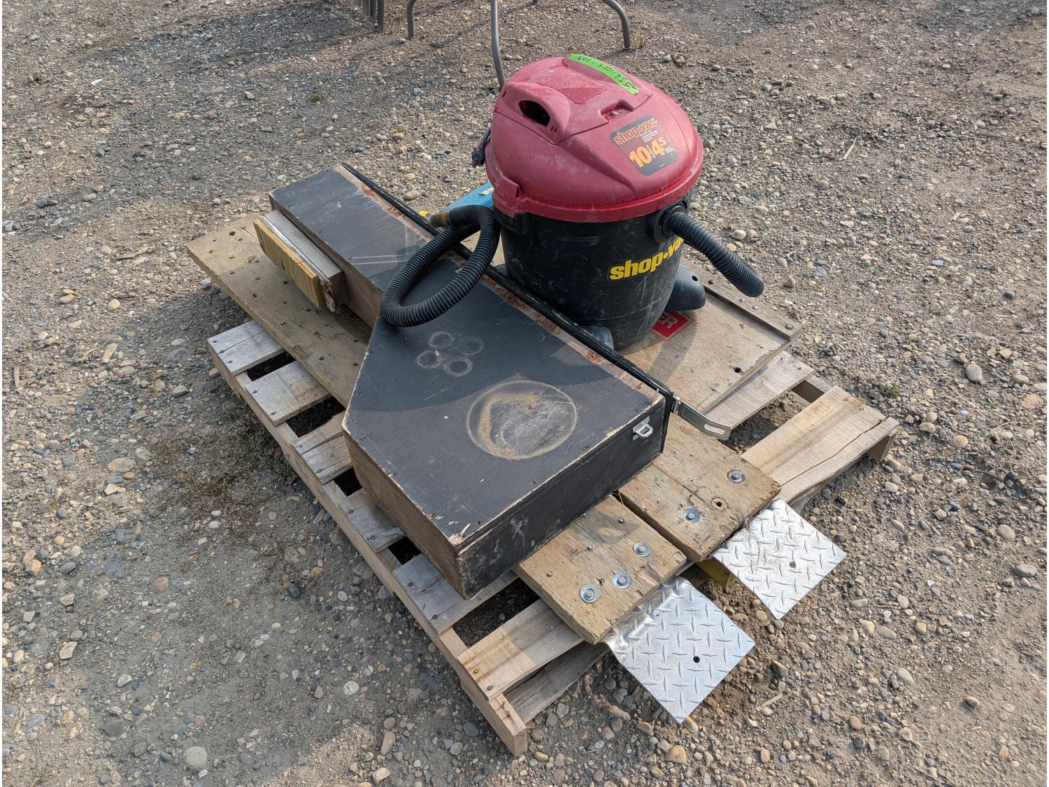 1608 Shop-Vac 10 Gallon Shop Vacuum, Mechanic's Creeper, (2) Wooden Ramps and Wooden Tool Box