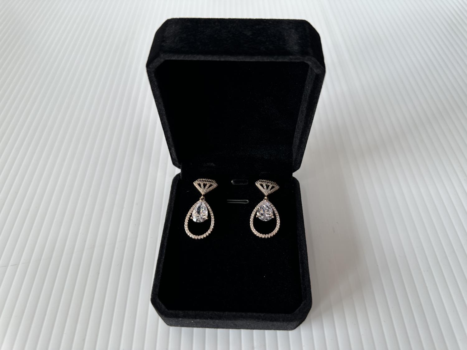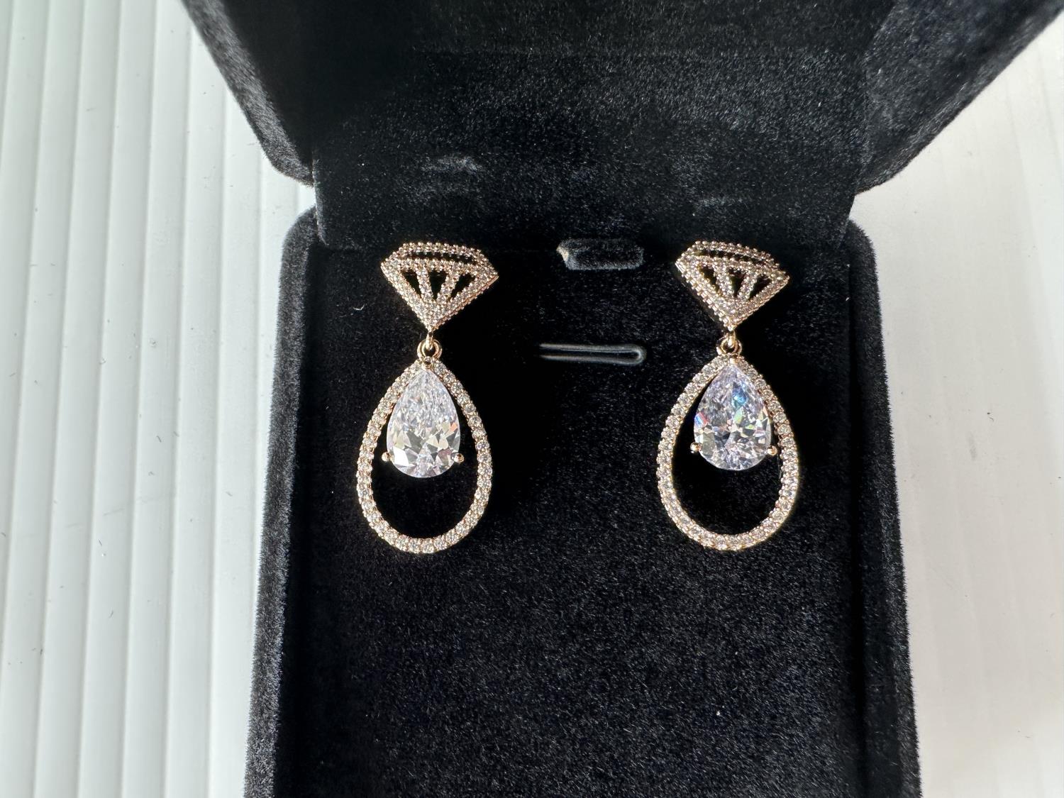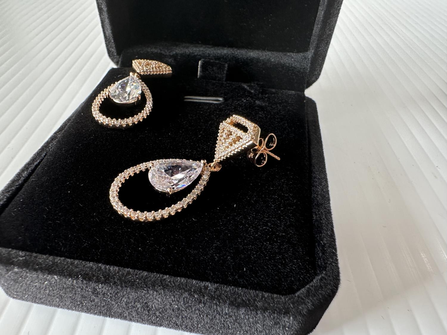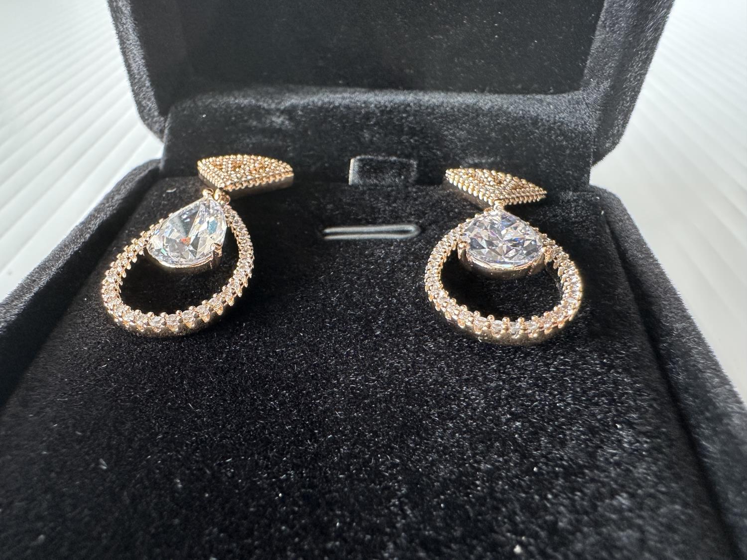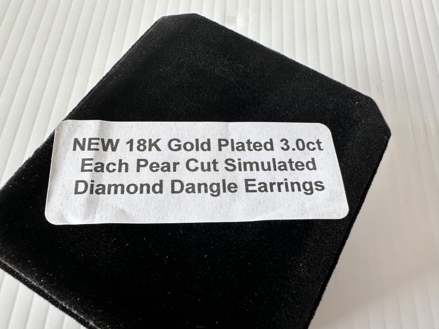 1575 Smartlife 18K Gold Plated 3.0 Ct Each Pear Cut Simulated Diamond Dangle Earrings (Unused)