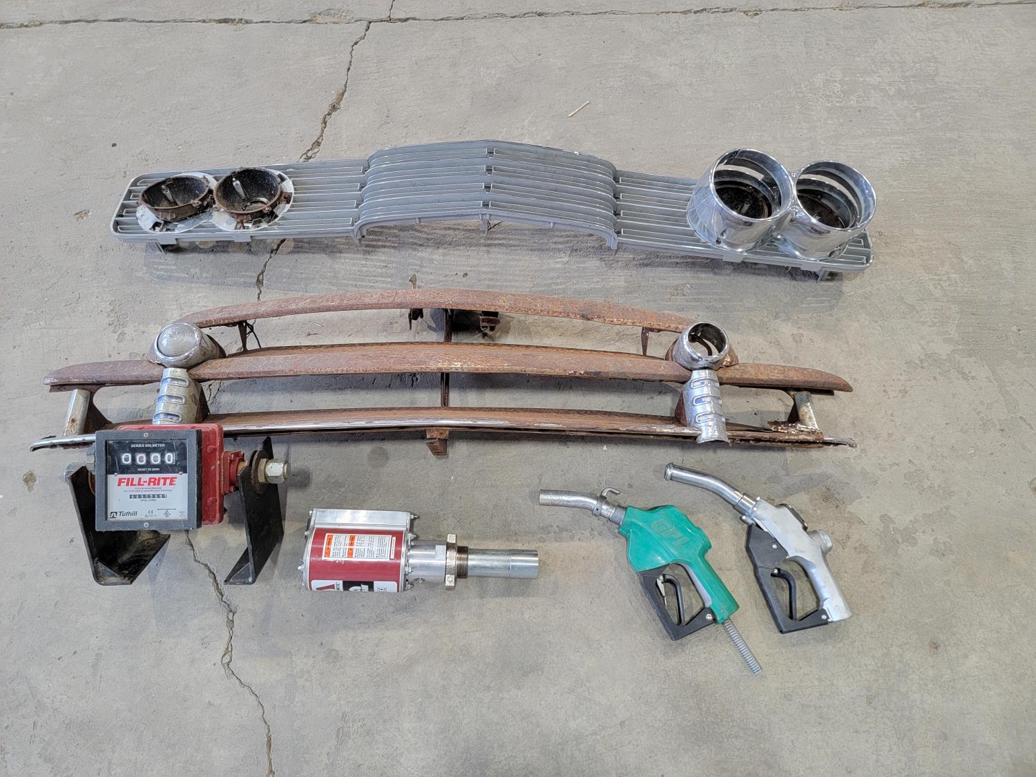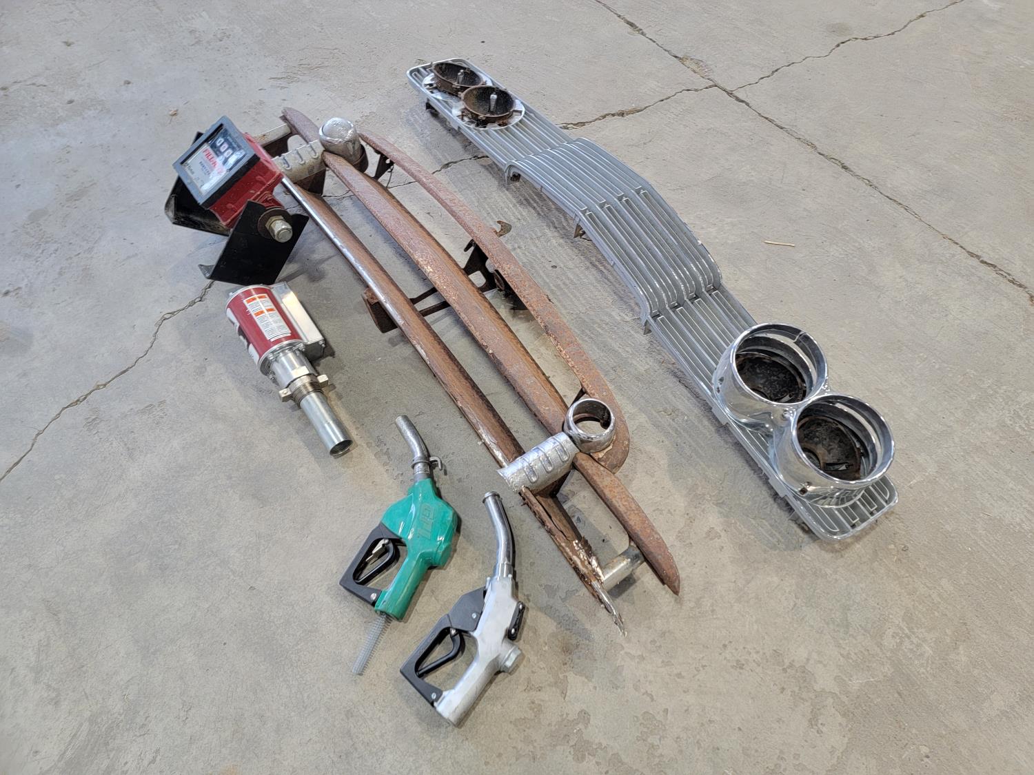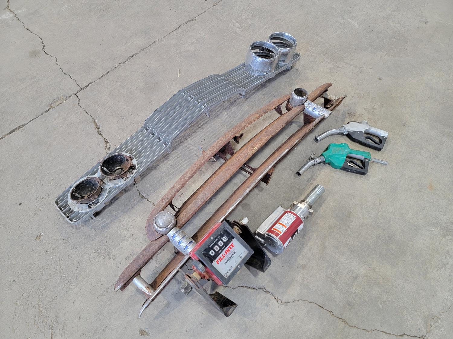 1298 (2) Vintage Car Front Grilles, Fill-Rite Meter, Pump and (2) Fuel Nozzles