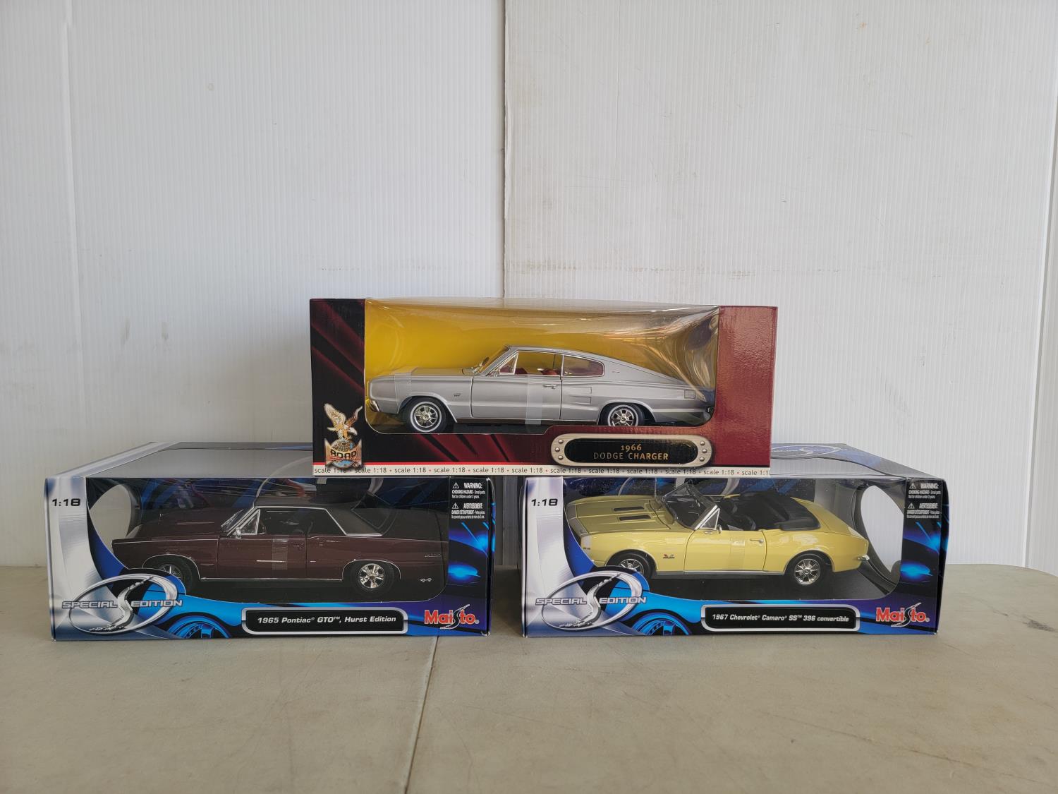 1966 Dodge Charger, 1965 Pontiac GTO Hurst Edition, 1967 Chevrolet Camaro 396 convertible
