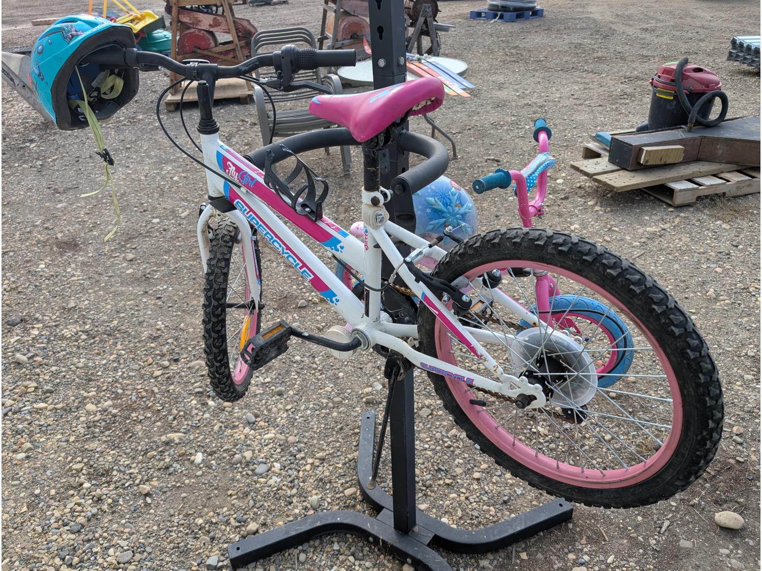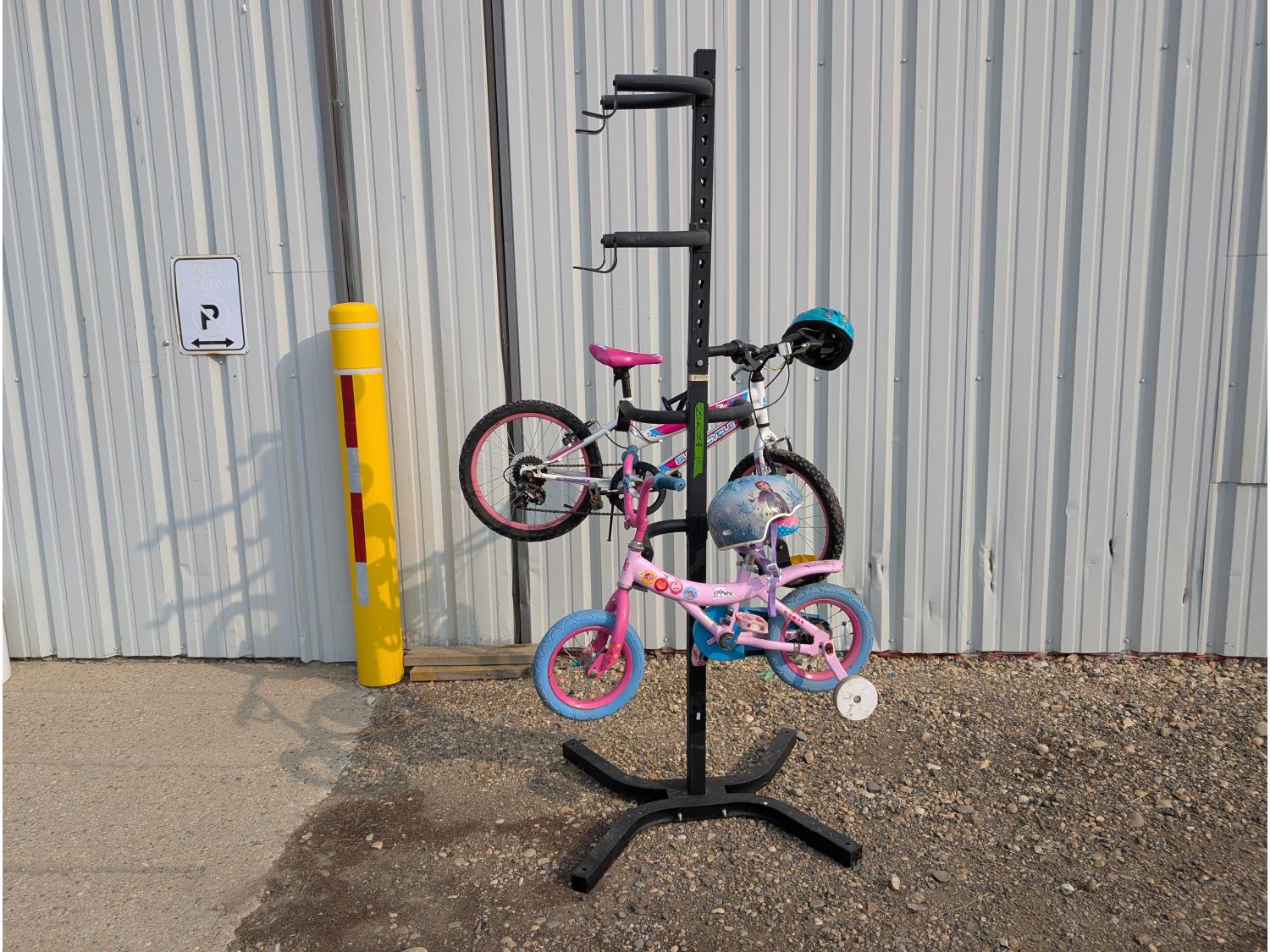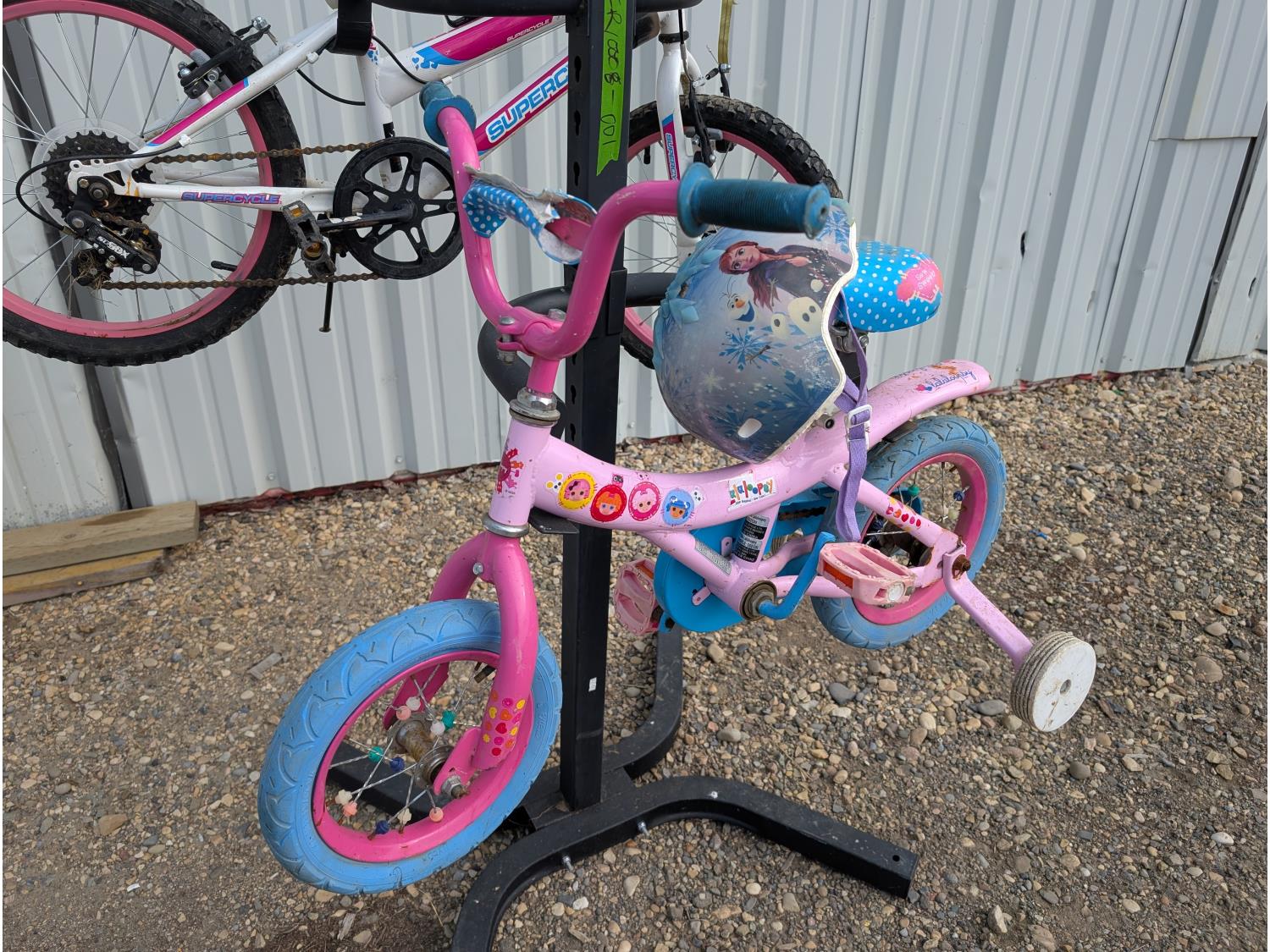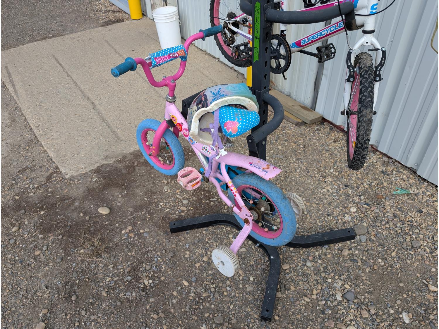 1605 4 Tier Bicycle Stand and (2) Children's Bikes