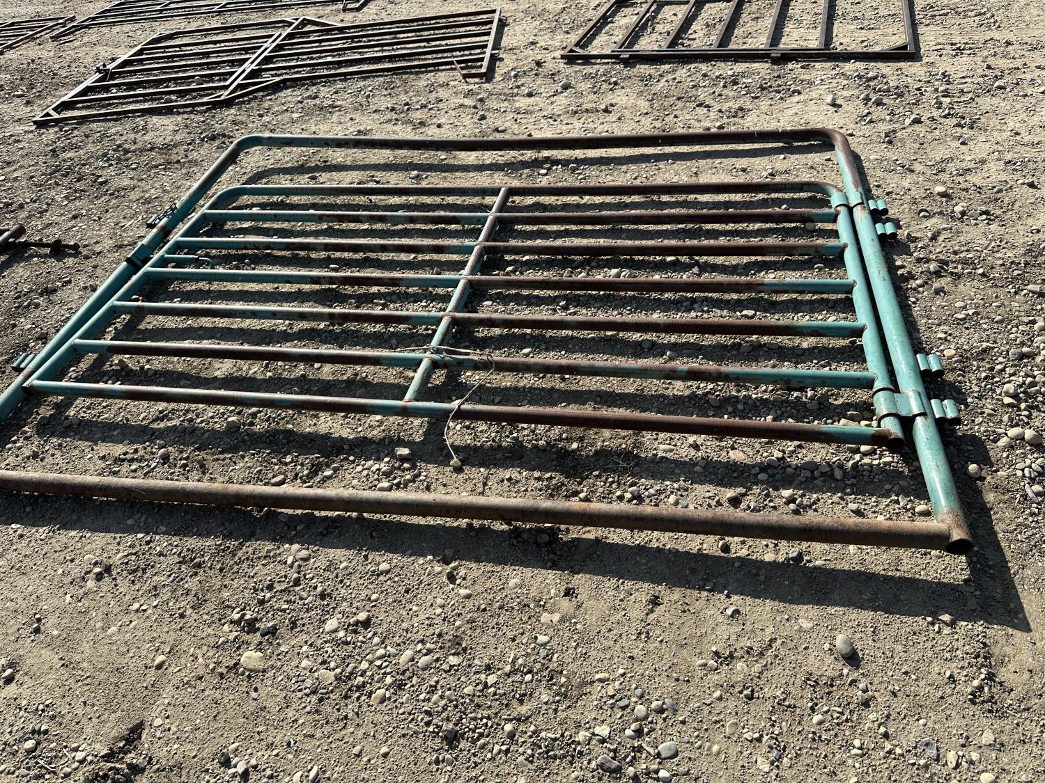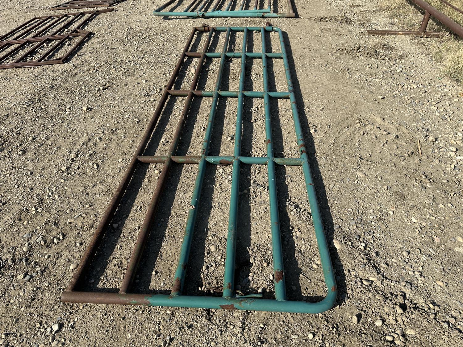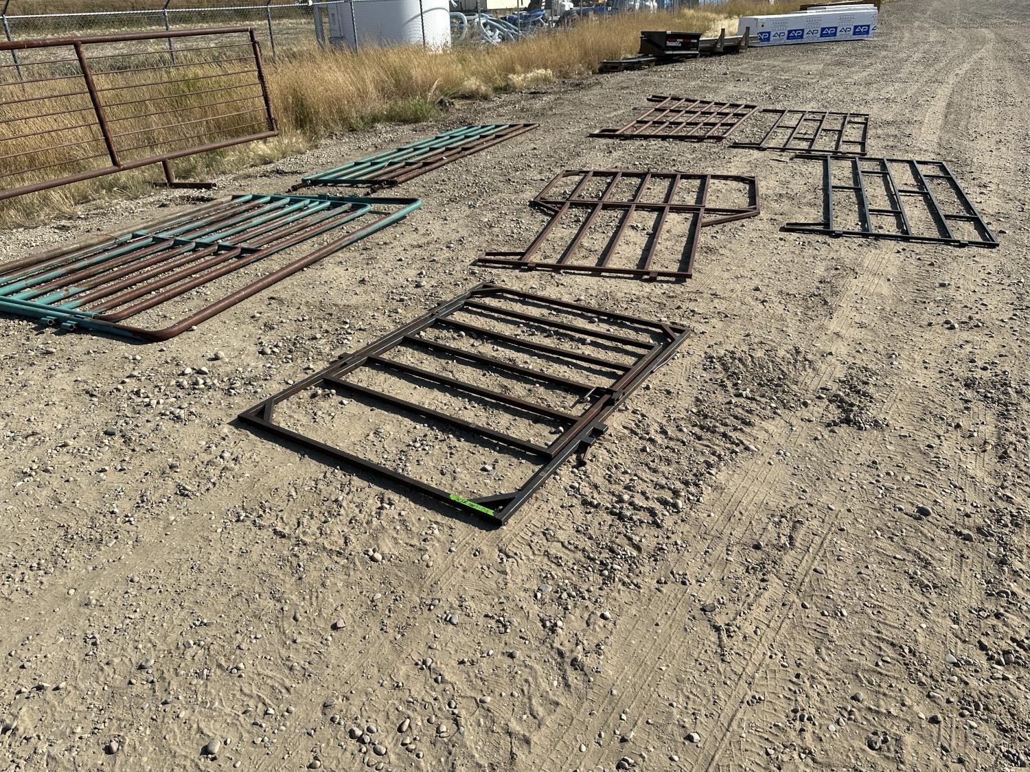 (1) 14 ft gate, (1) 4 ft x 6 ft gate, (1) 10 ft panel with 4 ft x 6 ft man gate, (1) 10 ft panel with 9 ft gate