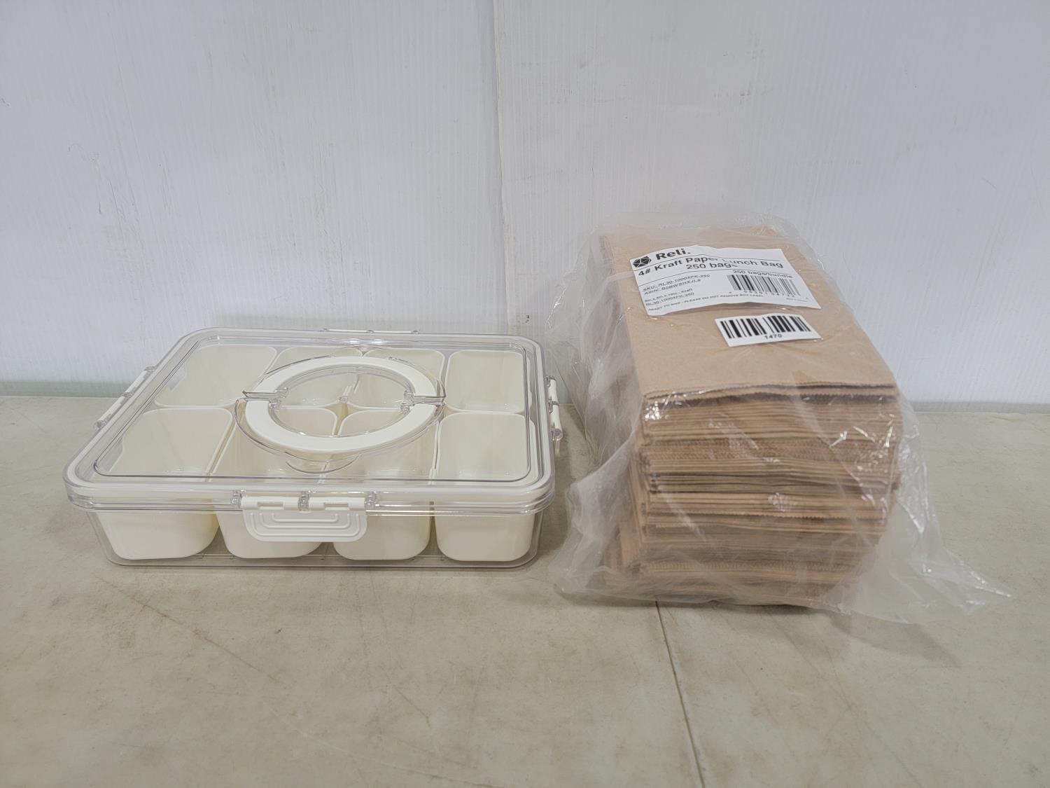 1455 Divided Serving Tray and 250 Piece Paper Lunch Bags (Unused)