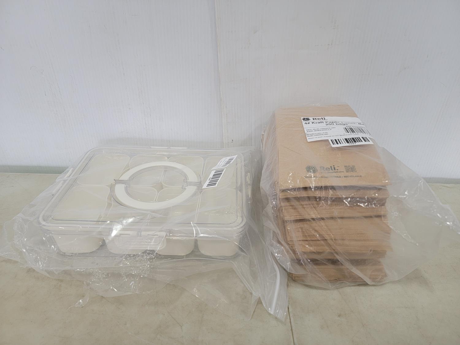 1457 Divided Serving Tray and 250 Piece Paper Lunch Bags (Unused)