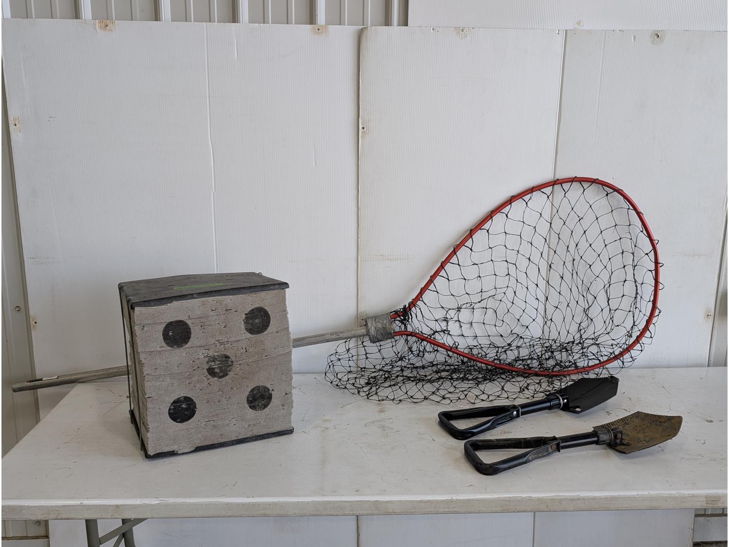 1219 Foam Archery Target, Frabill Net and (2) Folding Shovels