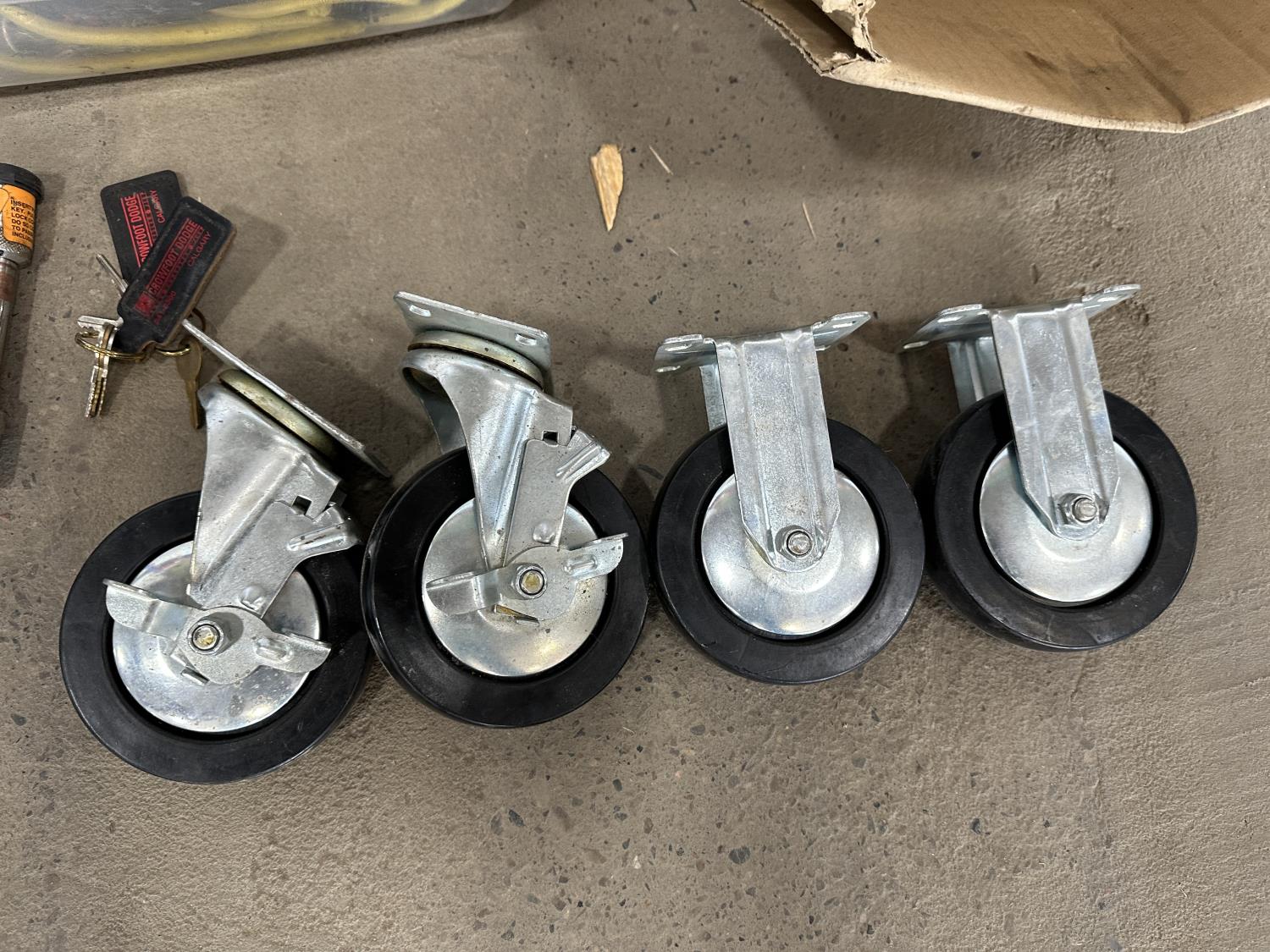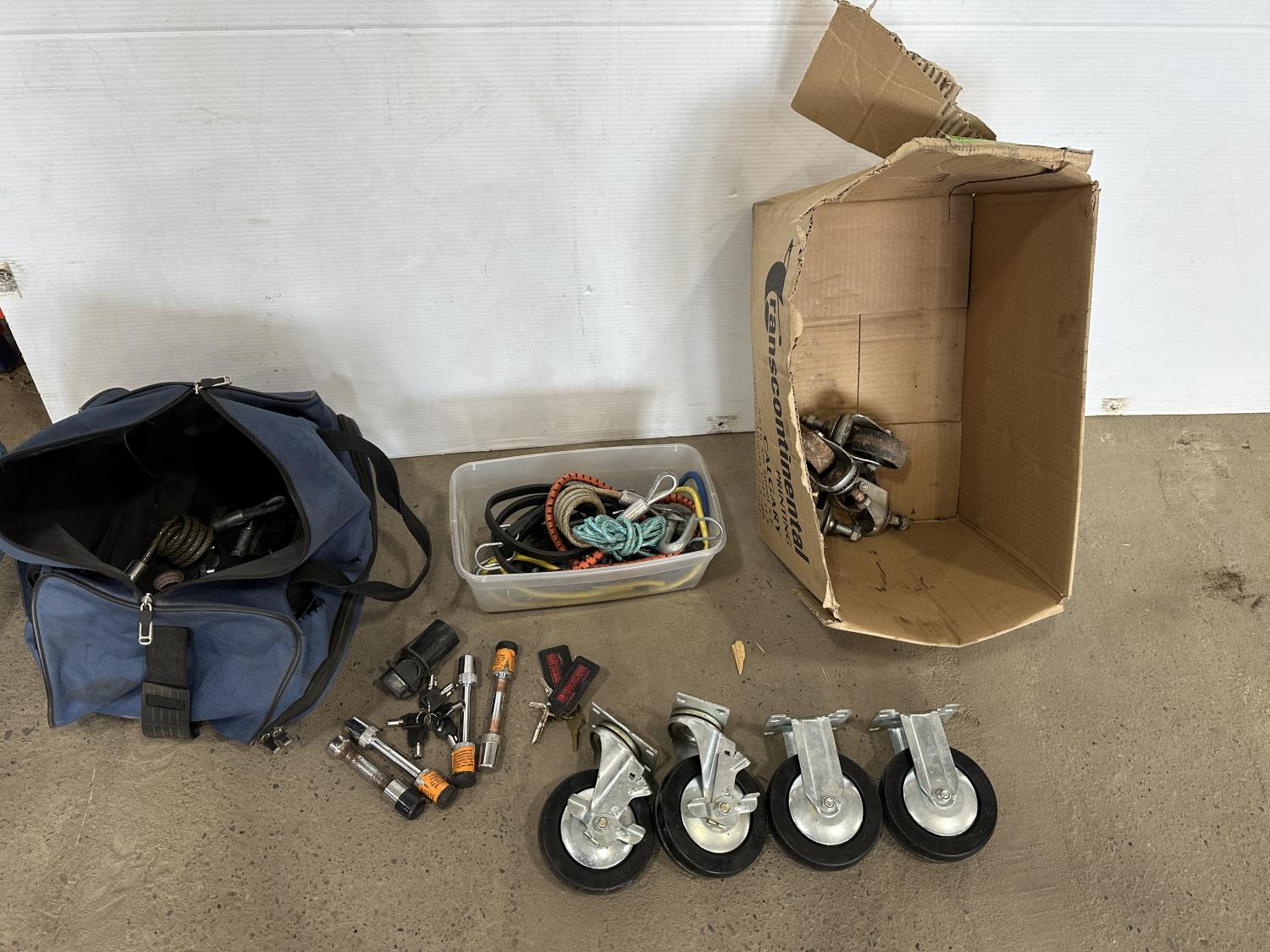 1186 Qty of Caster Wheels, Bungee Straps and Locking Hitch Pins