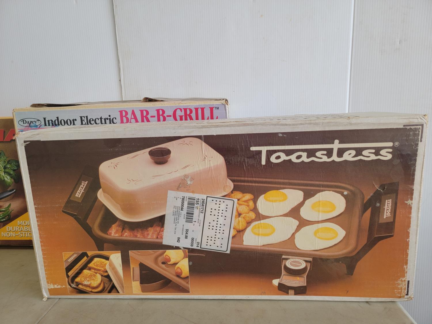 T-Fal non-stick pan, Lagostina 2 piece non-stick skillets, Toastess electric griddle, Indoor electric BBQ grill