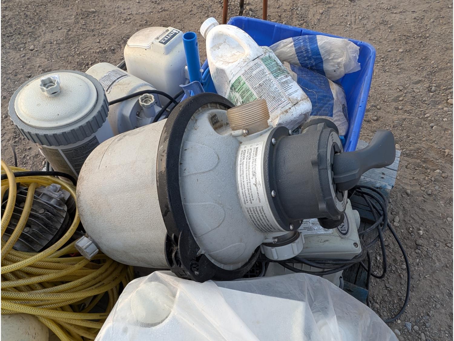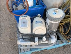 1624 Qty of Pool Accessories, Air Compressor and Portable Camp Toilet