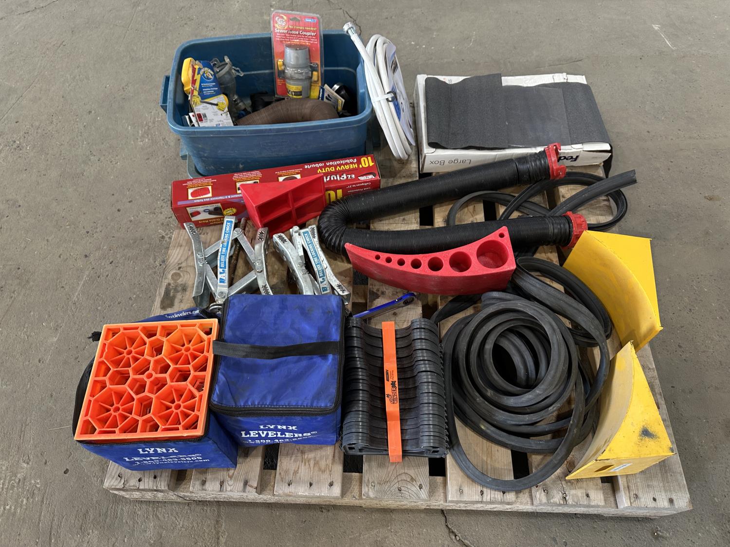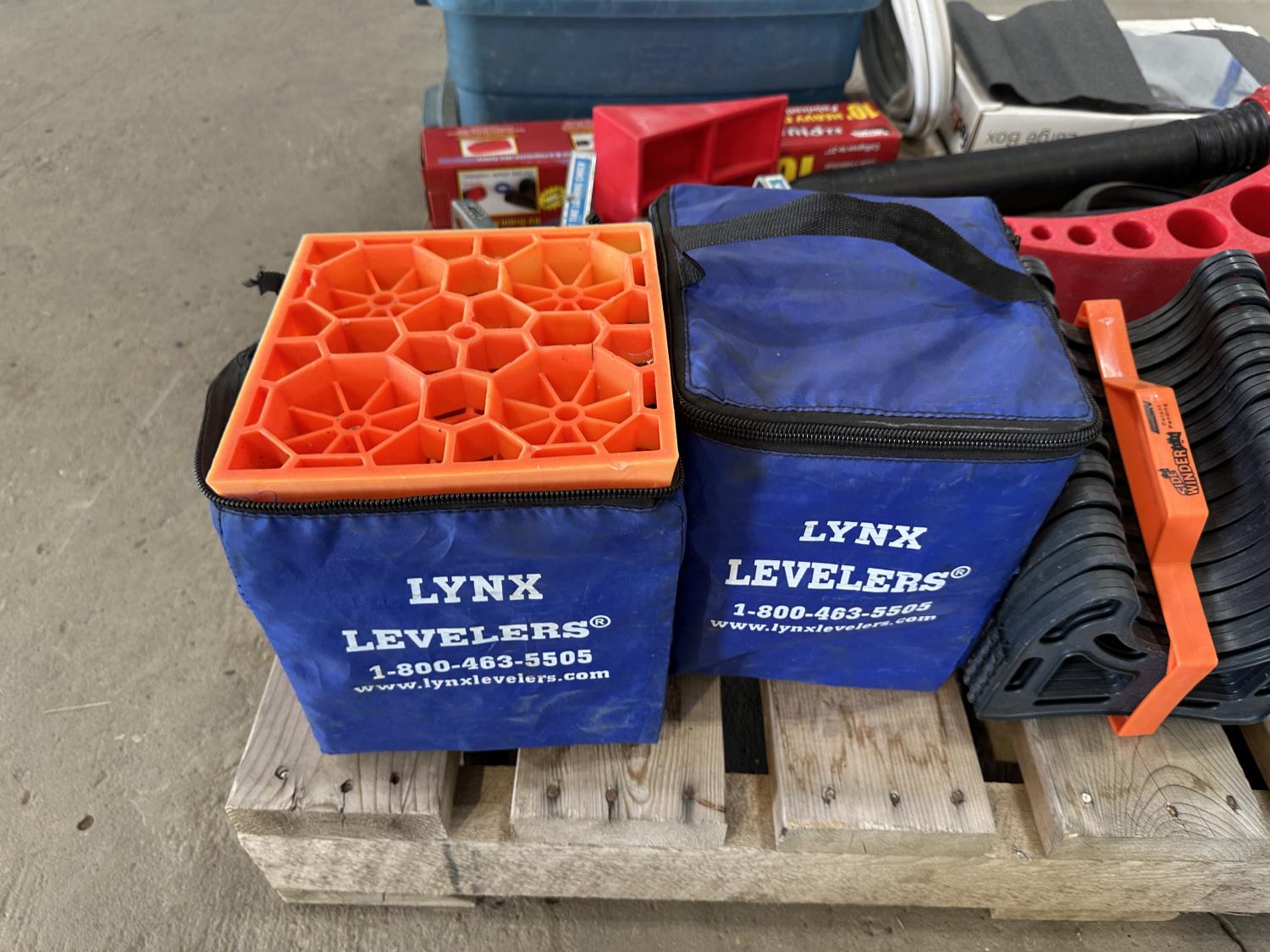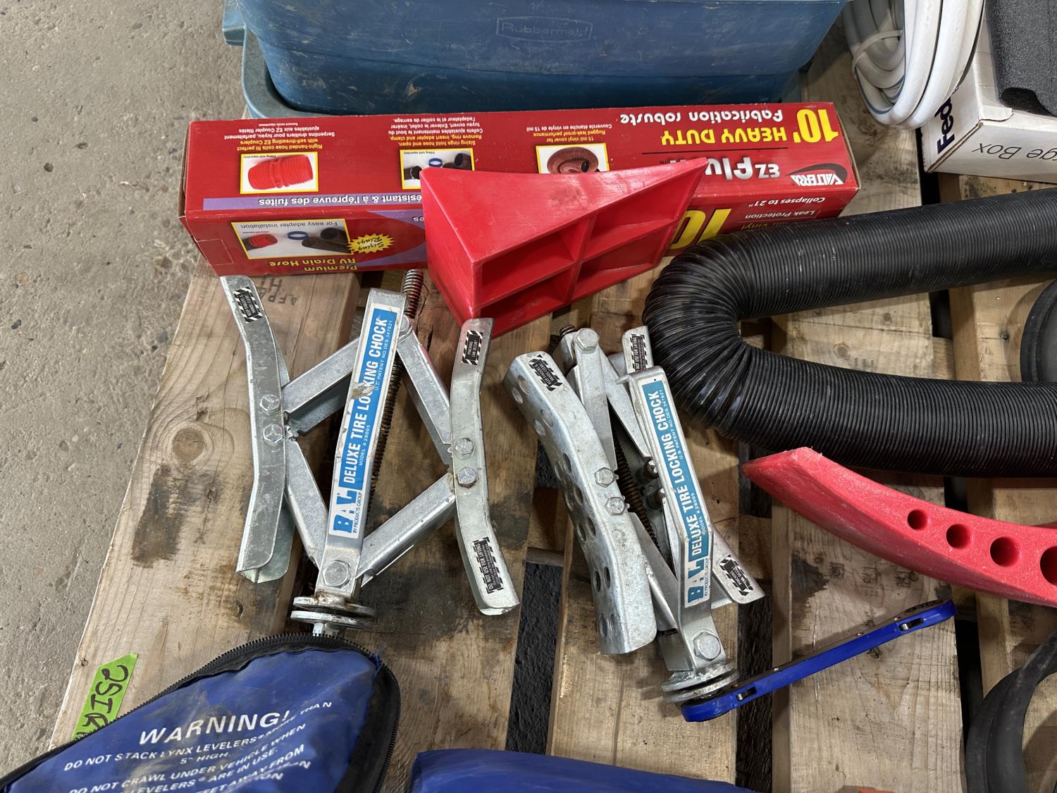 Leveling blocks, weather stripping, jacks, wheel chocks, hose